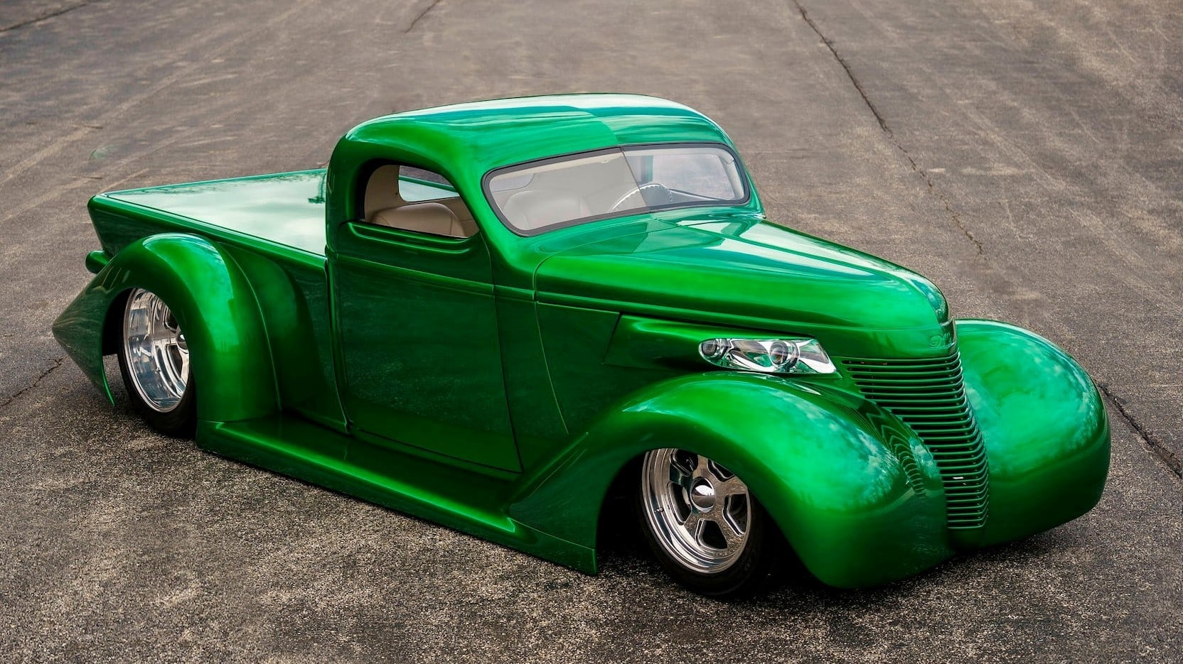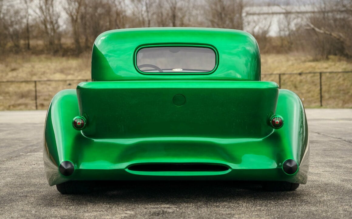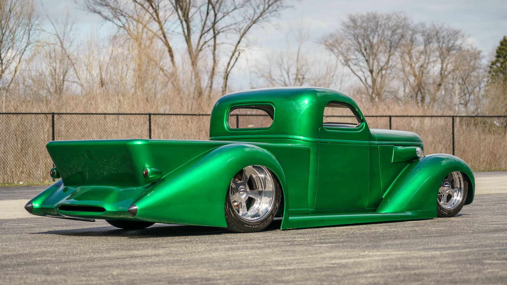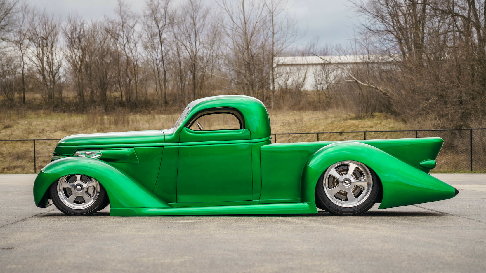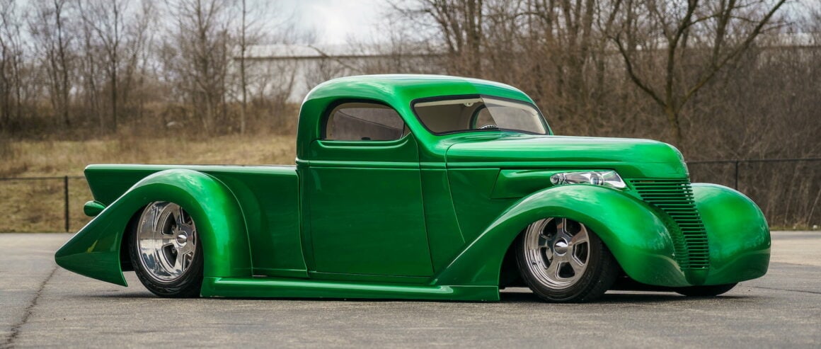 La coupe de toit est de 6 pouces. L’ouverture d’échappement personnalisée a été fabriquée à partir d’une calandre de Pontiac 1954. Les embouts d’aile arrière proviennent d’une Chevrolet ‘Dagmar’ 1957. Les feux arrière ont été prélevés d’une Chrysler 1936. La peinture a été réalisée par “House of Kolor” en “Organic Green” et “Cosmic Silver”… Les phares sont des Plymouth Prowler intégrés. L’insert de tableau de bord est également issu d’un Plymouth Prowler. Ce Hot-Rod Pick-Up a été utilisé dans diverses promotions pour les produits “CleanTools” et “Matco Tools”. Il a été Recréé par “Hot Wheels” en 2002 au 1/64ième. Ce Pick-Up a été présenté dans de nombreux magazines, y compris “Popular Hot Rodding”, “Classic Trucks” et “Street Rodder” de feu Tom McMullen. Il a été exposé au Salon SEMA 1999 et 2021 ou il a reçu le premier prix de sa catégorie.