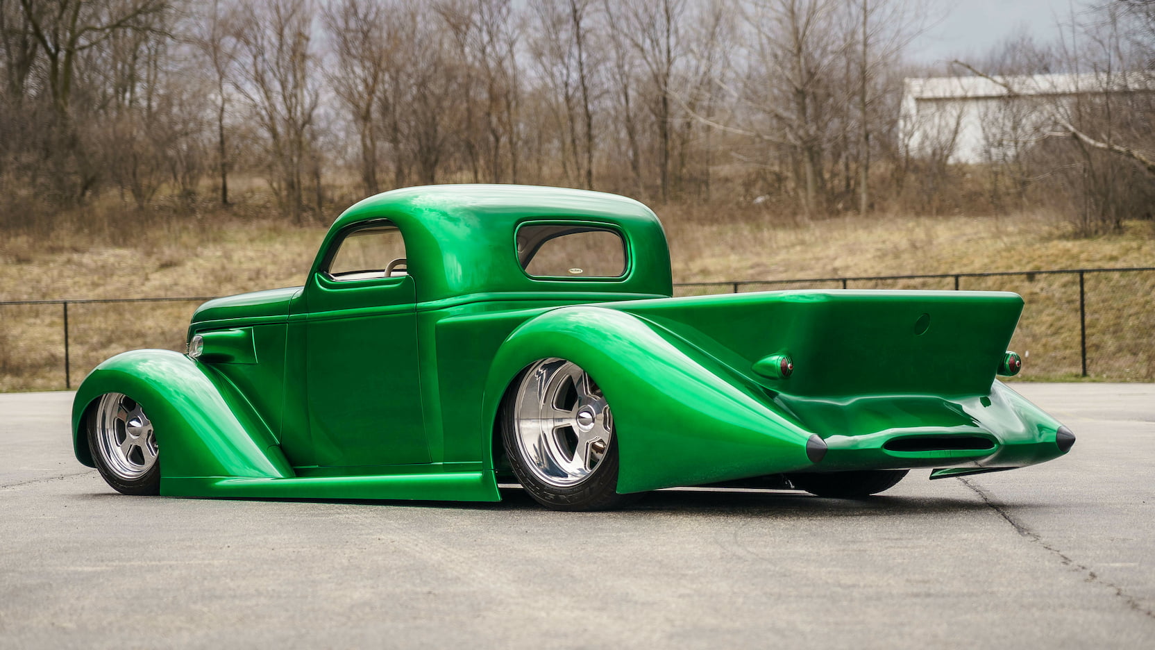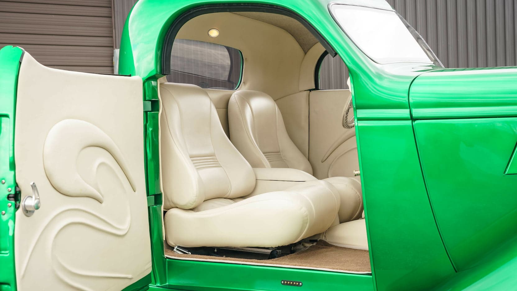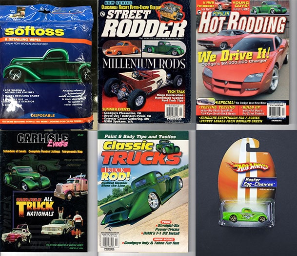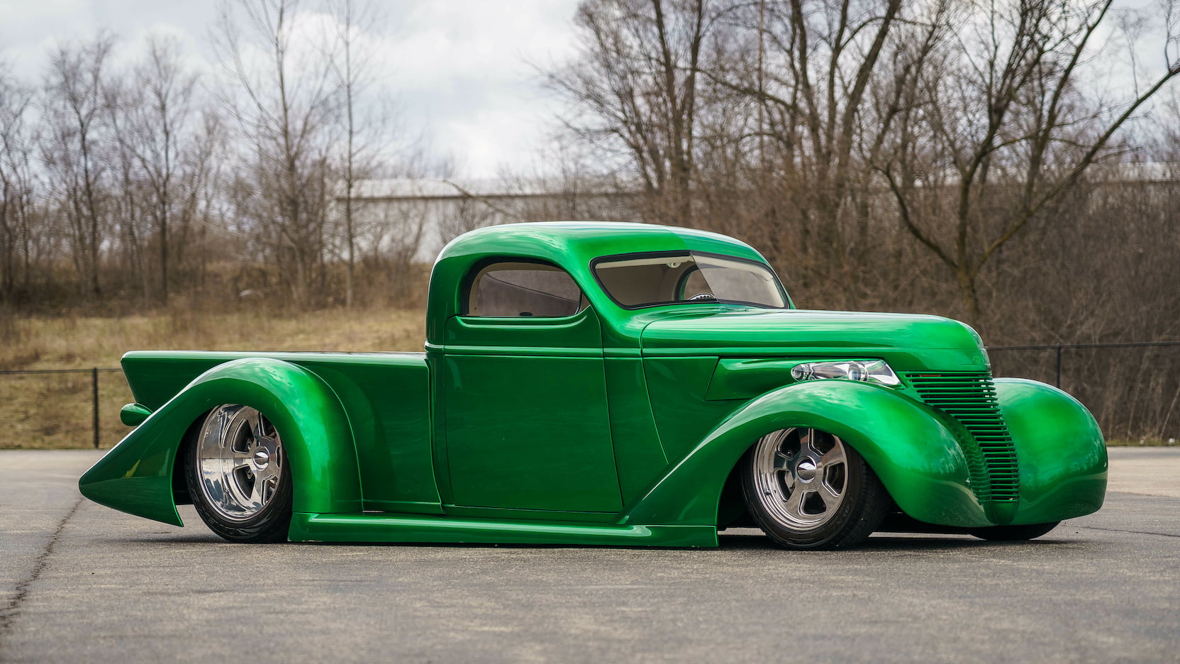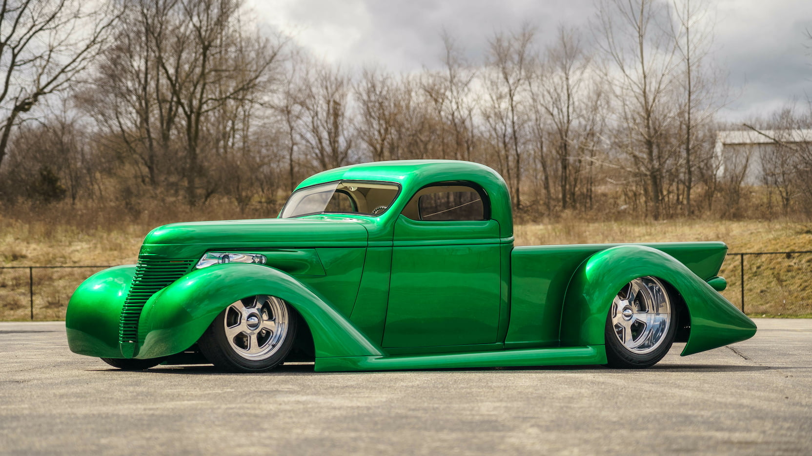 La coupe de toit est de 6 pouces. L’ouverture d’échappement personnalisée a été fabriquée à partir d’une calandre de Pontiac 1954. Les embouts d’aile arrière proviennent d’une Chevrolet ‘Dagmar’ 1957. Les feux arrière ont été prélevés d’une Chrysler 1936. La peinture a été réalisée par “House of Kolor” en “Organic Green” et “Cosmic Silver”… Les phares sont des Plymouth Prowler intégrés. L’insert de tableau de bord est également issu d’un Plymouth Prowler. Ce Hot-Rod Pick-Up a été utilisé dans diverses promotions pour les produits “CleanTools” et “Matco Tools”. Il a été Recréé par “Hot Wheels” en 2002 au 1/64ième. Ce Pick-Up a été présenté dans de nombreux magazines, y compris “Popular Hot Rodding”, “Classic Trucks” et “Street Rodder” de feu Tom McMullen. Il a été exposé au Salon SEMA 1999 et 2021 ou il a reçu le premier prix de sa catégorie.