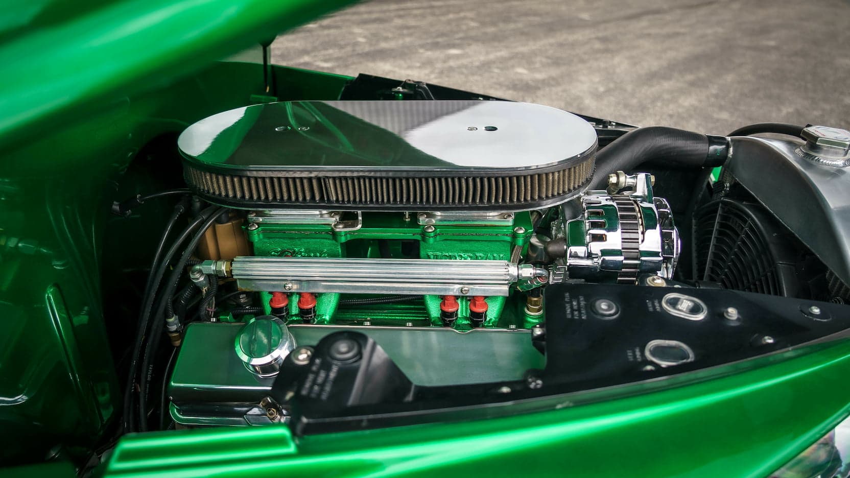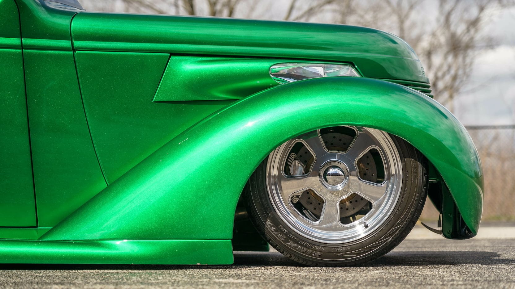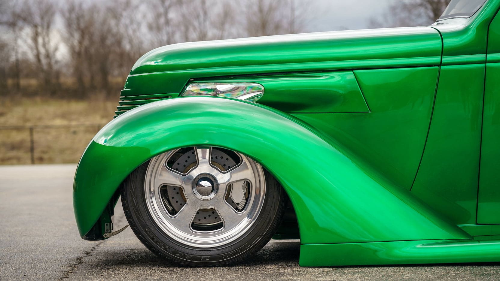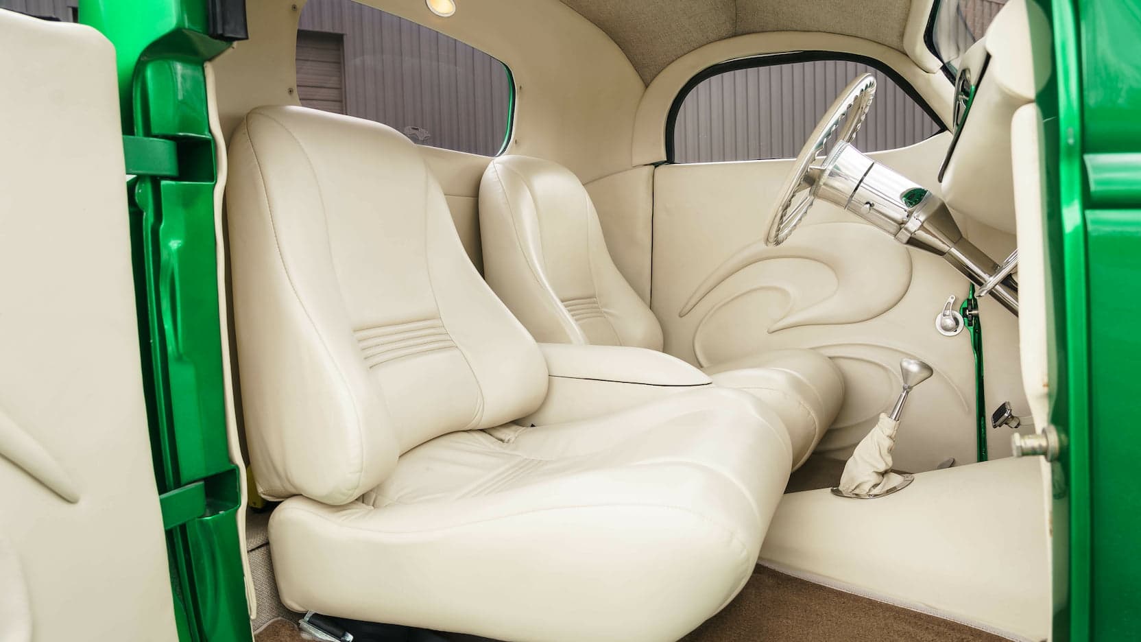 La coupe de toit est de 6 pouces. L’ouverture d’échappement personnalisée a été fabriquée à partir d’une calandre de Pontiac 1954. Les embouts d’aile arrière proviennent d’une Chevrolet ‘Dagmar’ 1957. Les feux arrière ont été prélevés d’une Chrysler 1936. La peinture a été réalisée par “House of Kolor” en “Organic Green” et “Cosmic Silver”… Les phares sont des Plymouth Prowler intégrés. L’insert de tableau de bord est également issu d’un Plymouth Prowler. Ce Hot-Rod Pick-Up a été utilisé dans diverses promotions pour les produits “CleanTools” et “Matco Tools”. Il a été Recréé par “Hot Wheels” en 2002 au 1/64ième. Ce Pick-Up a été présenté dans de nombreux magazines, y compris “Popular Hot Rodding”, “Classic Trucks” et “Street Rodder” de feu Tom McMullen. Il a été exposé au Salon SEMA 1999 et 2021 ou il a reçu le premier prix de sa catégorie.