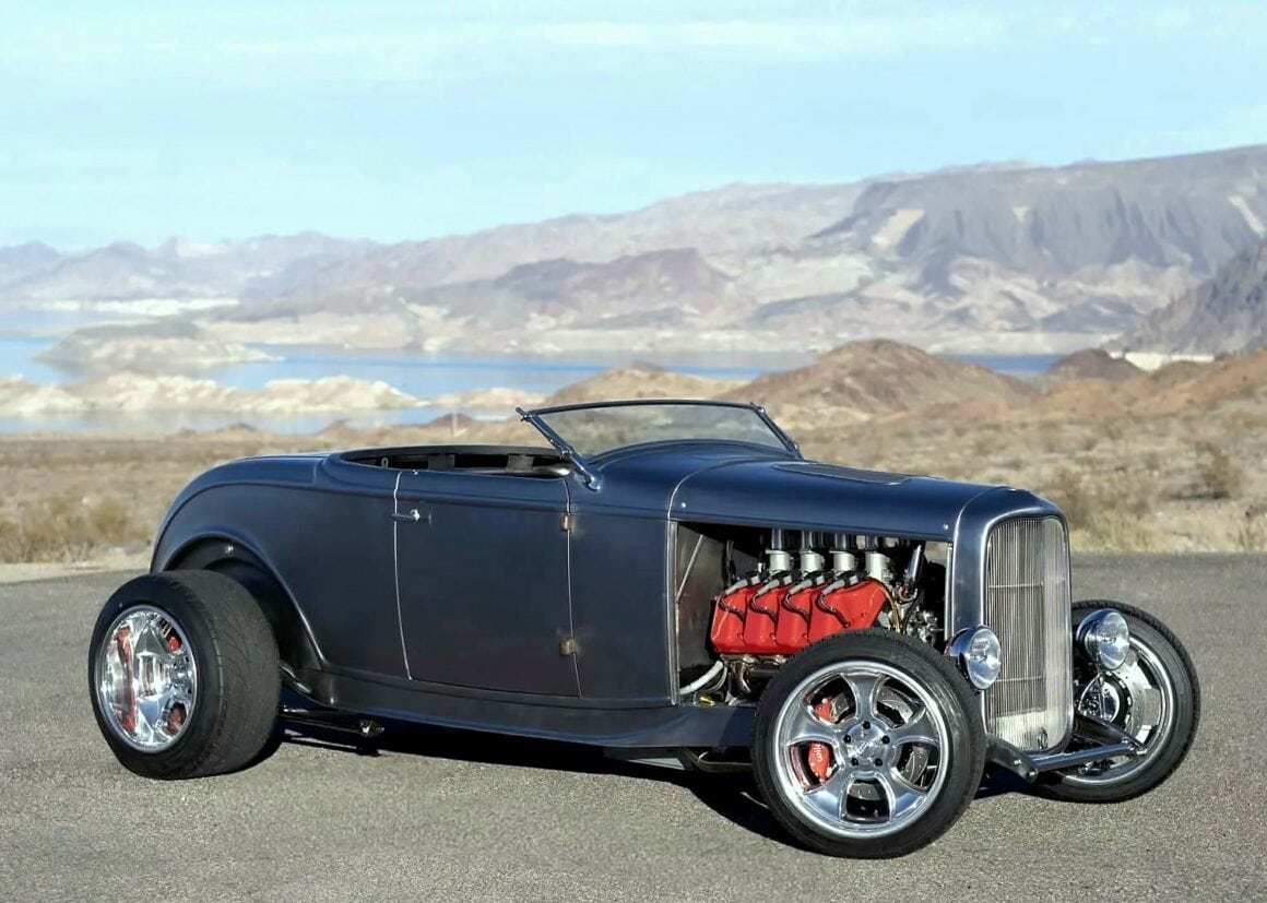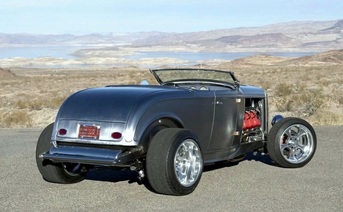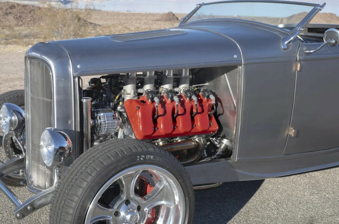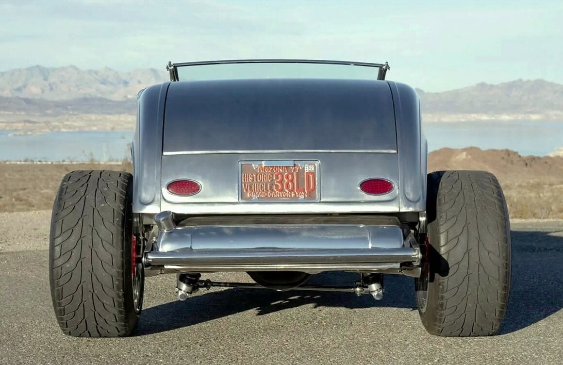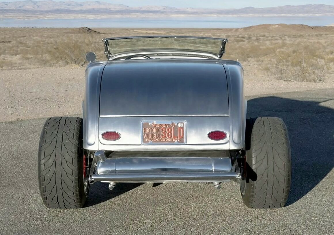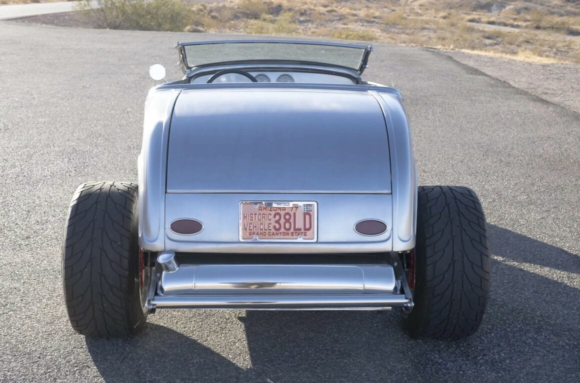 Il y a aussi des jantes “American Racing” de 18 pouces et un antipatinage. Ce Highboy personnalisé est maintenant offert en vente par le vendeur au nom du propriétaire avec un titre propre de l’Arizona l’inscrivant comme un “SPCON 1932”… Le numéro d’identification a été attribué par l’Etat d’Arizona avec le numéro AZ370615… Aux USA le consumérisme est roi et fait les Lois, le Hot Rodding crée un marché gigantesque apportant des flots de dollars et de taxes.