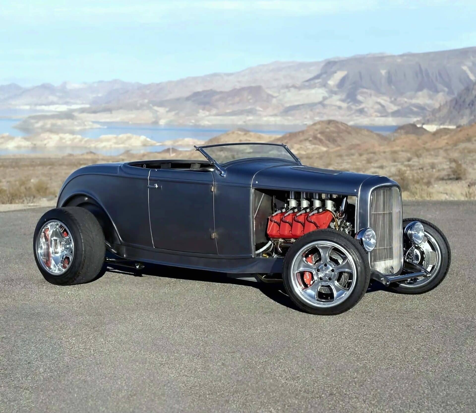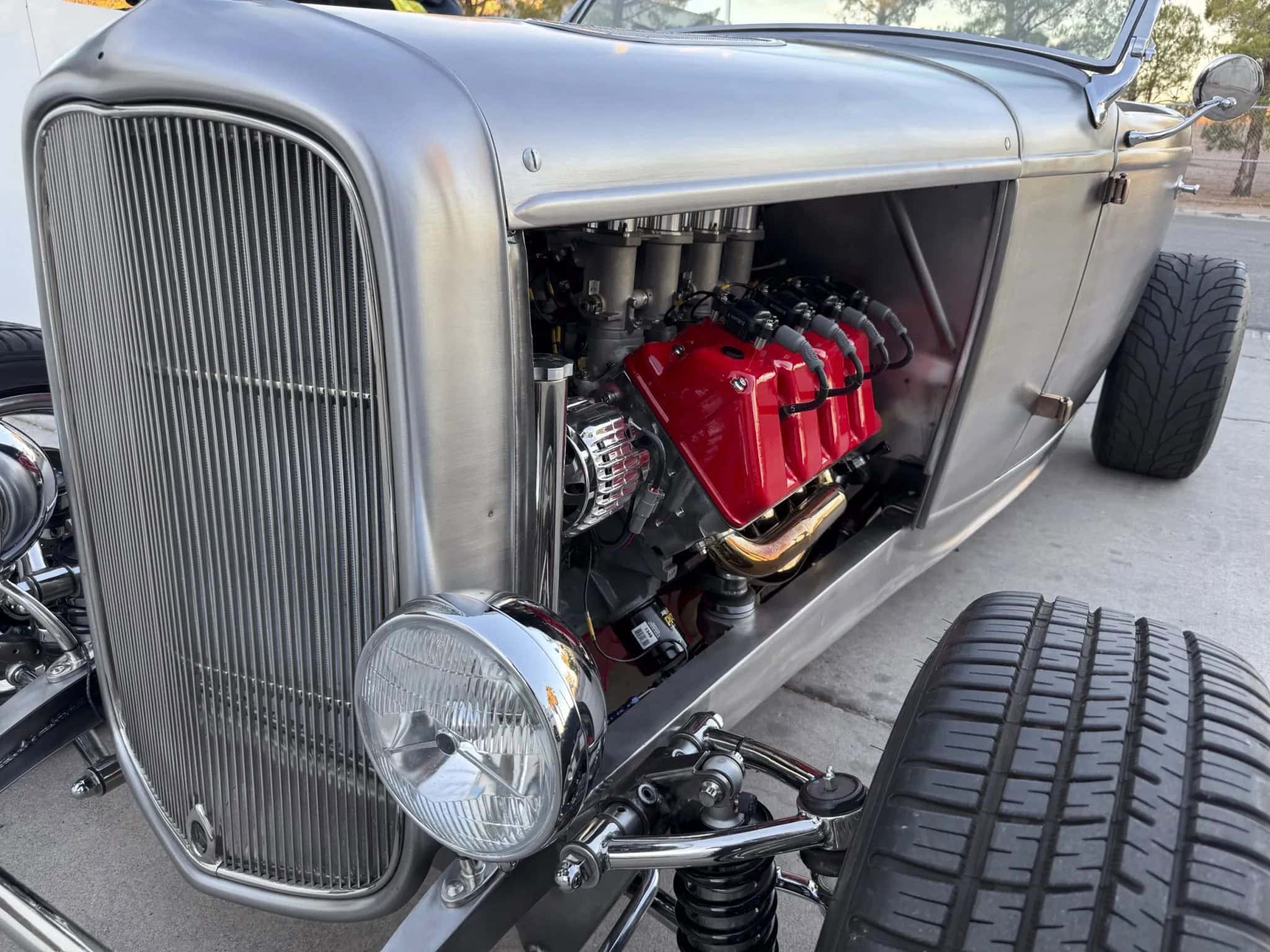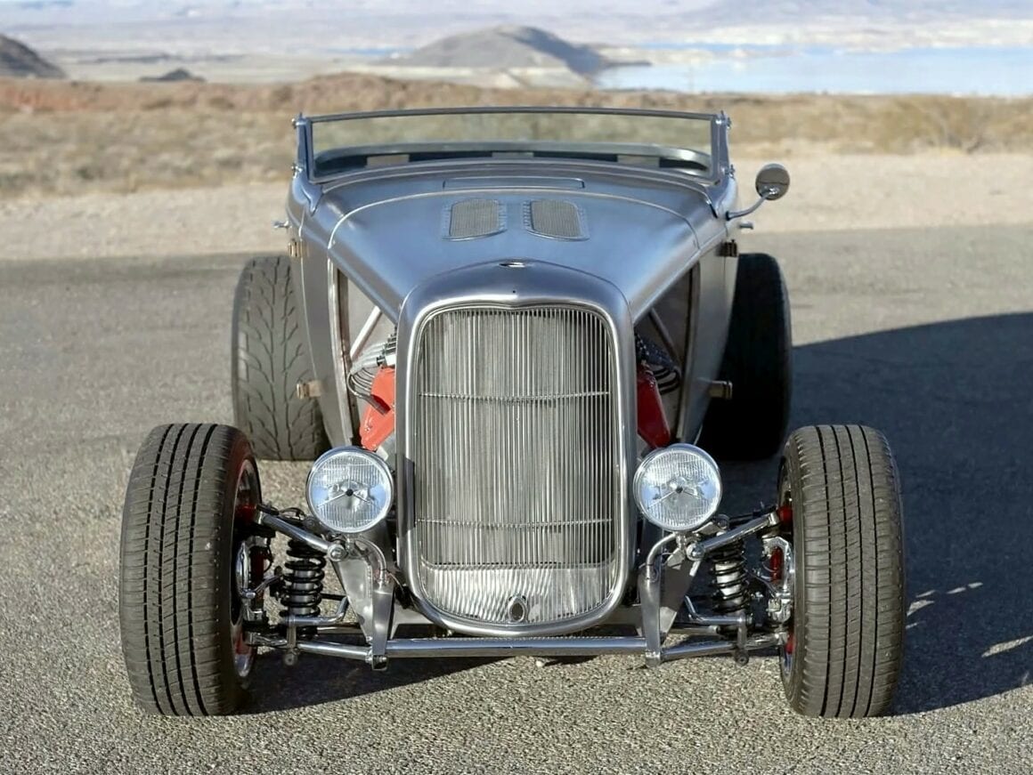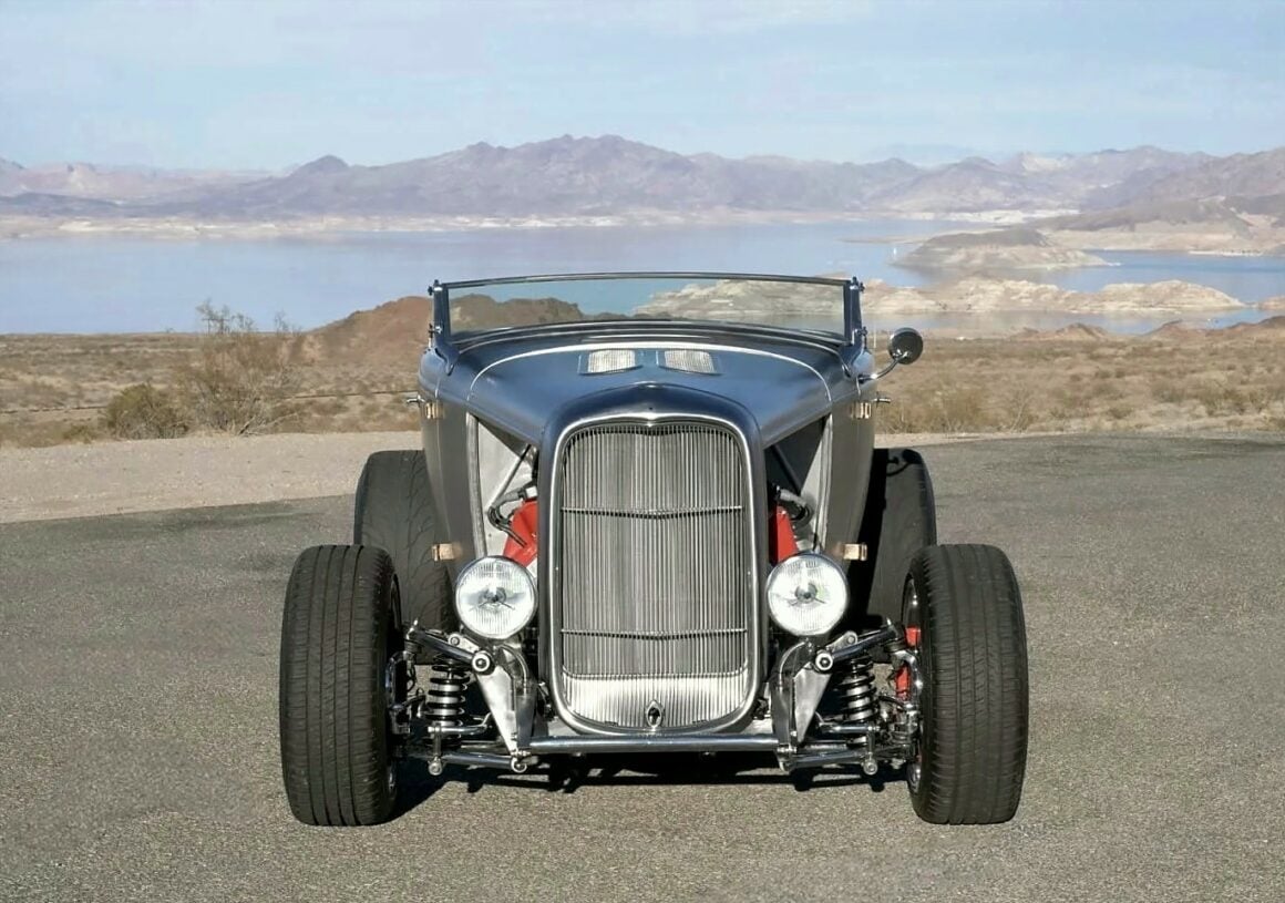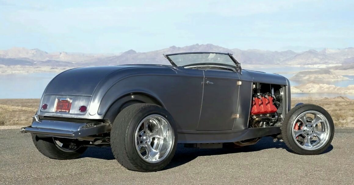 Il y a aussi des jantes “American Racing” de 18 pouces et un antipatinage. Ce Highboy personnalisé est maintenant offert en vente par le vendeur au nom du propriétaire avec un titre propre de l’Arizona l’inscrivant comme un “SPCON 1932”… Le numéro d’identification a été attribué par l’Etat d’Arizona avec le numéro AZ370615… Aux USA le consumérisme est roi et fait les Lois, le Hot Rodding crée un marché gigantesque apportant des flots de dollars et de taxes.