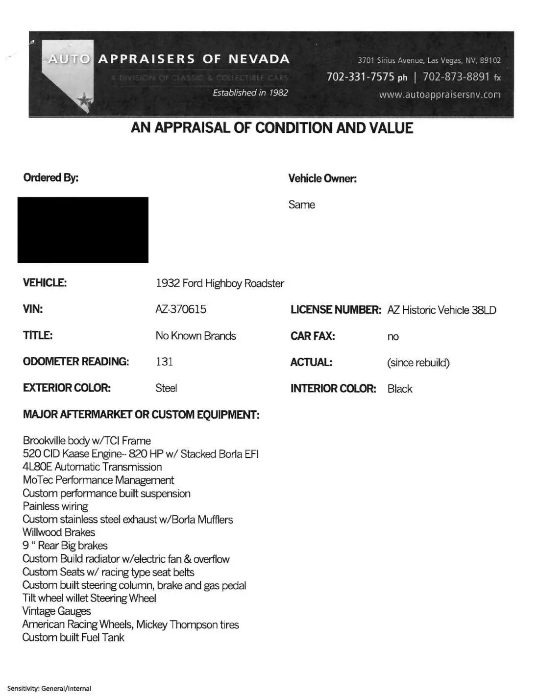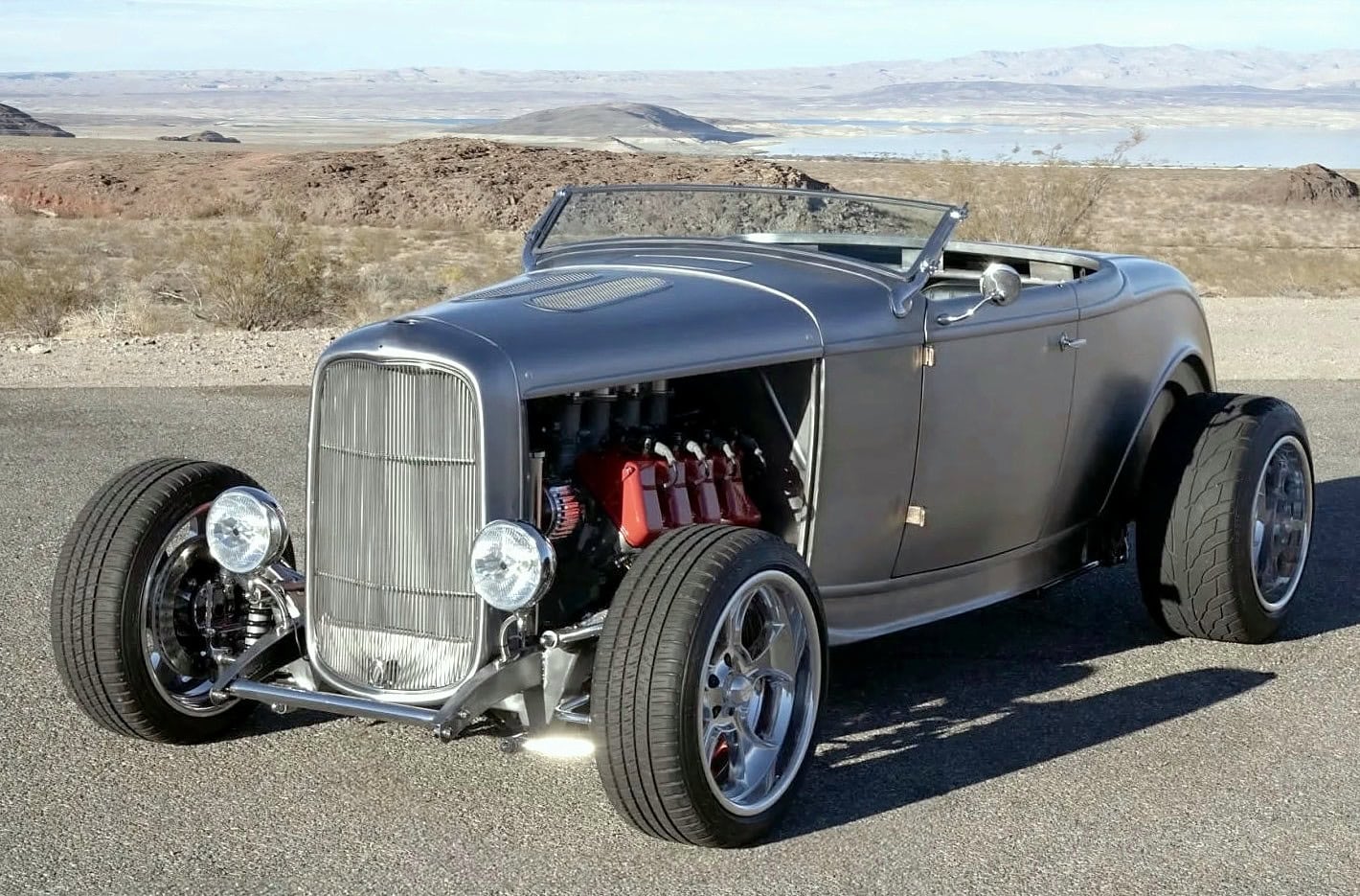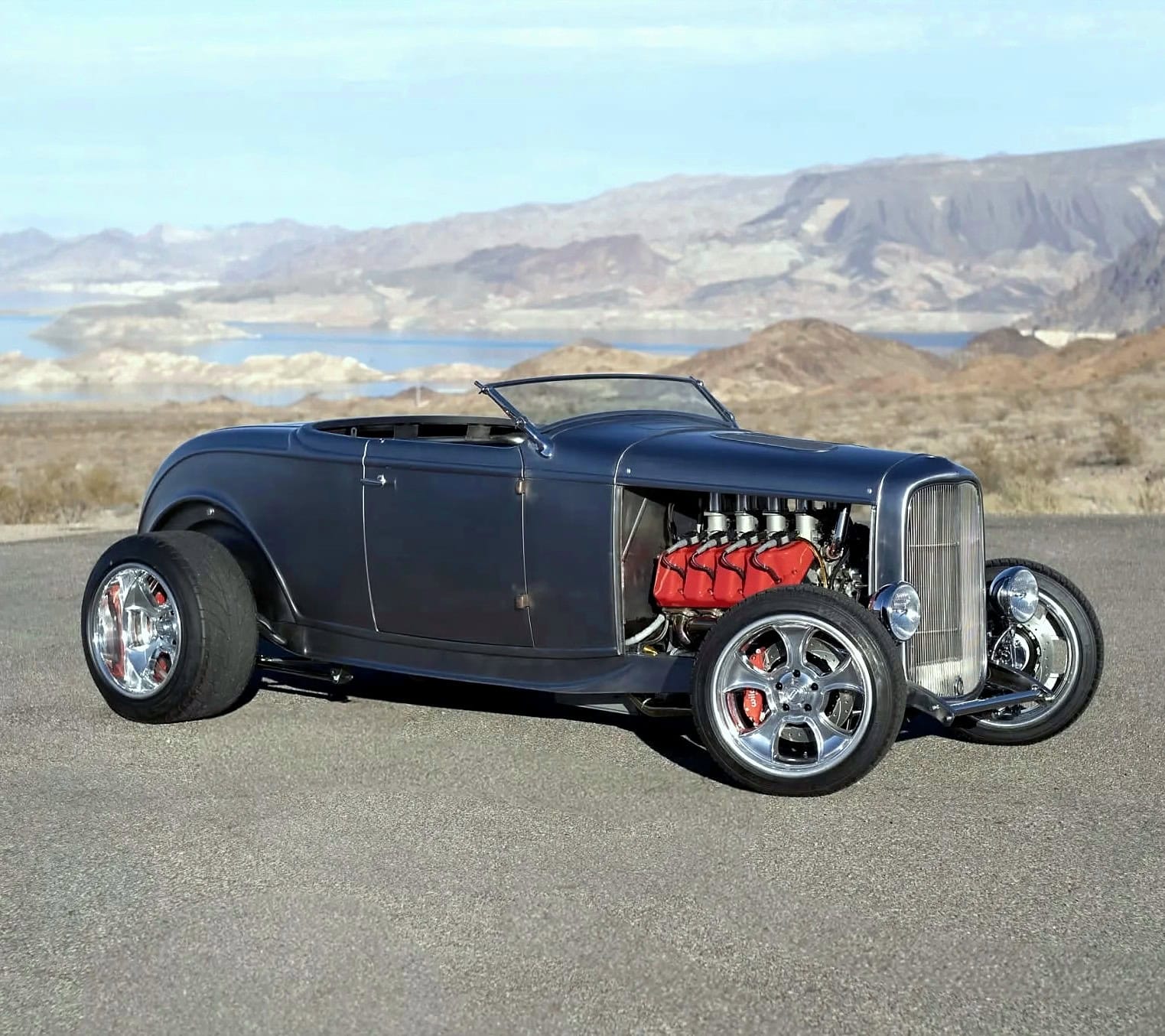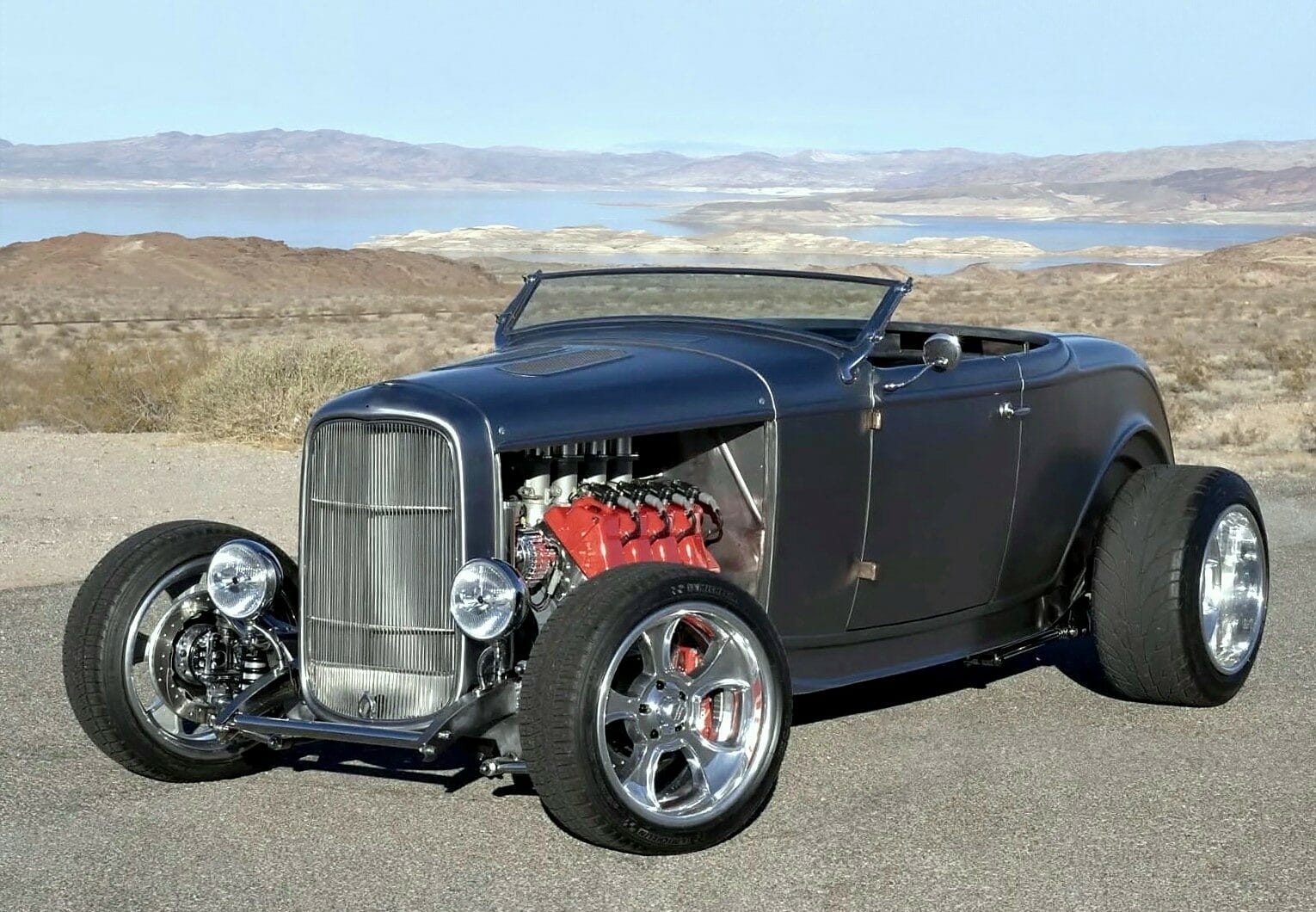 Il y a aussi des jantes “American Racing” de 18 pouces et un antipatinage. Ce Highboy personnalisé est maintenant offert en vente par le vendeur au nom du propriétaire avec un titre propre de l’Arizona l’inscrivant comme un “SPCON 1932”… Le numéro d’identification a été attribué par l’Etat d’Arizona avec le numéro AZ370615… Aux USA le consumérisme est roi et fait les Lois, le Hot Rodding crée un marché gigantesque apportant des flots de dollars et de taxes.