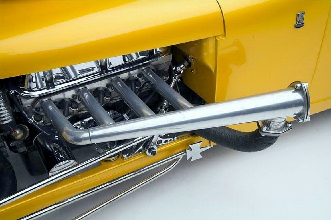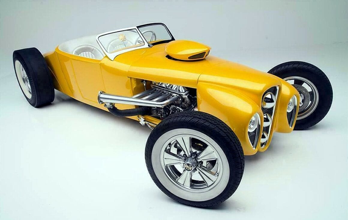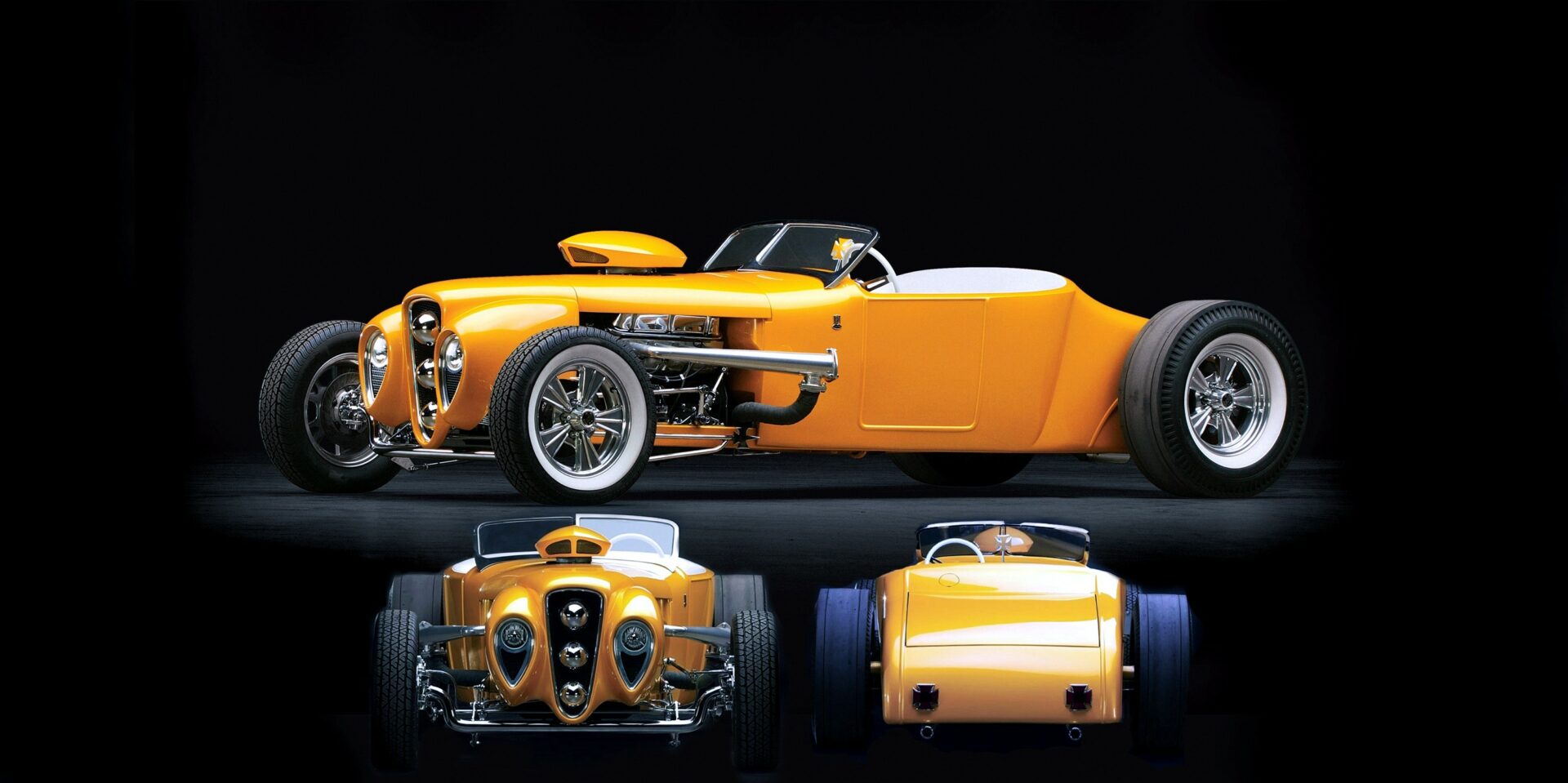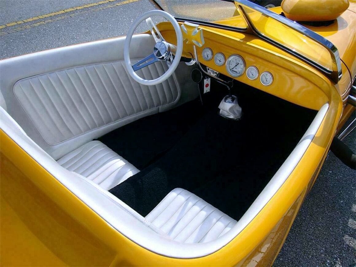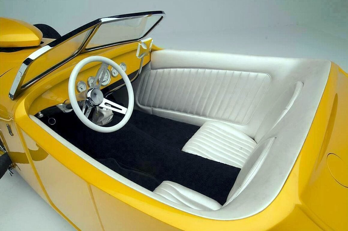 Ce merveilleux spécimen Jaune est le rêve abouti de Rick d’un modèle T appelé “l’âge d’or”. L’âge d’or des Hot-Rods c’est la décennie des sixties. Il a été construit en utilisant de nombreuses lignes classiques des années ’50 et ’60, mais avec le style et le flair de Rick. Sa carrosserie en acier a été formée à la main par Rick sur un châssis étiré laissant les portes en place mais sans pouvoir s’ouvrir.