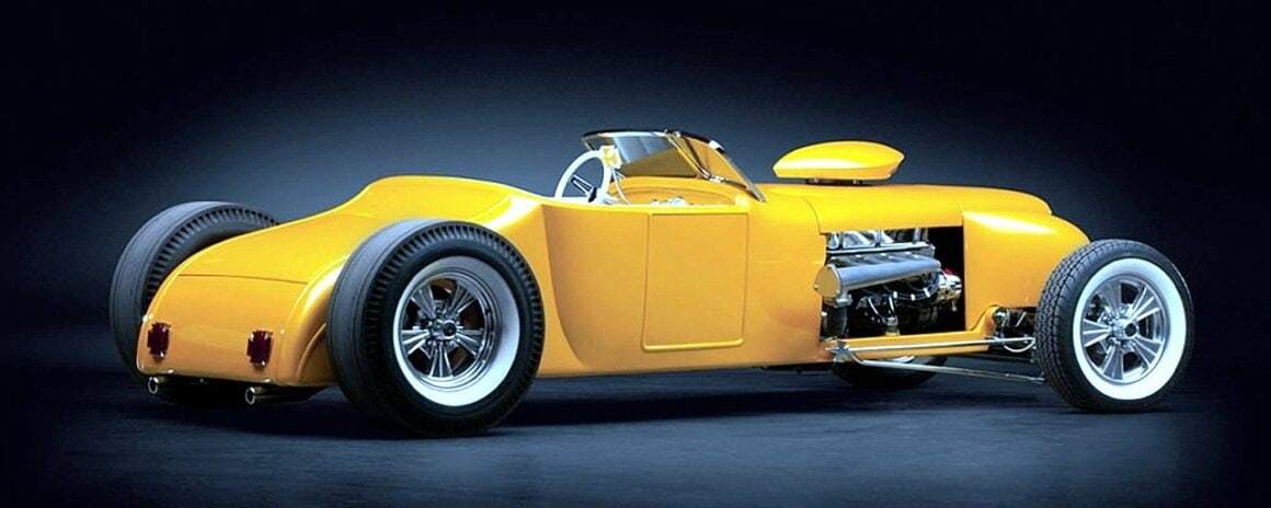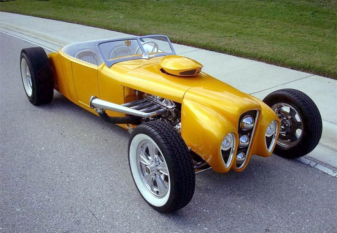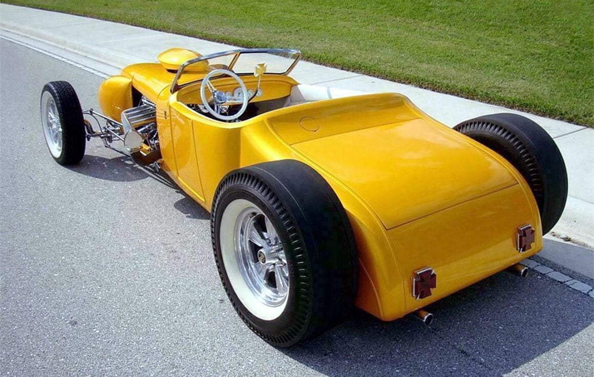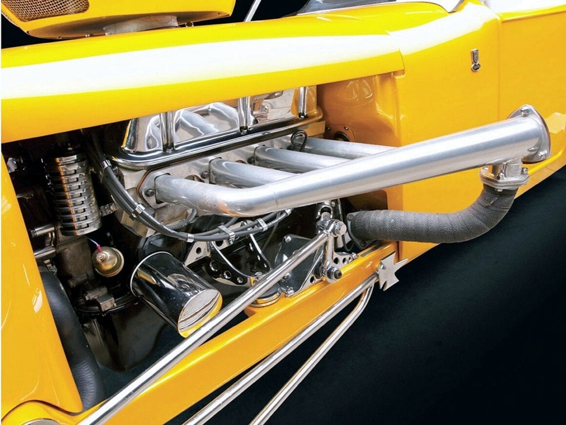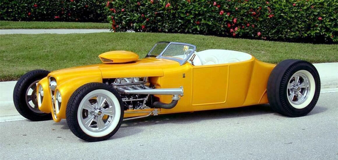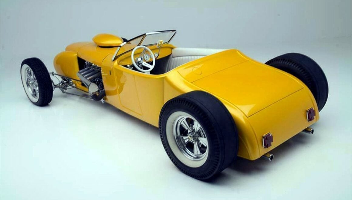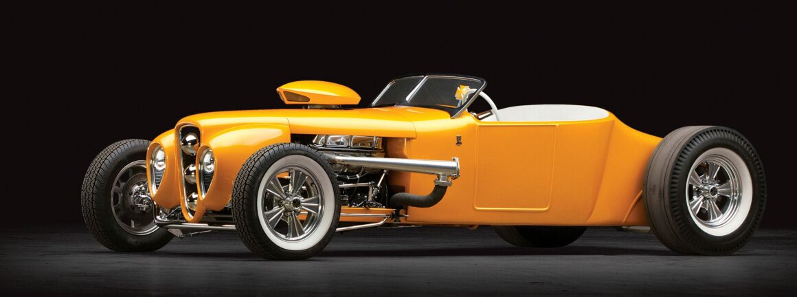 Ce merveilleux spécimen Jaune est le rêve abouti de Rick d’un modèle T appelé “l’âge d’or”. L’âge d’or des Hot-Rods c’est la décennie des sixties. Il a été construit en utilisant de nombreuses lignes classiques des années ’50 et ’60, mais avec le style et le flair de Rick. Sa carrosserie en acier a été formée à la main par Rick sur un châssis étiré laissant les portes en place mais sans pouvoir s’ouvrir.