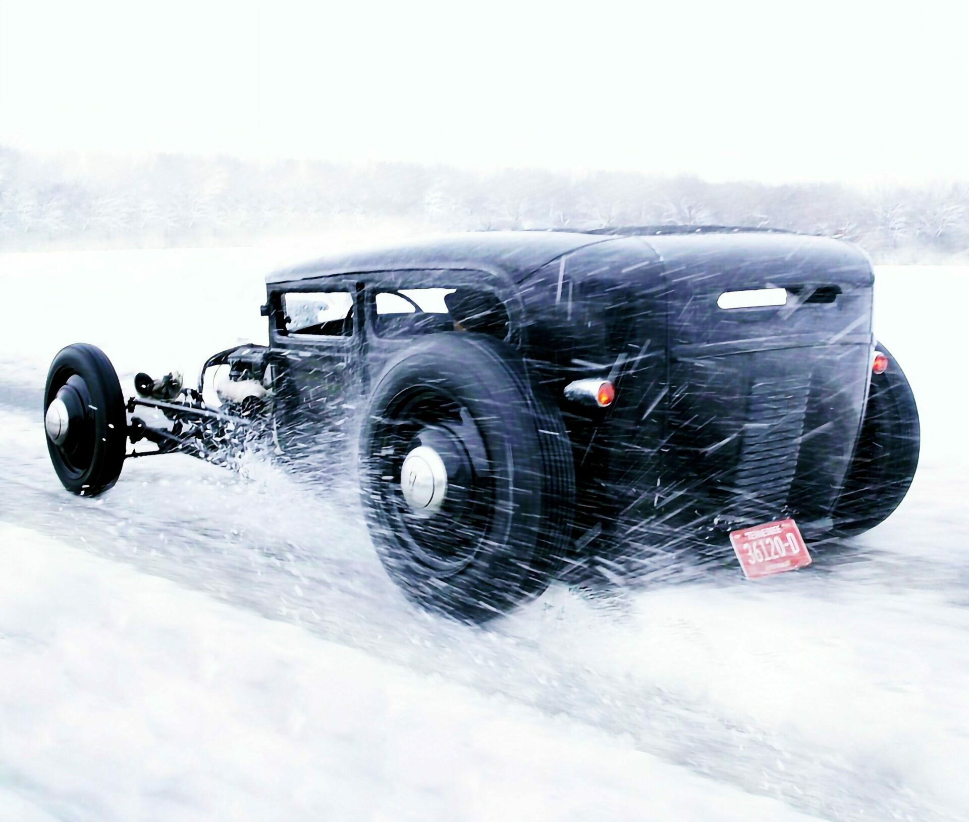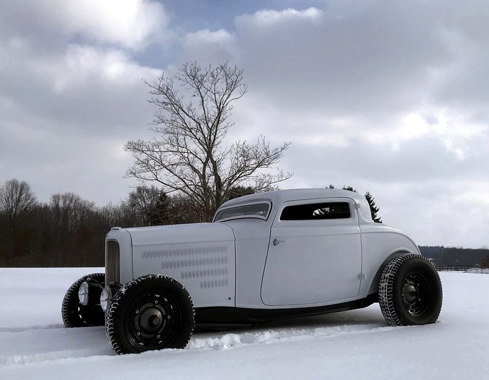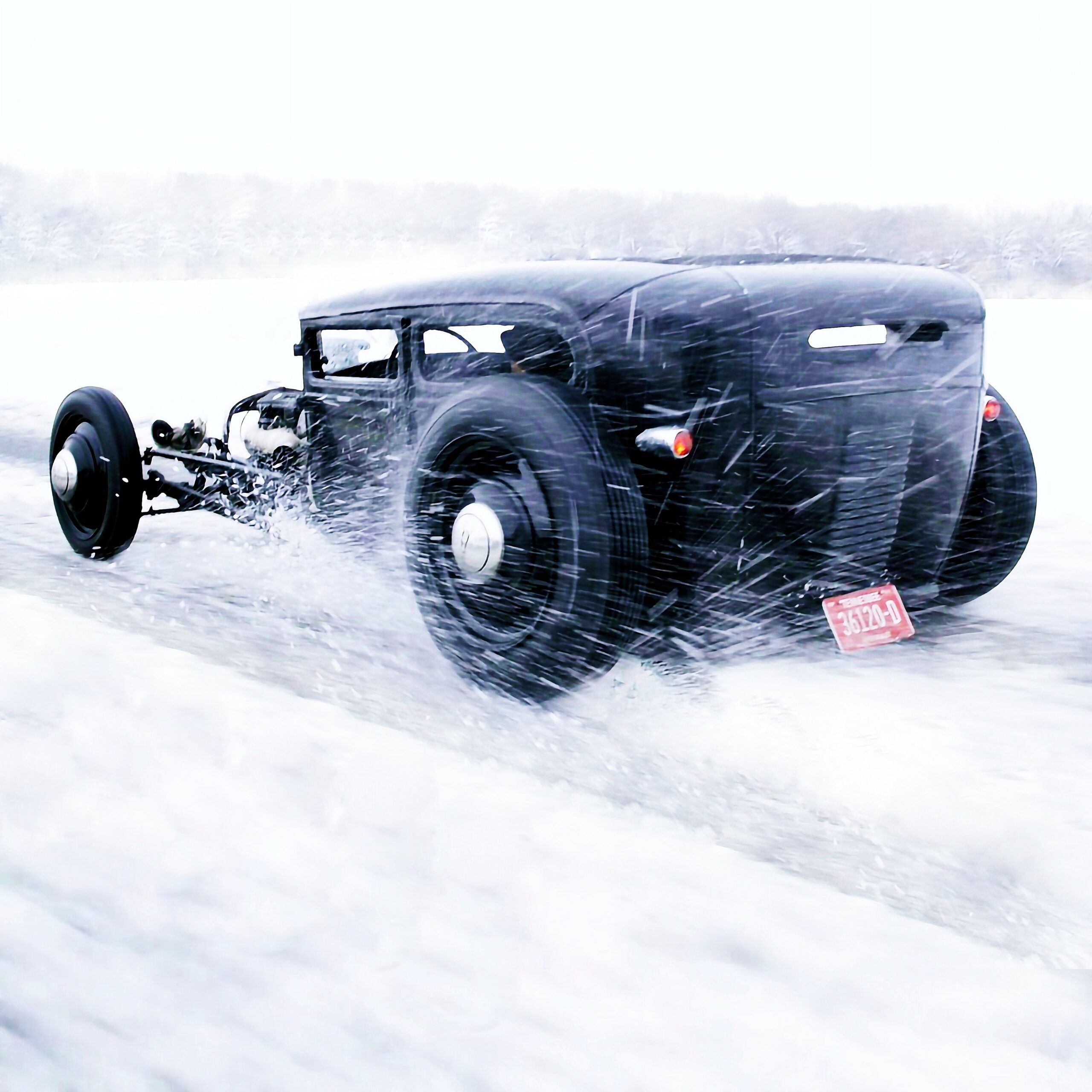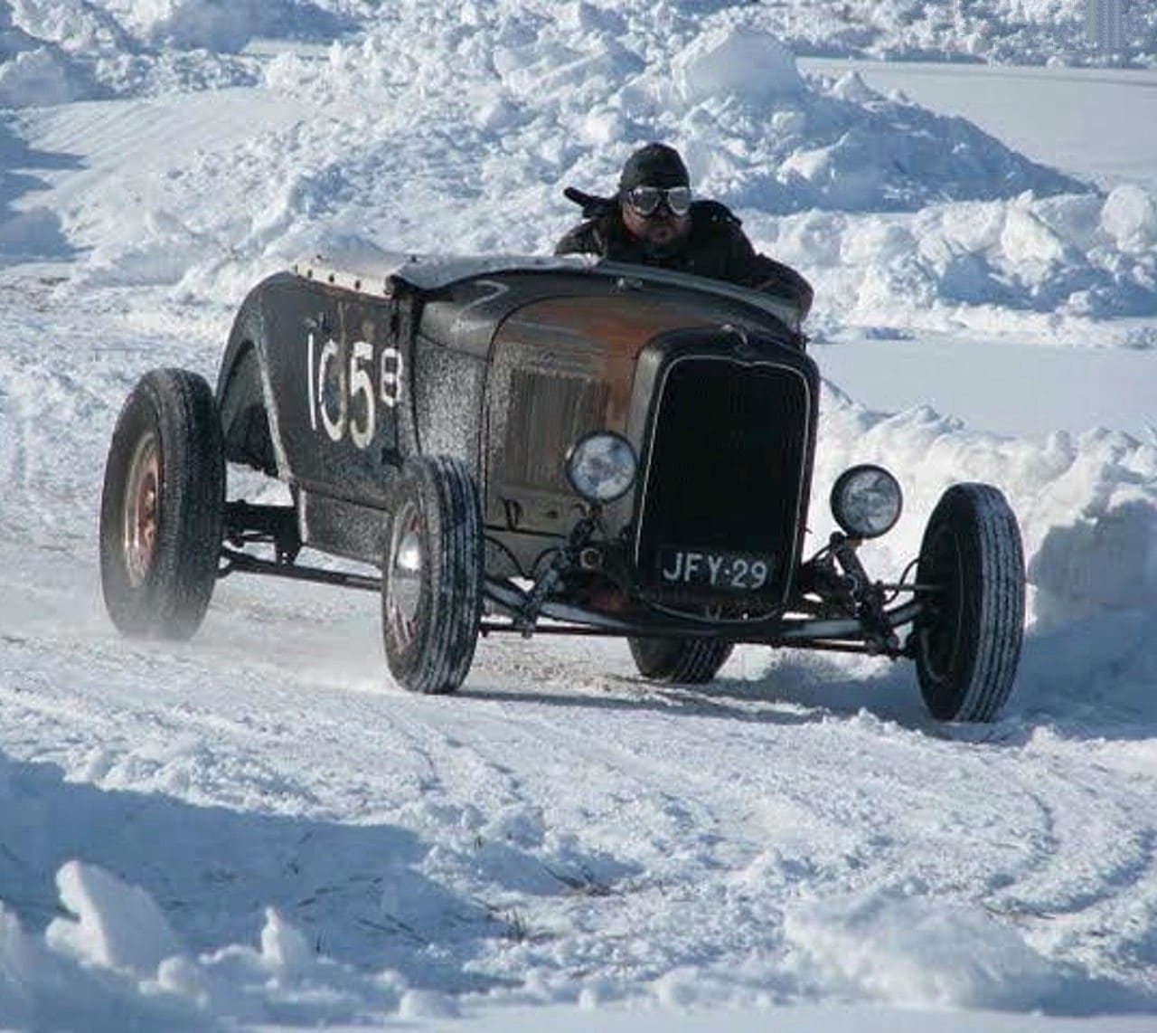 Des Hot-Rods utilisés en période de neige et de gel, waouwww !… Cela rompt totalement avec l’esprit des Hot-Rods “concours” qui ne sortent qu’en été sous le soleil… Pffffffff ! Ne t’inquiète pas mon Popu, tu sais que je suis iconoclaste, politiquement incorrect, et, dans cet esprit “Little-destroy” il est normal que je te présente enfin des Hot-Rods utilisés en hiver…