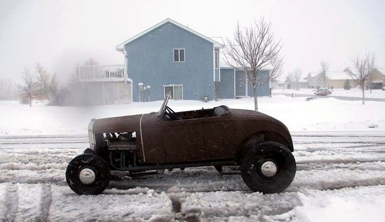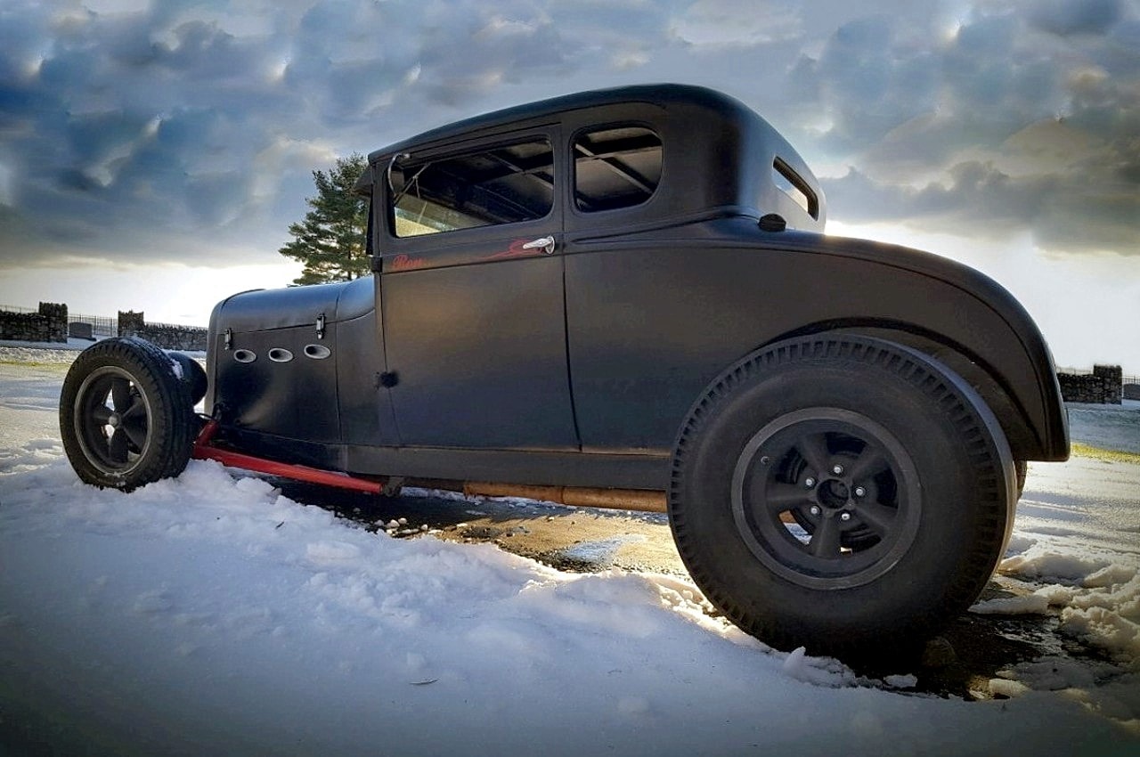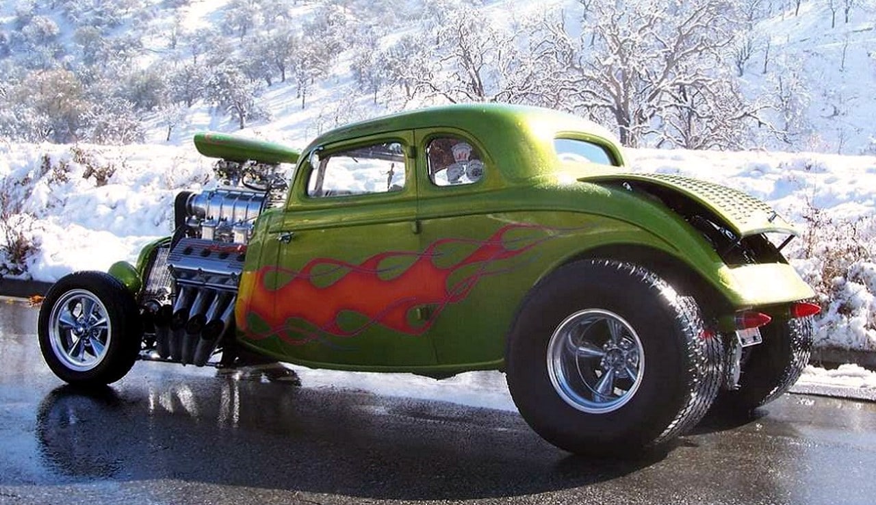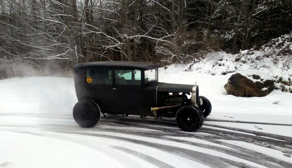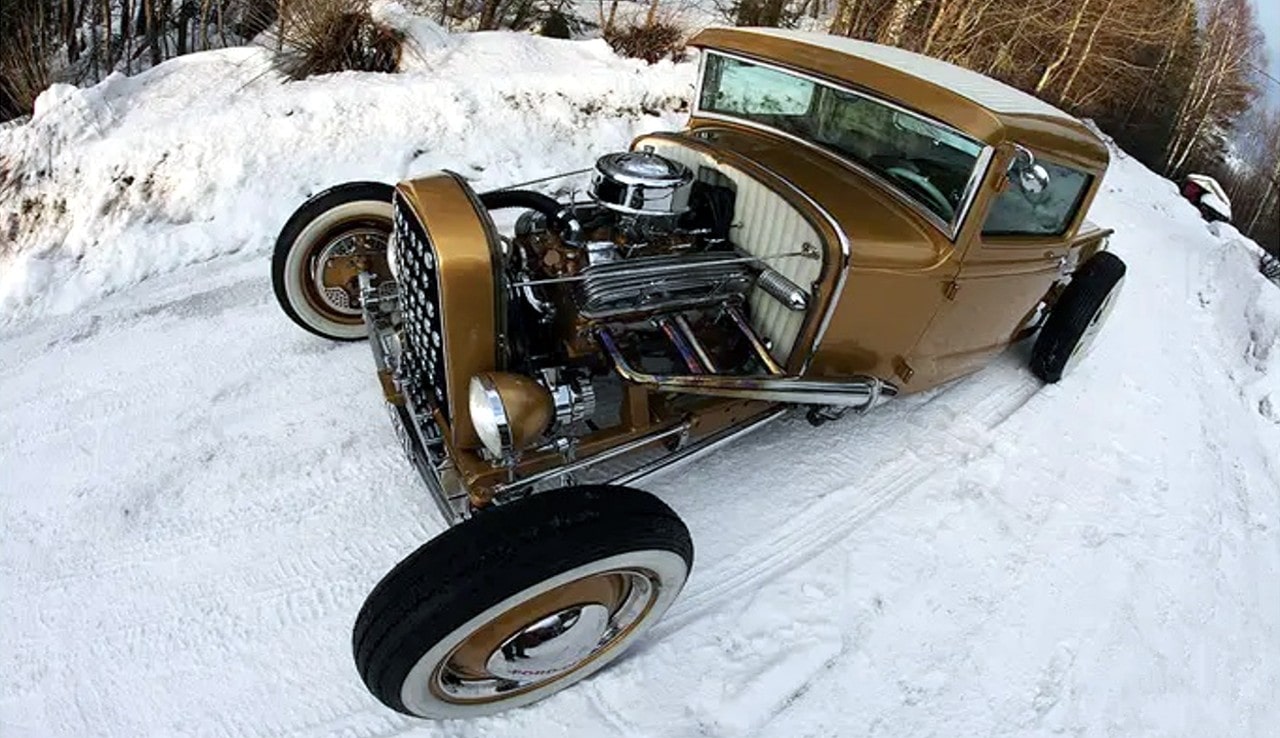 Des Hot-Rods utilisés en période de neige et de gel, waouwww !… Cela rompt totalement avec l’esprit des Hot-Rods “concours” qui ne sortent qu’en été sous le soleil… Pffffffff ! Ne t’inquiète pas mon Popu, tu sais que je suis iconoclaste, politiquement incorrect, et, dans cet esprit “Little-destroy” il est normal que je te présente enfin des Hot-Rods utilisés en hiver…