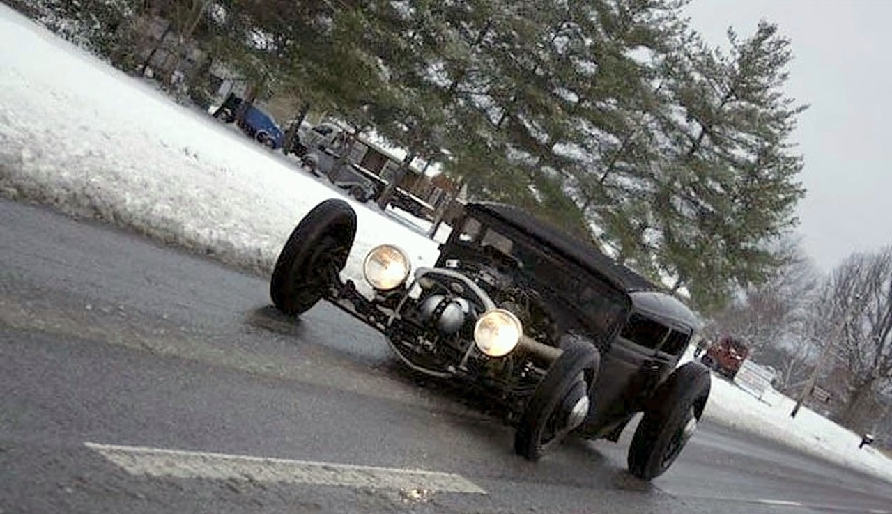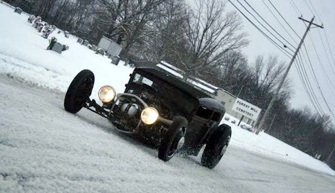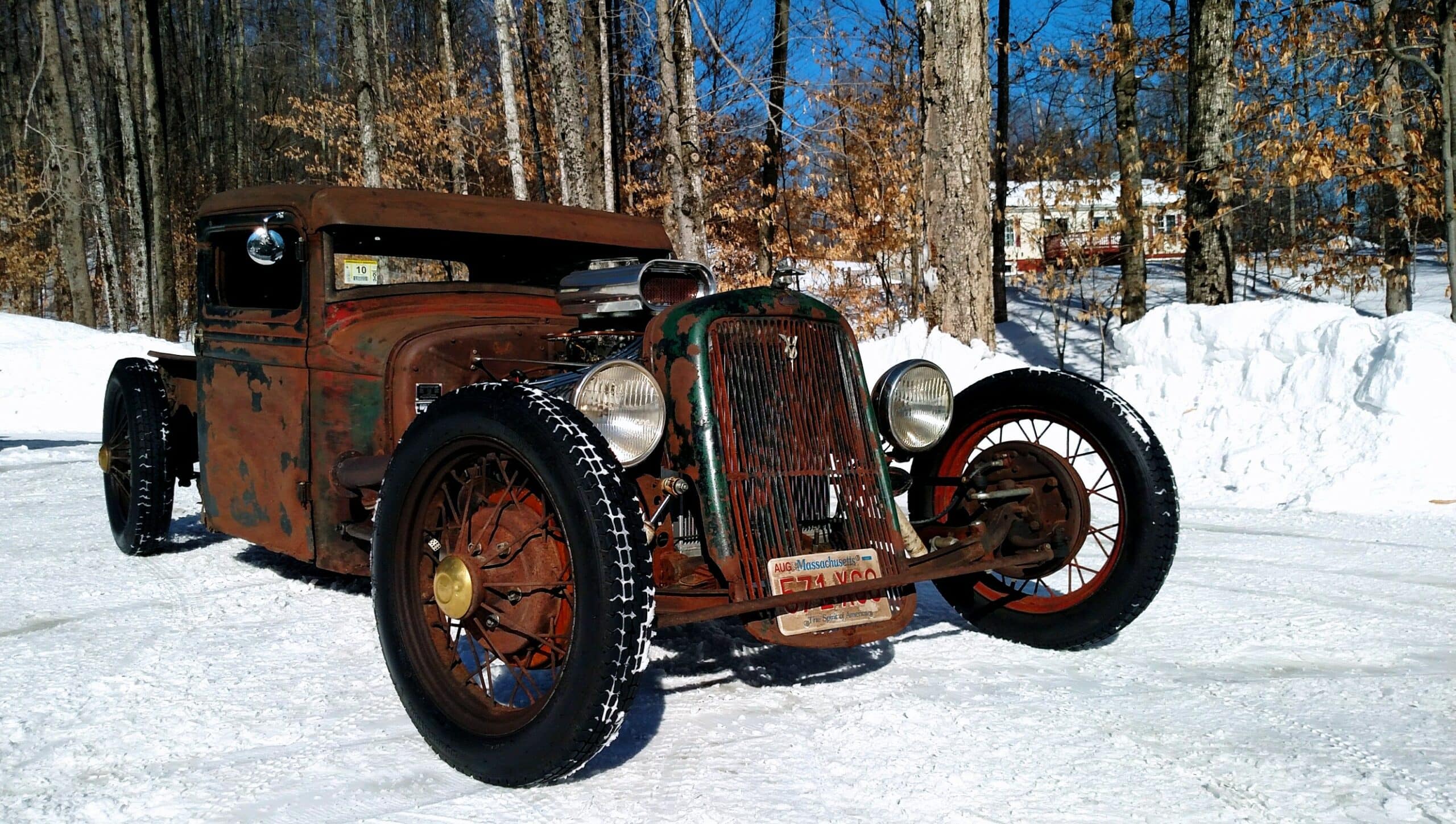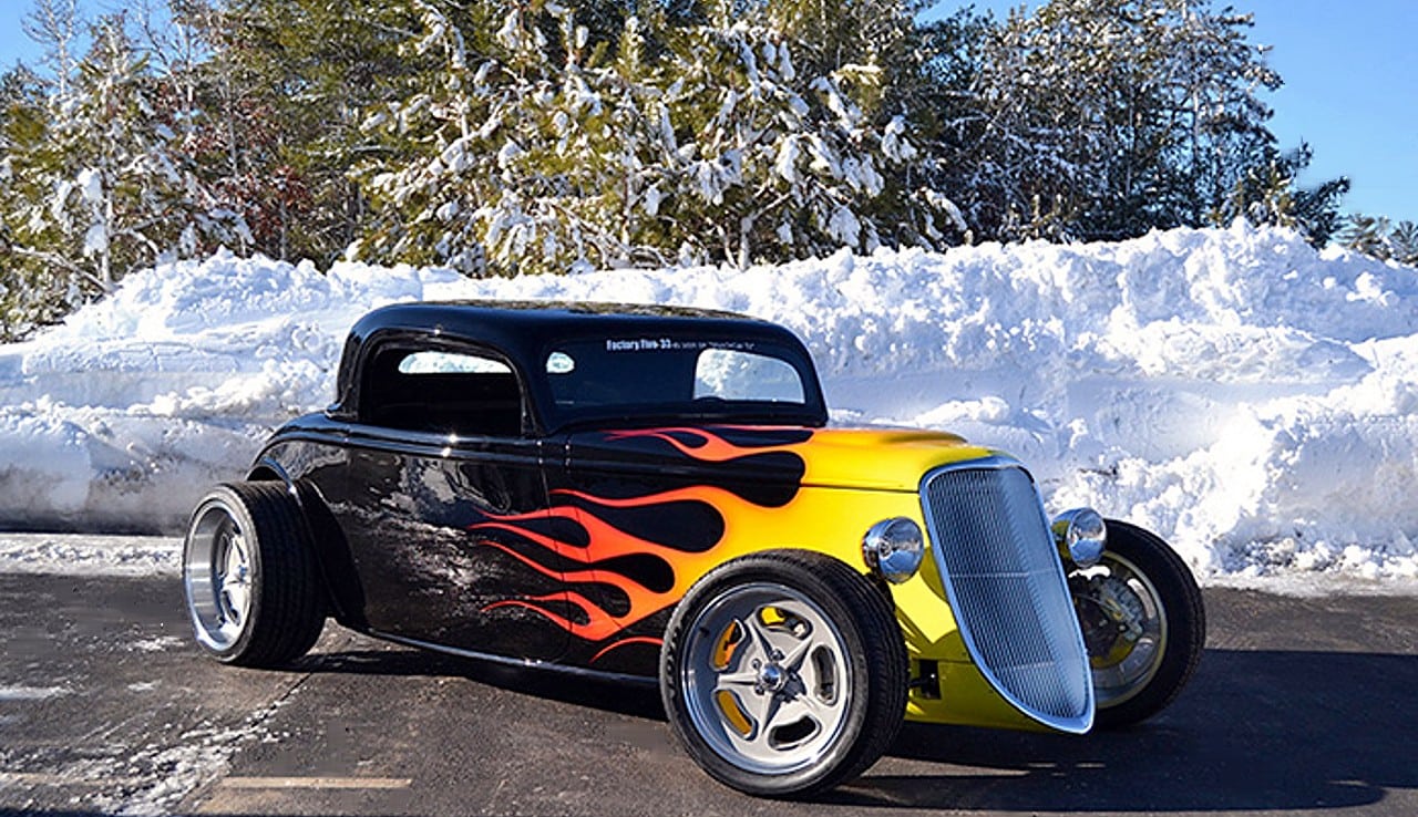 Des Hot-Rods utilisés en période de neige et de gel, waouwww !… Cela rompt totalement avec l’esprit des Hot-Rods “concours” qui ne sortent qu’en été sous le soleil… Pffffffff ! Ne t’inquiète pas mon Popu, tu sais que je suis iconoclaste, politiquement incorrect, et, dans cet esprit “Little-destroy” il est normal que je te présente enfin des Hot-Rods utilisés en hiver…