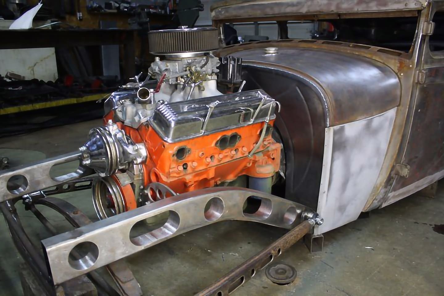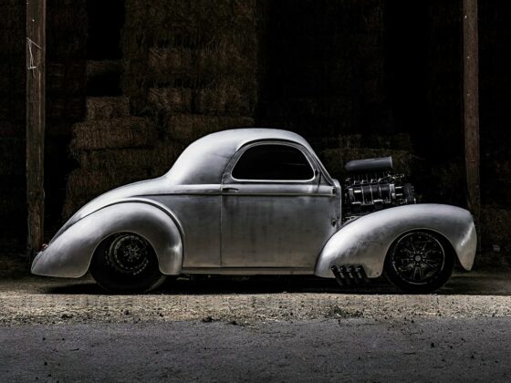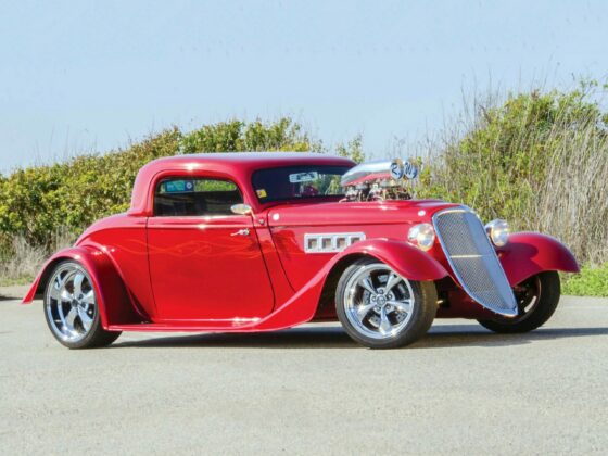 Elles disposent de cache-disques et d’enjoliveurs sur mesure pour imiter le look d’avant-guerre, un job sacrément délicat. Encore une fois, on ne m’a pas raconté grand-chose en dehors du magasin de Ricky Bobby sur le small bloc V8 Chevy, à part qu’il utilise des cache-culbuteurs Edelbrock, un carburateur à double pompe Holley 650cfm et de jolis échappements de style “Limefire”.
