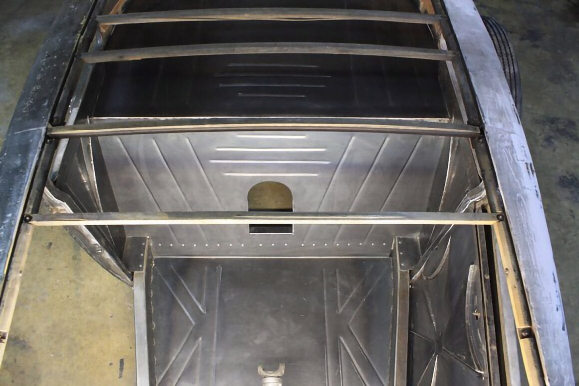La faible hauteur de carrosserie avec le châssis au ras du sol signifie que l’arbre de transmission passe à l’intérieur de la voiture (et pas en dessous), dans un tunnel de transmission “flottant”...Oouaissss mon Popu… c’est si bas que… Bof !… Je ne vais pas y perdre trop de lignes… Un réservoir de carburant de 12 gallons sur mesure a été fabriqué, juste assez pour passer d’une station-service à l’autre, sans aucun garantie…