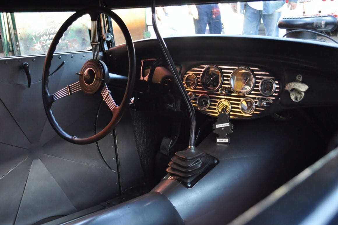 La finition façon ciel de toit en bois et tissu a été peaufinée façon standards Rolls-Royce, tandis que l’intérieur comprend des sièges minimalistes fabriqués à partir de sacs à dos pour fantassins aéroportés de la Seconde Guerre mondiale… Le tableau de bord avec des compteurs à profusion provient d’un super hors-bord Chris-Craft…