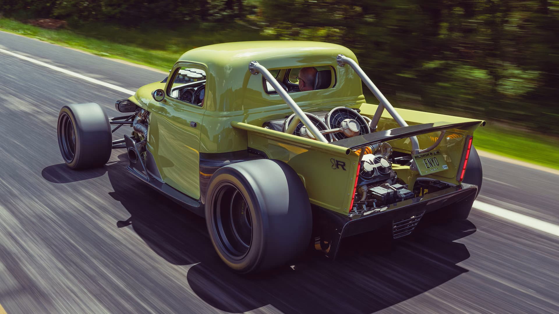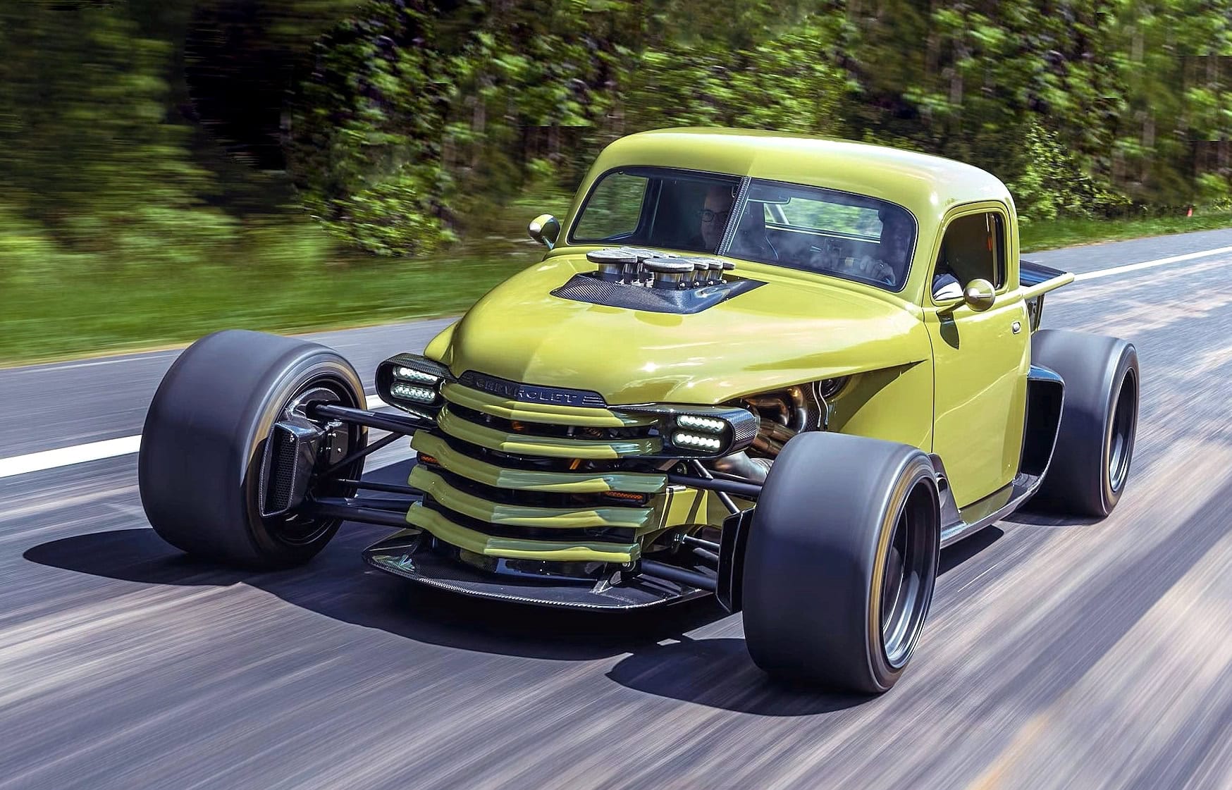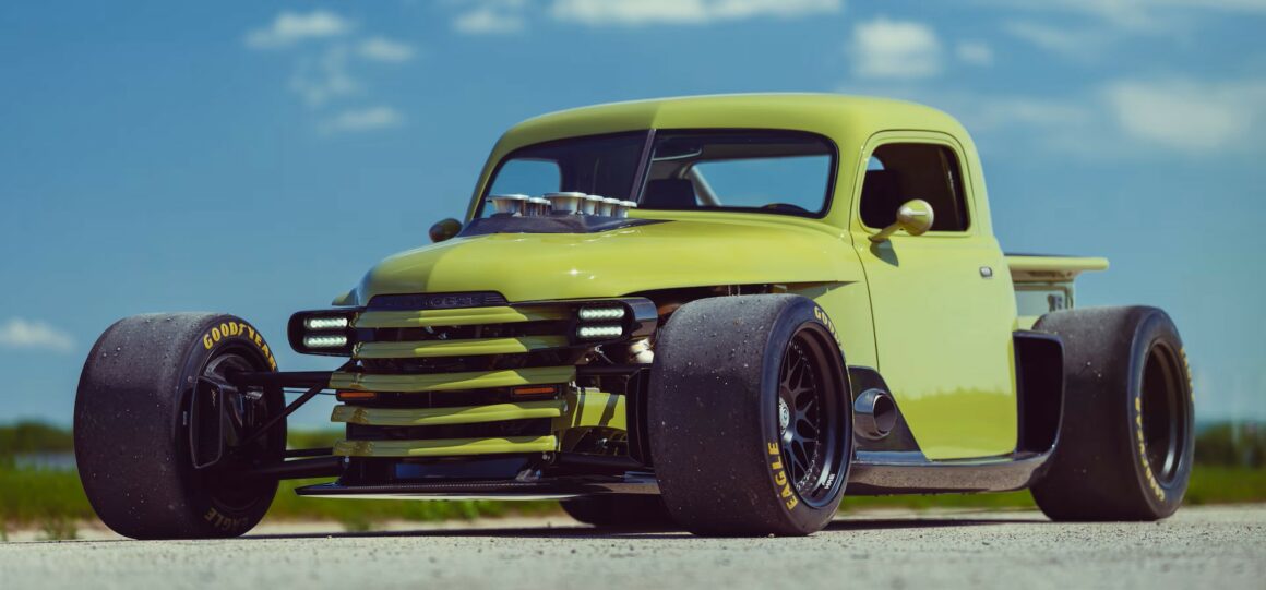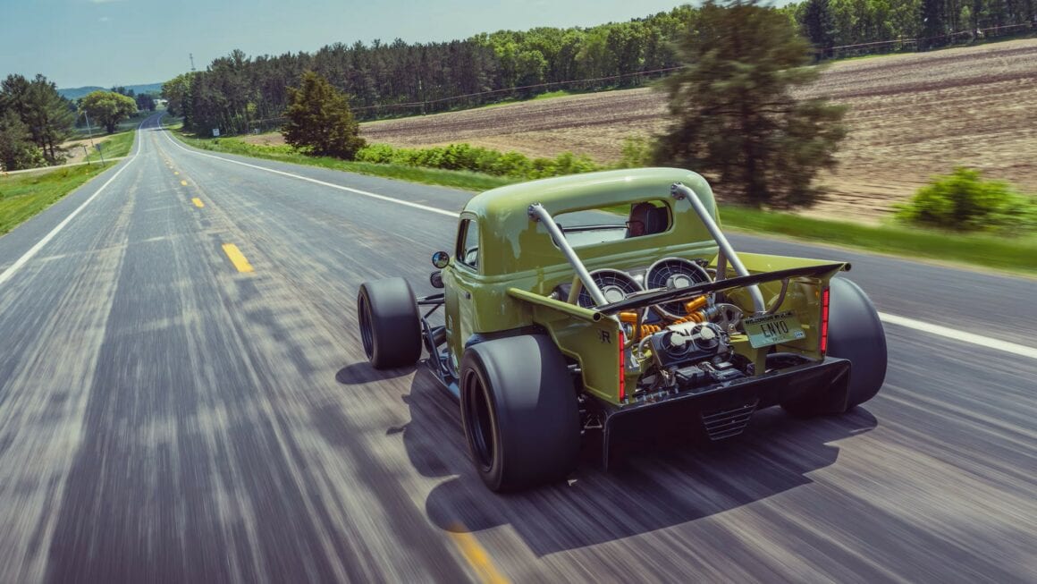 Attachez-vous à ce missile routier de 1 000 cv et vavavoum ! ENYO, t’est TOP…, et nous avons pu en faire l’expérience de première main. Lorsque cet engin a fait ses débuts au salon SEMA, Ringbrothers a mis le feu au Las Vegas Convention Center avec cette voiture. Frappez-vous la tête, ce n’est même pas une voiture ; il s’agit d’un mini camion pick-up, plus précisément d’un Chevy Loadmaster de 1948. Waouwwww !