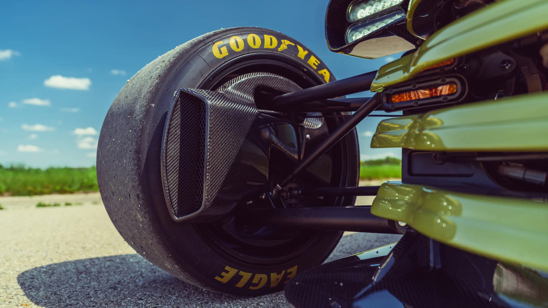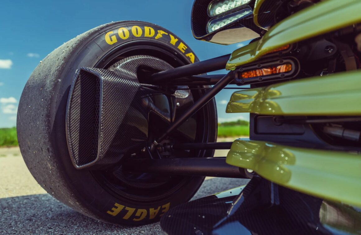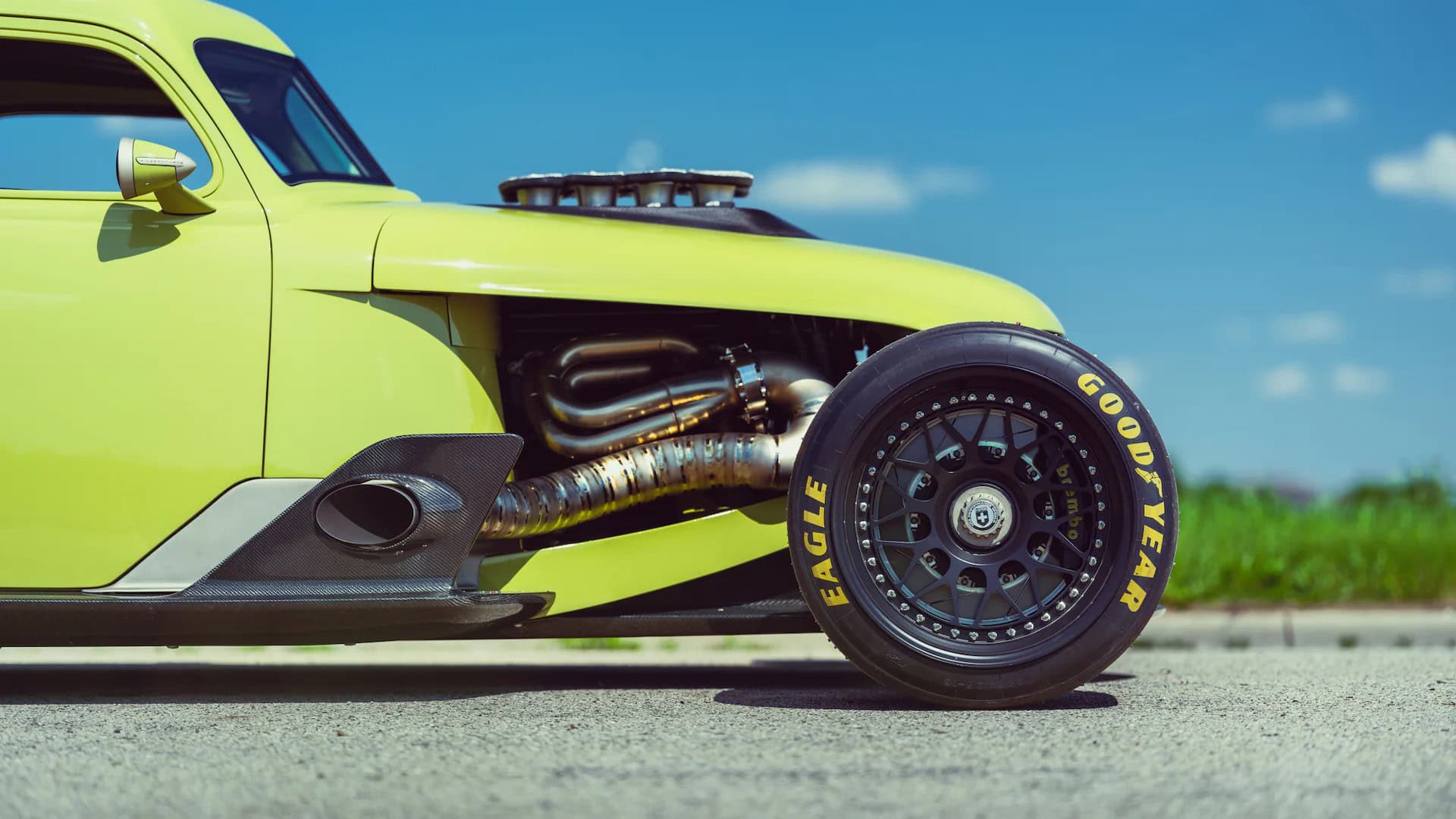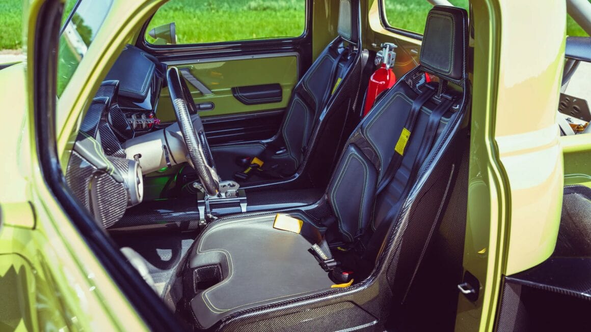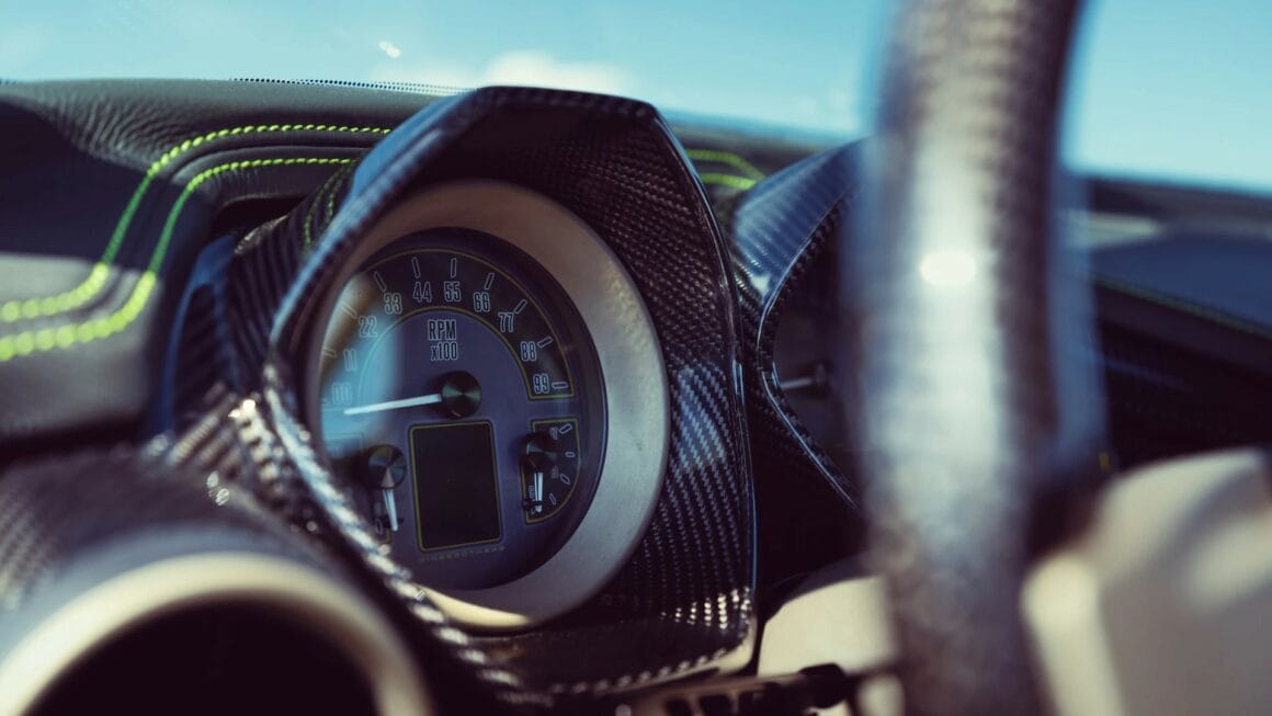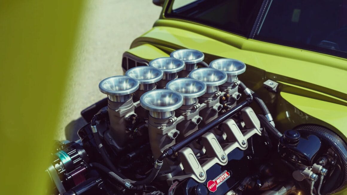 La suspension cantilever a été conçue par Ahlman Engineering et construite par Roadster Shop, freins Brembo GTS avec étriers à six pistons, jantes HRE de 18 pouces conçues sur mesure et plus de pièces en titane, en aluminium et en fibre de carbone que vous ne pouvez en regarder. Le bloc de 510ci, unr grande cylindrée, équivaut à une grande, grosse puissance : un cool 1 000cv avec de l’essence de course, pour être précis.