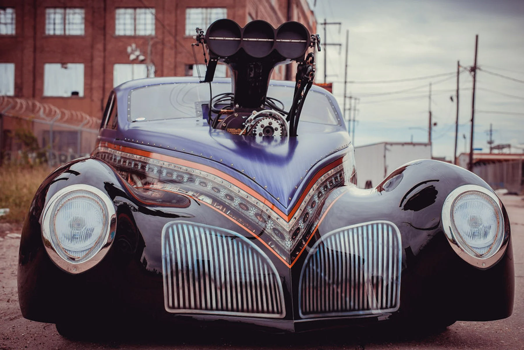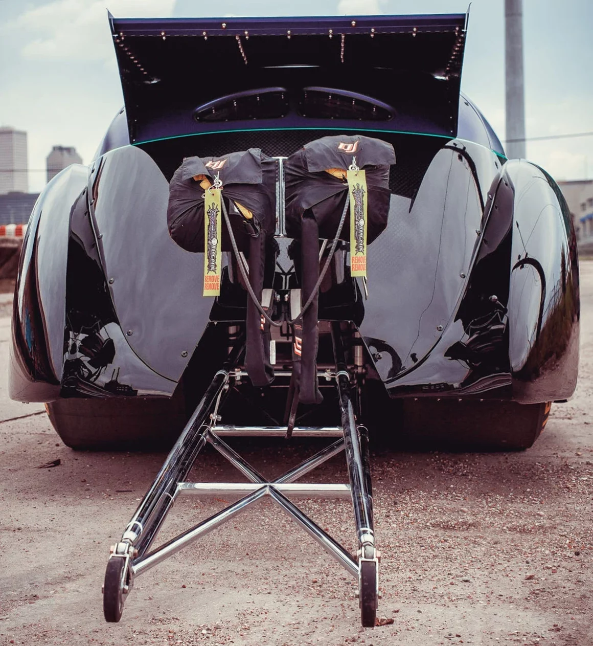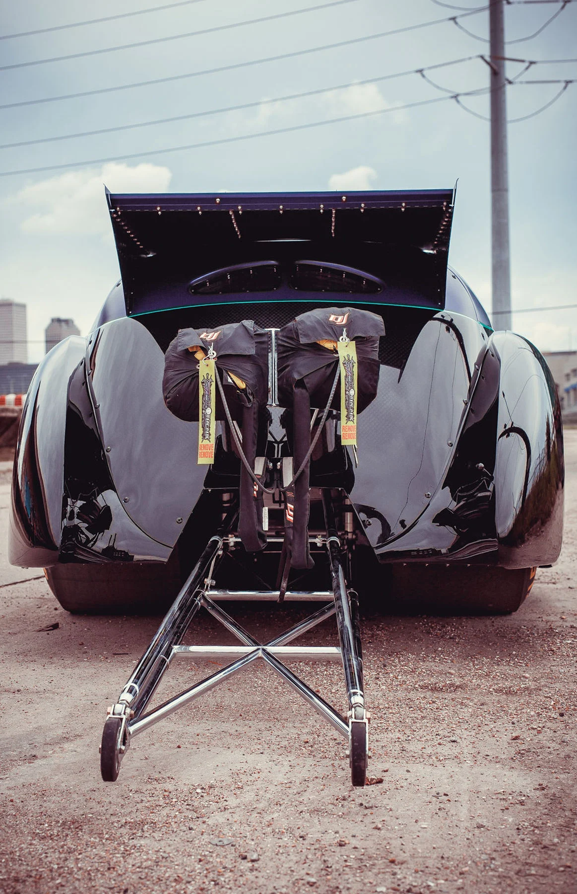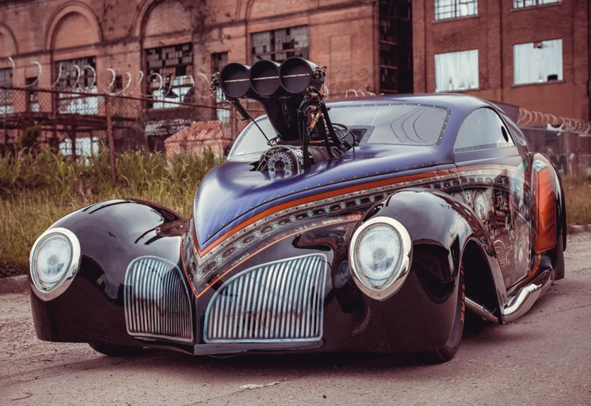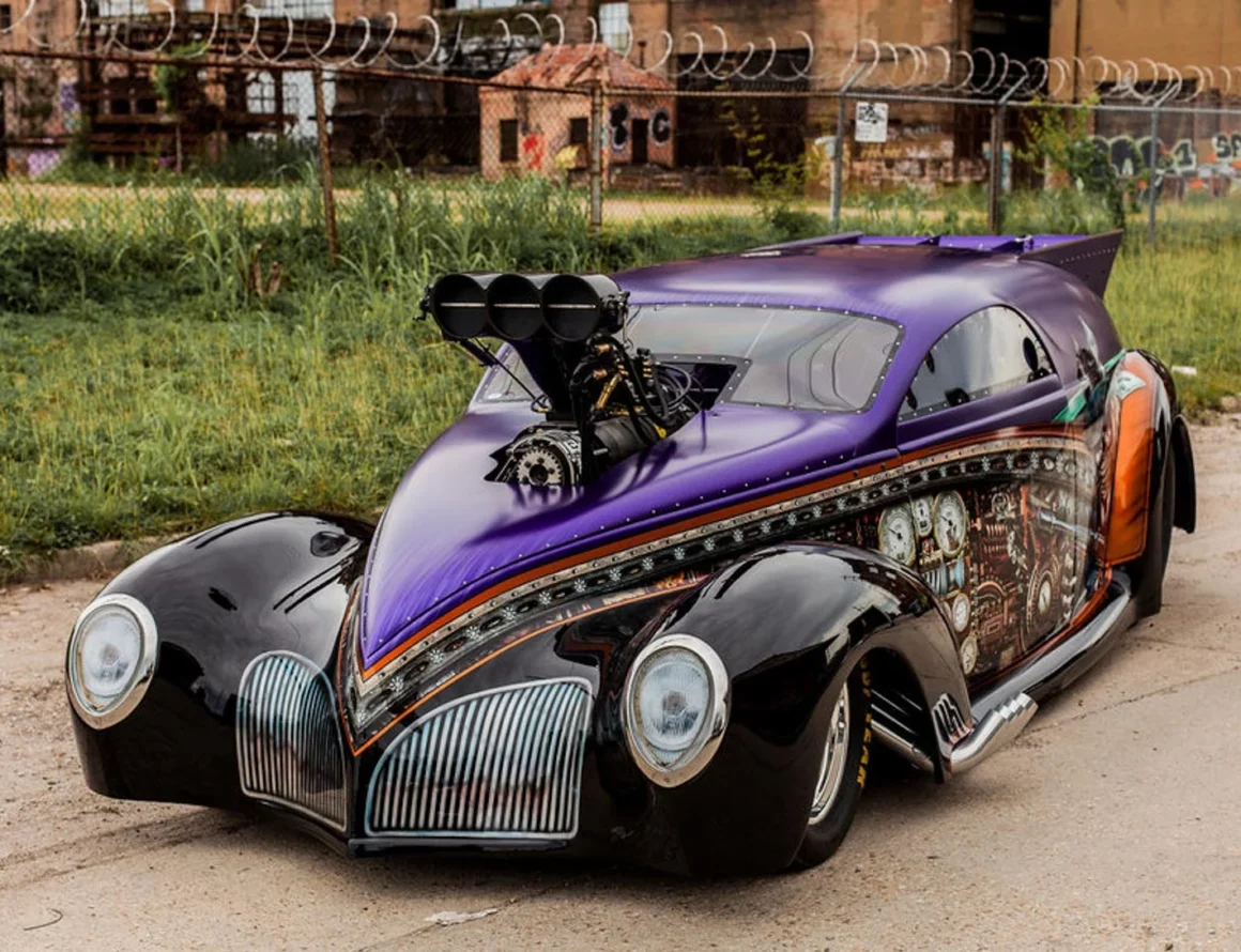 C’est “une chose” destinée à aller d’un point A à un point B éloignés de 400 mètres en ligne droite (1/4 de miles)le plus rapidement possible… Formidable… Je suis dubitatif… Donc, je résume : “Cet engin dans l’absolu n’a aucune utilité si ce n’est que de pouvoir aller vite pour atteindre les 400 mètres et… Rien… C’est déjà fini… Pas plus… Pas moins… Déroutant”… Gary et Bryon Rusich n’étaient certainement pas intéressés par la construction d’une voiture Pro Modified typique… à la place, ils ont demandé à Jason et Michael Wood de Wizard Race Cars de créer une Lincoln Zephyr 1939 suralimentée unique.