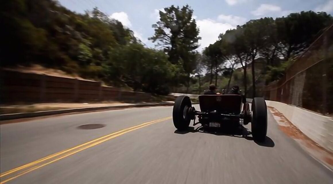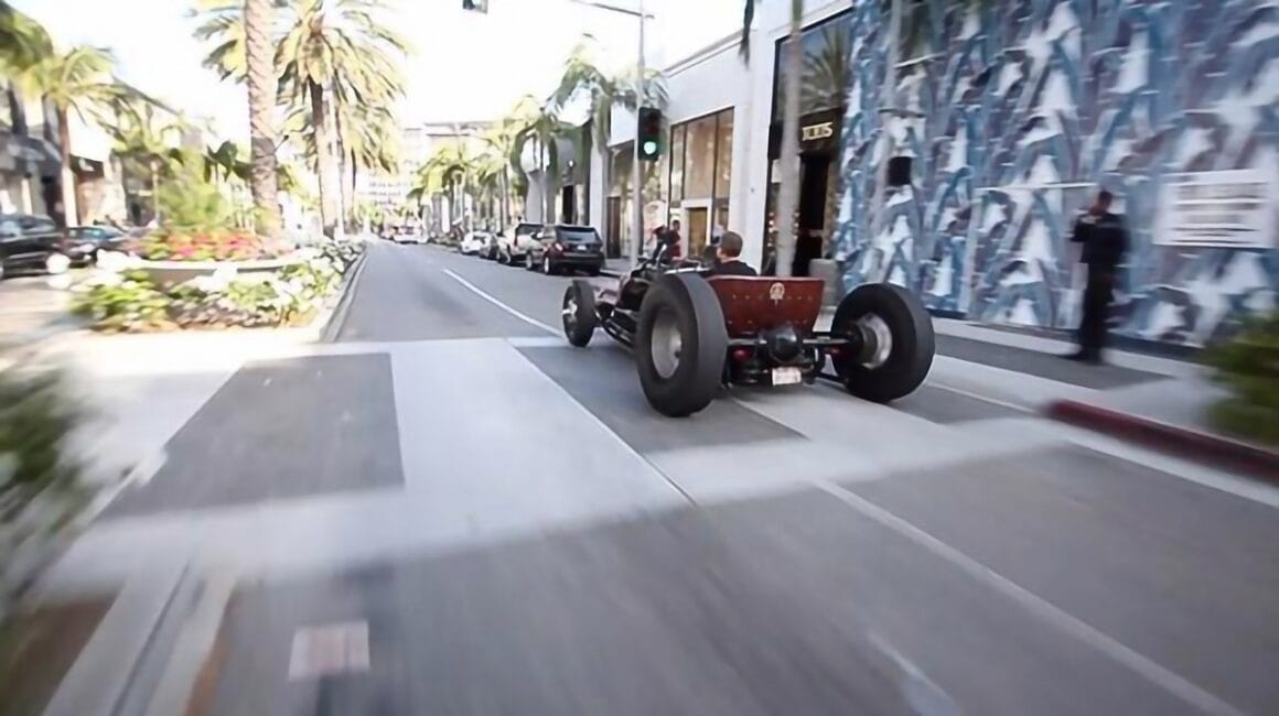 C’est ça la ligne fine entre le génie pur et la folie totale et je suis maintenant sûr et certain que vous devinez de quel côté de la ligne Henry Kessler se trouvait sur le fil, quand il a construit cette chose… Mais ce que vous devez retenir, c’est que ce n’est pas une voiture construite pour les courses sur pistes et qu’elle ne va pas aller se perdre à 80 miles/pm sur l’autoroute de Los Angeles… le but et la seule mission de cette voiture ayant été que Henry Kessler puisse faire le pitre pour une croisière au soleil dans la grande foule d’Hollywood Boulevard, à la recherche d’une Bugatti Veyron pour faire “Hip-Hop” avec les amortos gonflables… Après avoir tourné la vidéo, la bagnole a été remisée dans le garage en attente d’un pigeon capable de croire que cet engin “C’est de l’art” et capable de payer en conséquence ! En Allemagne, en France, en Belgique, bref dans toute l’Europe, vous finiriez probablement en prison si vous mettiez une voiture comme ça dans le trafic !