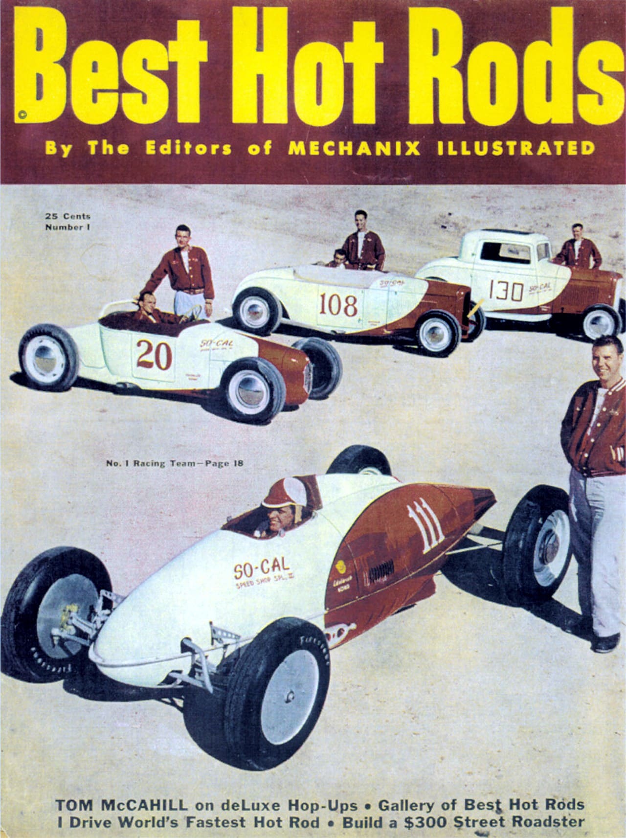 Les voitures ont mené directement à la réalisation d’un catalogue de pièces qui, lorsqu’elles sont ainsi revenues à leurs racines de course de lacs-salés, ont pu être annoncées comme “Hot-Rod-Parts-Tested-at-200MPH”... ». Il n’y avait pas beaucoup de concurrents qui pouvaient honnêtement dire la même chose ! “SO-CAL” a explosé ses ventes ; des franchises ont été vendues et sept boutiques “SO-CAL” ont été ouvertes à travers le pays.