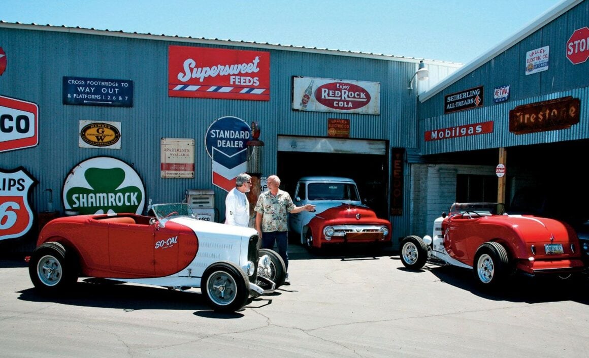 Pendant ce temps, à l’Est sur l’autoroute 210, dans la ville de Temple City, deux jeunes Hot-Rodders se sont réunis en 1973 et ont formé Pete et Jake’s Hot Rod Parts. Pete Chapouris et Jim ‘Jake’ Jacobs ont eu un énorme succès, avec leur Pete’s’34 Coupe jouant dans un téléfilm “The California Kid”, leur petite entreprise était ainsi à la télévision, attirant ses stars telles que Jeff Beck et Billy F Gibbons de ZZ Top qui se sont fait construire l’Eliminator rouge du clip.