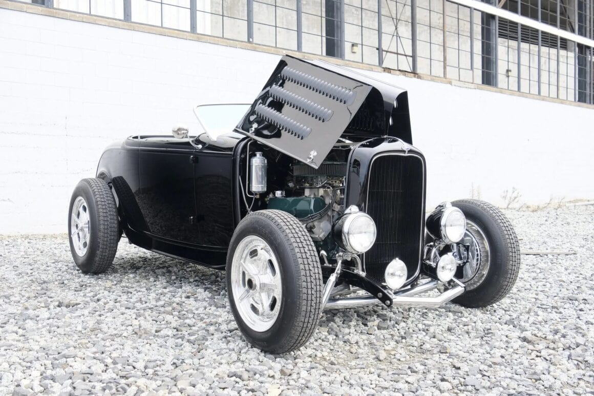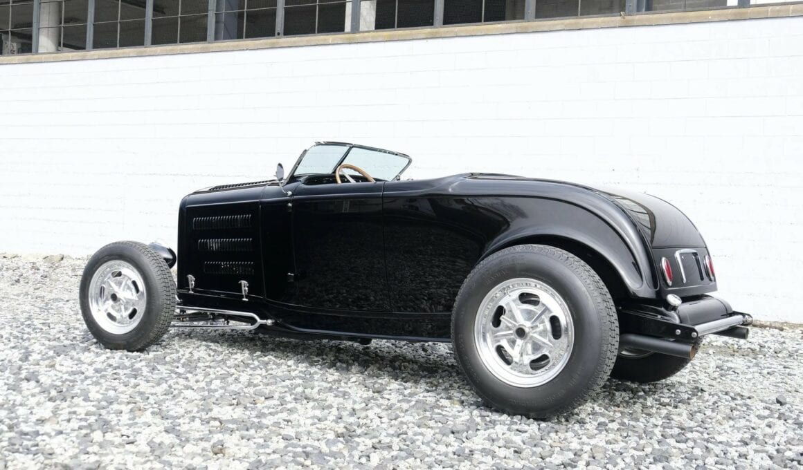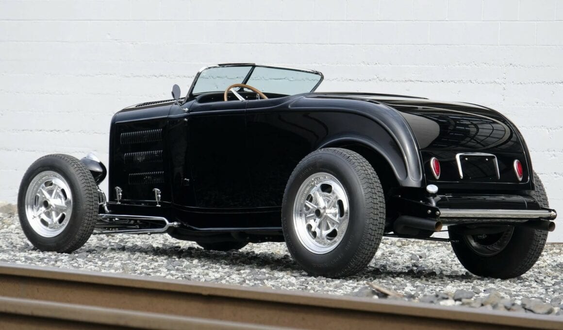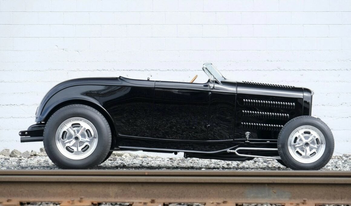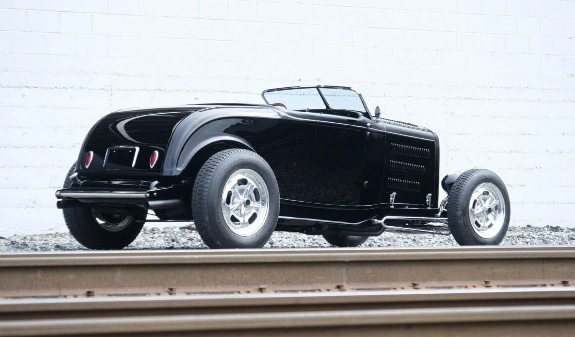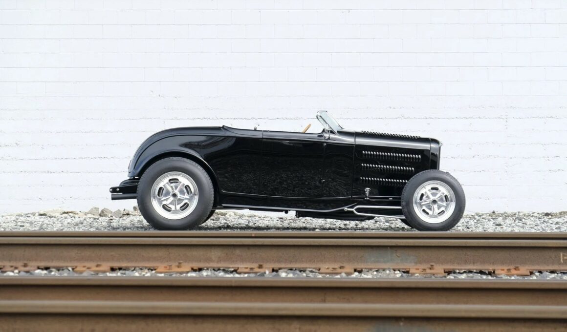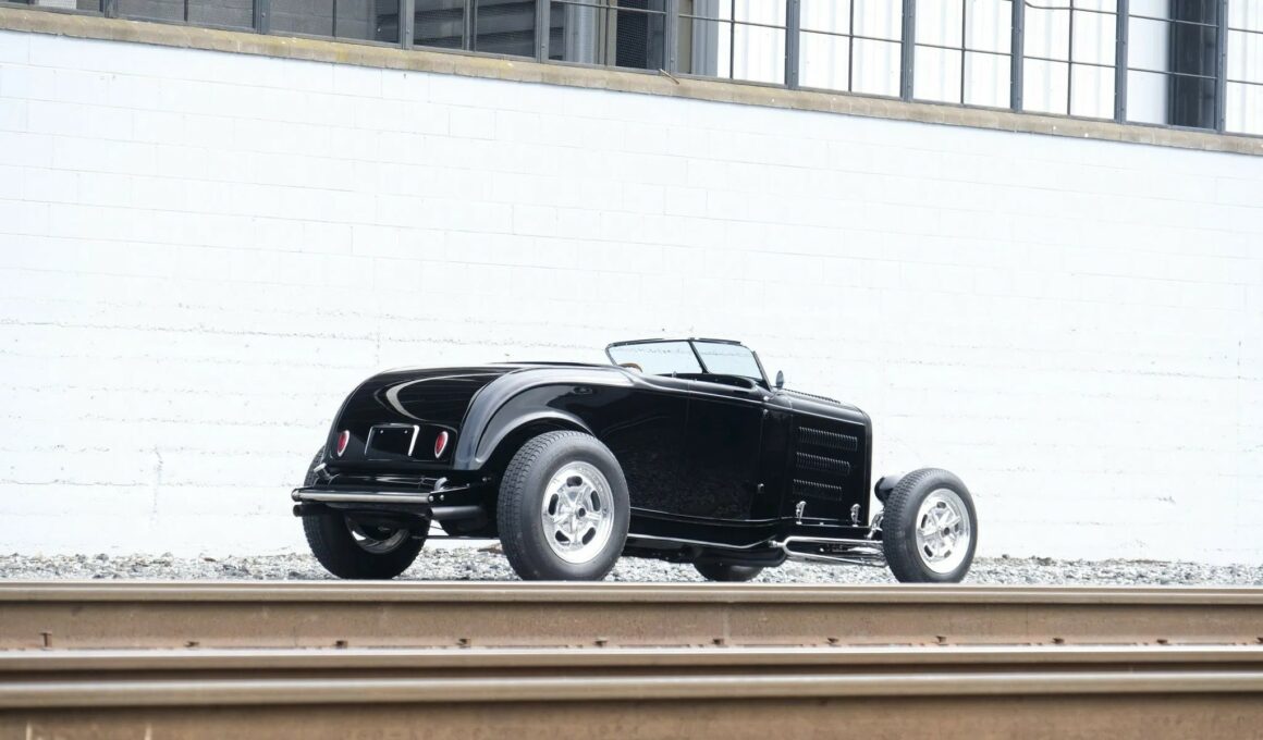 Ce Hot-Rod SO-CAL’1932 Ford Speed-Roadster a été construit sur mesure par SO-CAL Speed Shop au début des années 2000 en utilisant une carrosserie Brookville Roadster en acier sur un châssis SO-CAL Speed Shop équipé d’un V8 Hord 302ci construit par Doane Spencer couplé à une transmission manuelle à quatre vitesses T-10. S’inspirant du design de la Ford Roadster de 1932 de Doane Spencer, la voiture est finie en noir et dispose d’un intérieur vert foncé personnalisé par Gabe’s Custom Interiors ainsi que d’un toit souple amovible noir.