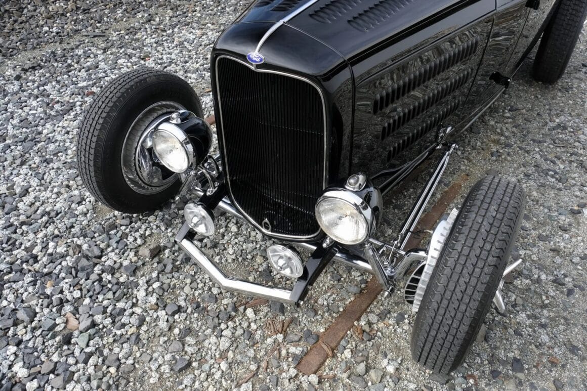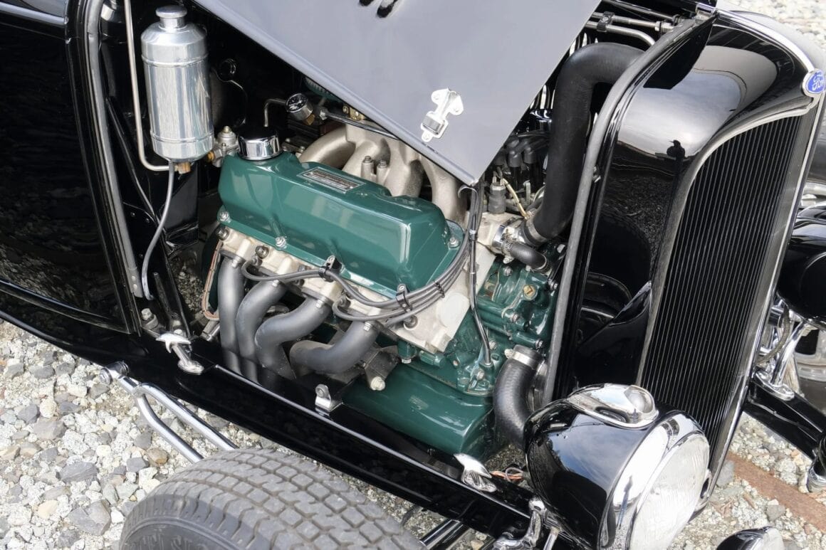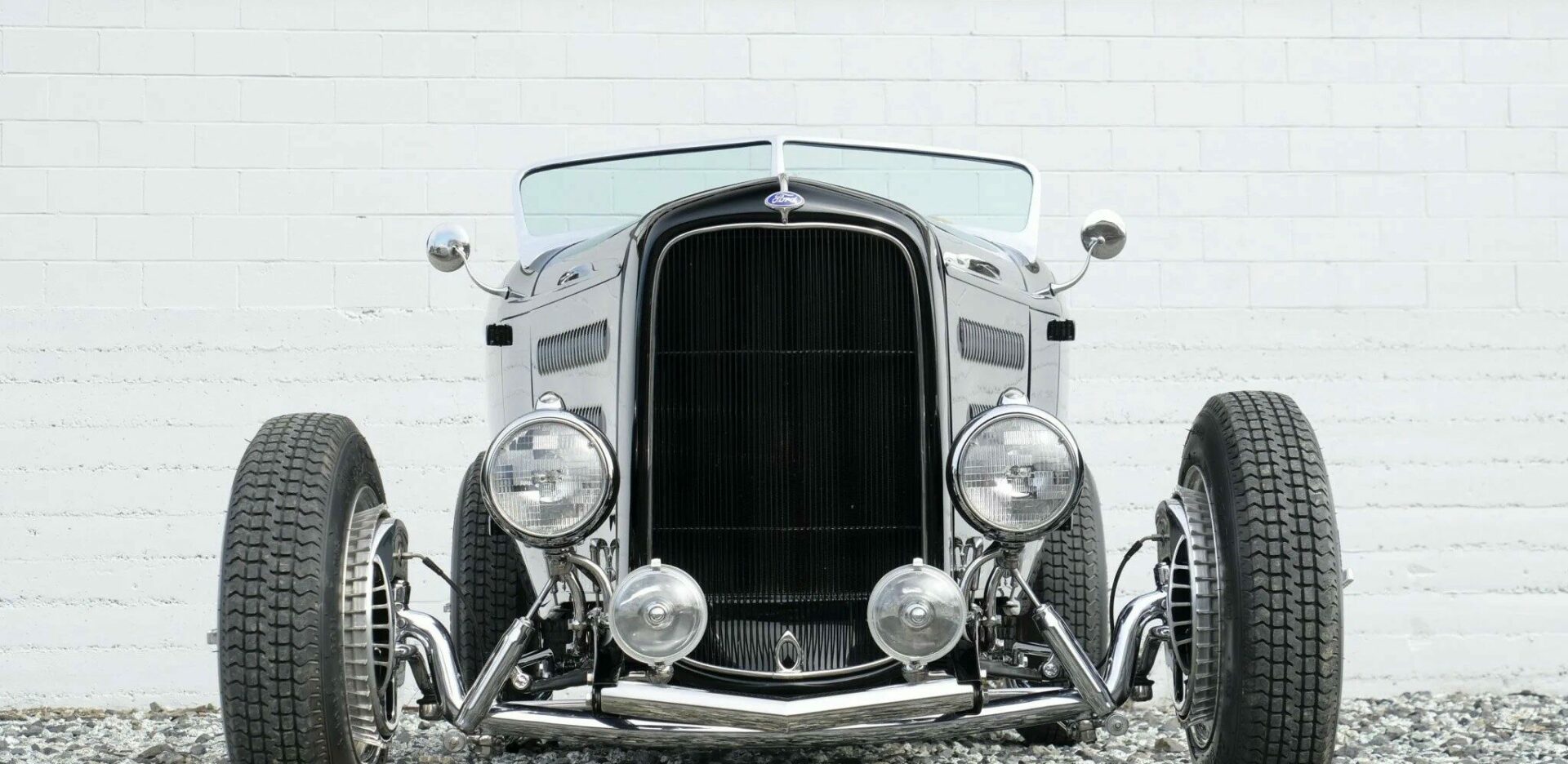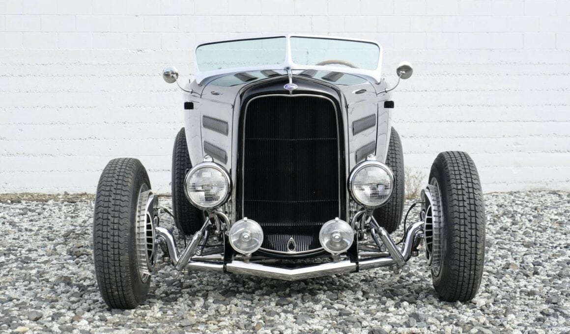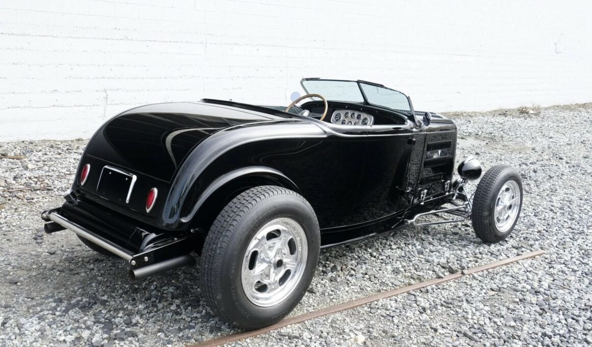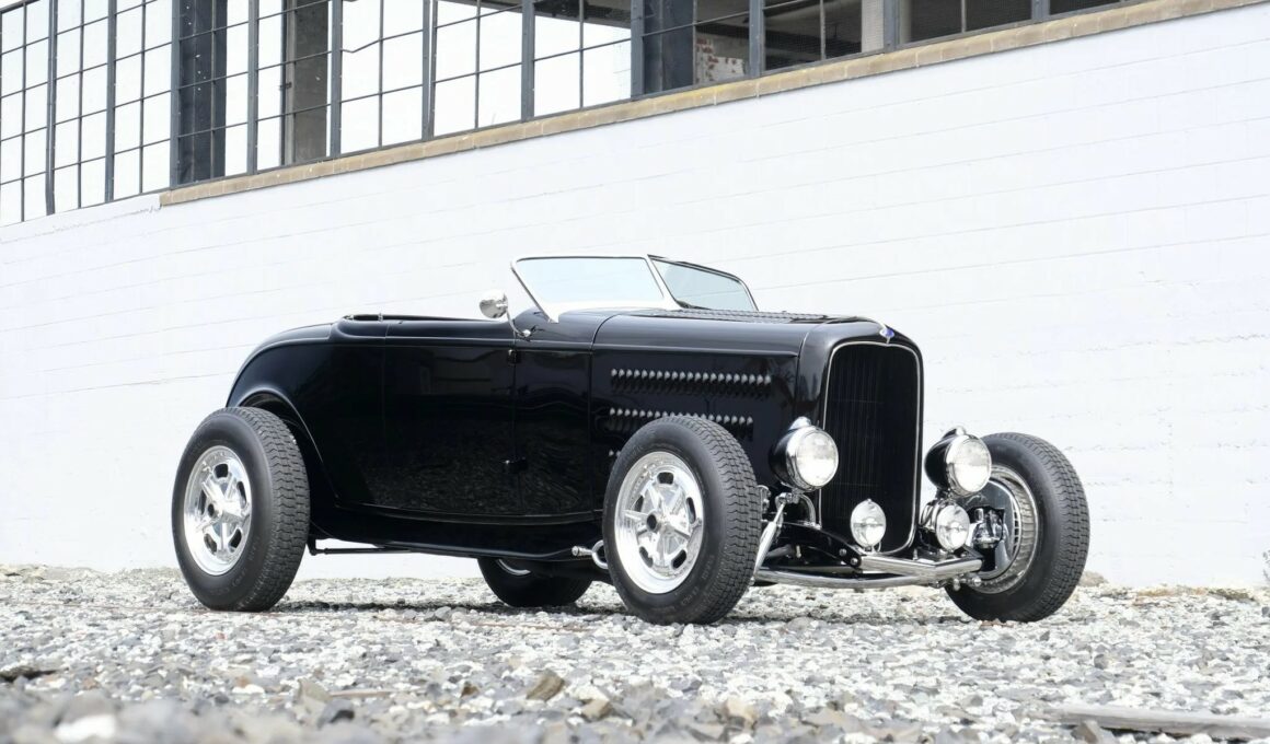 Ce Hot-Rod SO-CAL’1932 Ford Speed-Roadster a été construit sur mesure par SO-CAL Speed Shop au début des années 2000 en utilisant une carrosserie Brookville Roadster en acier sur un châssis SO-CAL Speed Shop équipé d’un V8 Hord 302ci construit par Doane Spencer couplé à une transmission manuelle à quatre vitesses T-10. S’inspirant du design de la Ford Roadster de 1932 de Doane Spencer, la voiture est finie en noir et dispose d’un intérieur vert foncé personnalisé par Gabe’s Custom Interiors ainsi que d’un toit souple amovible noir.