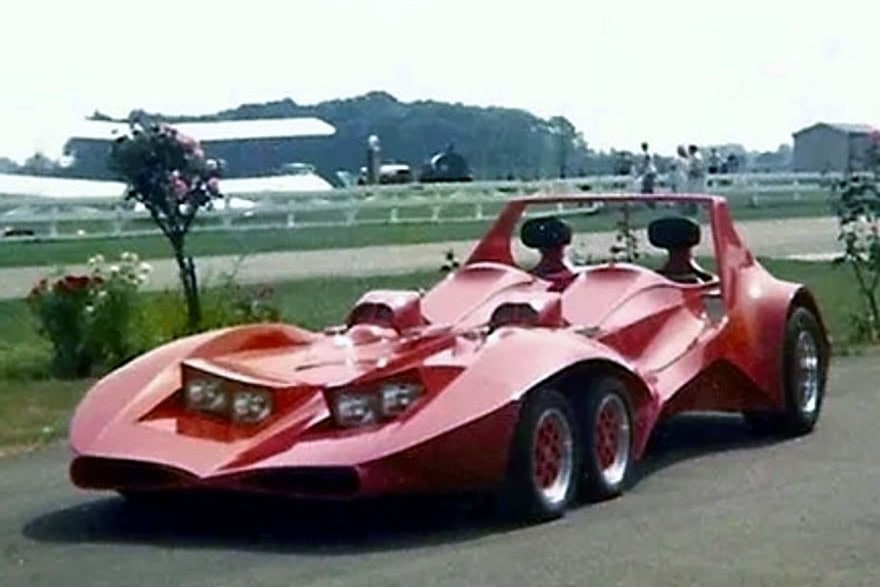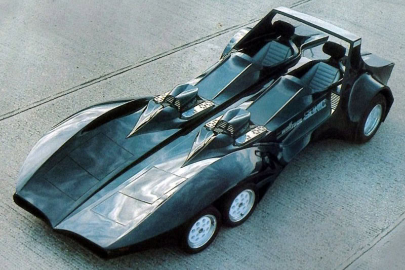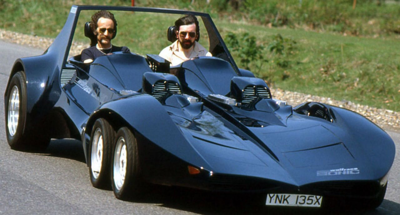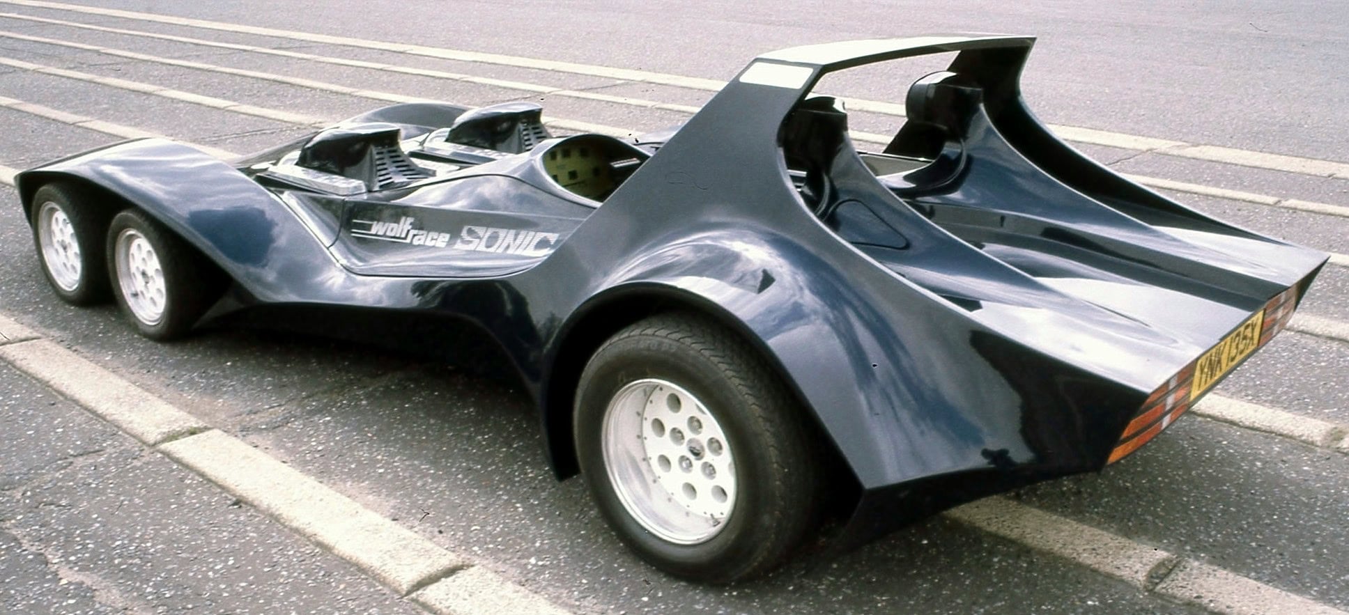 Un Space Road six roues motorisé par deux V8 Rover 3L5a été conçu et construit par Wolfrace pour mettre en valeur une conception de jantes “Sonic” début des années ChromesFlammes qu’étaient les Eighthies (les années’80). Il était le calque des créations de Georges Barris et pas grand monde des gens de presse automobile n’arrivaient à classifier “la chose” car totalement hors de la culture classieuse des automobiles qui n’avaient que Ferrari en tête.