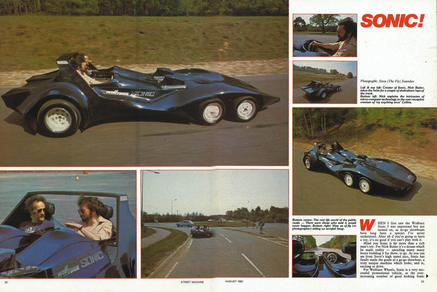 Mais le coût final a grimpé à environ 75.000 £, quoique d’autres sources disent que 100.000 £ était plus proche des réalités en raison de la complexité de l’engin qui a été présenté lors de salons d’automobiles classiques et Kustom’s pour générer de la publicité. Le Wolfrace Sonic a donc eu la première gloire de la couverture et d’un article avec haut de couverture dans mon magazine Chromes&Flammes N°22 de février 1982…