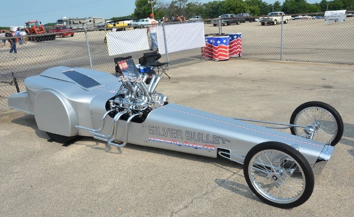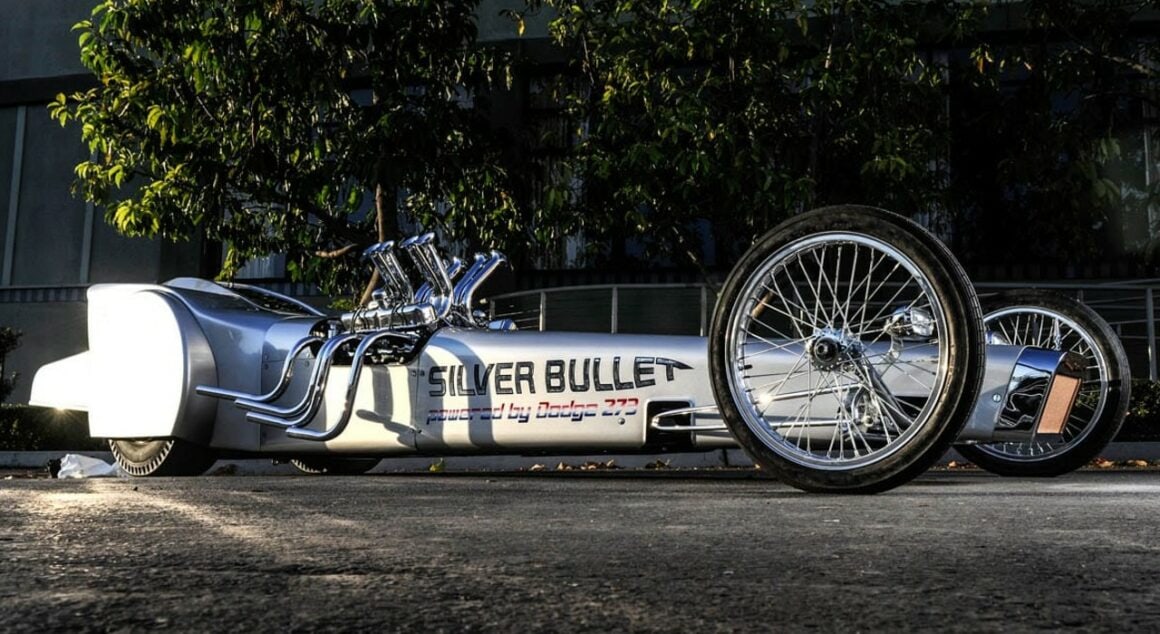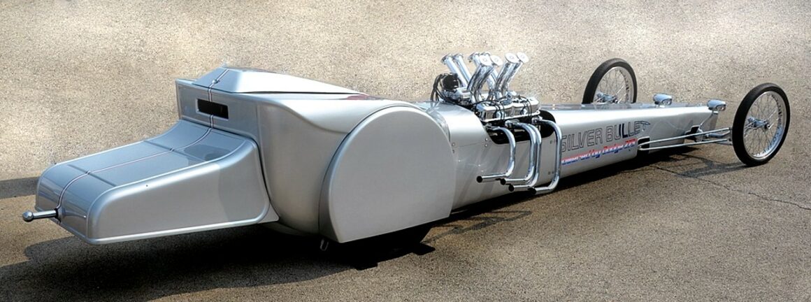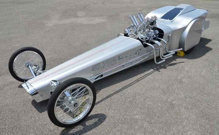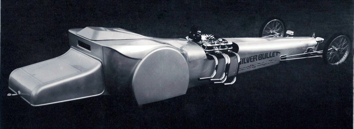 Traditionnellement, une Silver Bullet est une balle d’argent qui seule peut tuer un loup-garou. On pénètre là dans la lycanthropie un mot qui vient du grec lukos qui signifie loup et de antropos qui signifie l’homme. Papoter de la Lycanthropie, éloigne de la Dragstermanie qui est le sujet de cet article, qui concerne cet ancien Dragster des années ’50 qui se nomme “Silver Bullet” et n’a jamais eu la vocation de se mêler au mythe des loups-garous qui ont été bien longtemps la terreur de nos campagnes et d’ailleurs, lieux dans lesquels on savait que les sorciers ne pouvaient “se faire loup” que par le secours du diable.