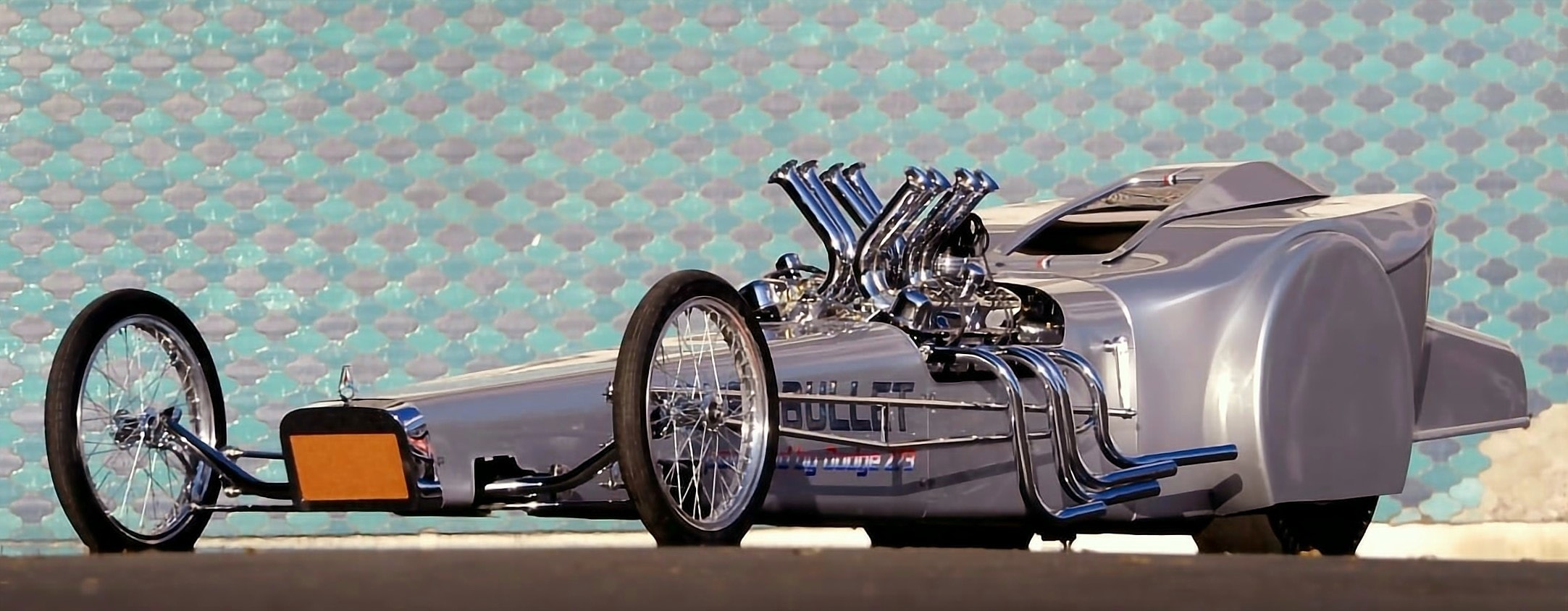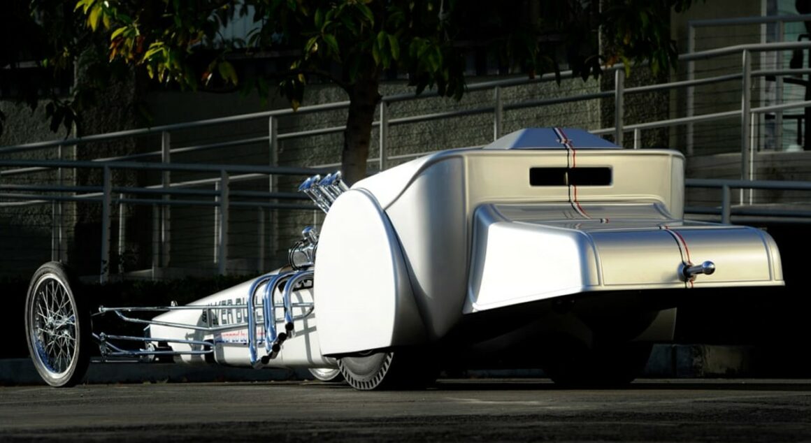 Lorsque nous entendons dans notre nouveau siècle le terme “Silver Bullet”, quelques hommes fous œuvrant dans la publicité, ont programmé notre cerveau pour penser à une “Coors Light”. Ce dragster aide à changer cette vision consumériste. Quiconque lit ce site Web est probablement coupable de dessiner un Hot Rod comme les p’tit’s d’jeunes sur leurs couvertures de livres de lycée ou à l’intérieur de leurs dossiers, mais nous sommes prêts à parier que moins d’un pour cent avaient les compétences nécessaires pour transformer l’un de ces Hot Rod’s en Dragster.