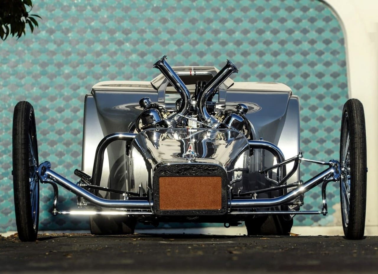Ce moins d’un % c’est Stan Johnson qui a dessiné sa version d’un ultime Hot Roadster modifié. Il avait toujours voulu concevoir un dragster qui ne ressemblait à rien de ce que personne n’avait jamais vu auparavant. Après l’obtention de son diplôme, il a été accepté dans une école de design industriel où il a appris à maîtriser les compétences qui l’aideraient à transformer son rêve en réalité. Le Dragster qu’il a construit avec son frère Tom et sa girlfriend Connie Friedhofer, a été fabriqué sur base d’un châssis Schubeck de 127 pouces incorporant la carrosserie arrière d’une Ford ‘T’.