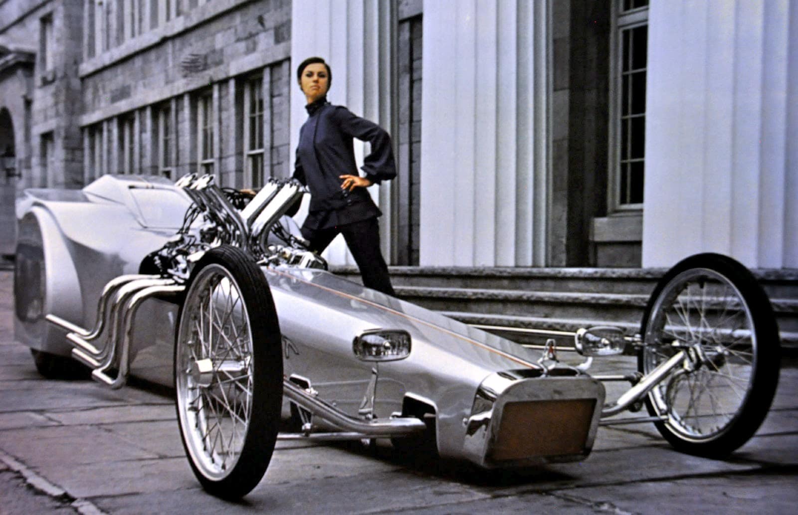 Tout à l’intérieur du cockpit a été fabriqué à la main, y compris le siège, les pédales et le volant. Chrysler a fourni à l’équipe un moteur 273ci tandis que Johnson a réalisé tout le reste ainsi que l’assemblage qui devait avoir un look unique. Beaucoup pensaient que le Dragster futuriste était conçu pour le spectacle, mais Johnson leur a prouvé qu’ils avaient tort quand il l’a amené, hors de la remorque, sur un Dragstrip et a écrasé la pédale d’accélérateur. L’engin répertorié comme étant “Un Coupé de compétition” a couru en B/Gas et a établi un record en 1966 avec 10,37 à 142,85 mph à Great Lakes U.S.30 Dragway.