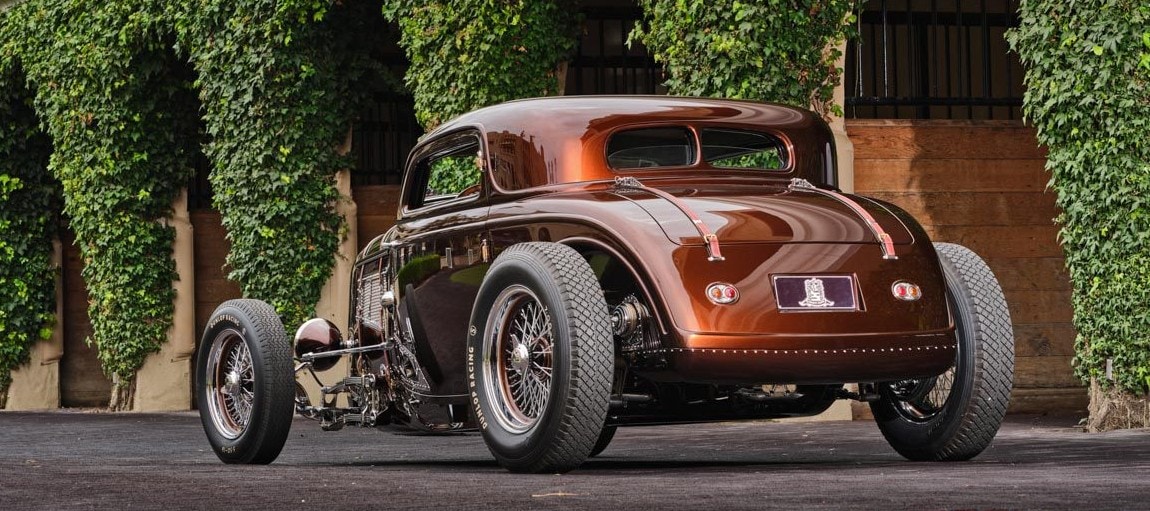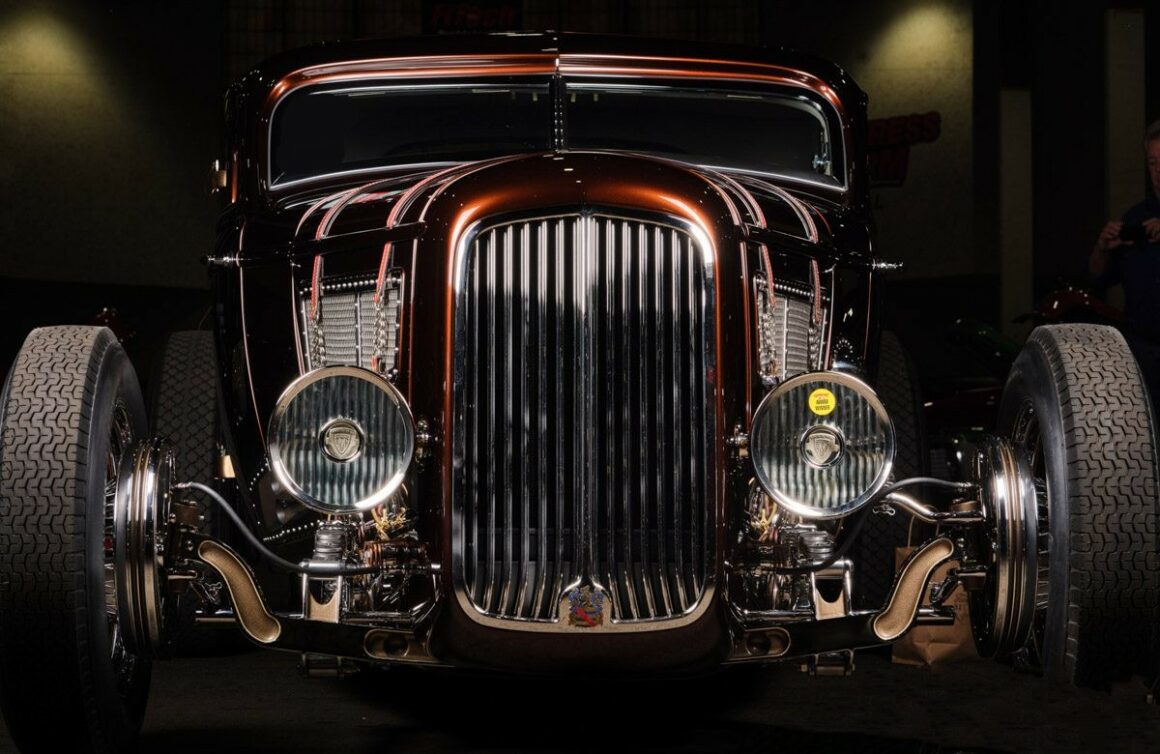 L’hippodrome historique était l’endroit de cette quasi fête foraine finement conçue et construite par le club Hollywood Hot Rods. Celui-ci qui semble en bronze appartient au Big-Boss d’un restaurant raffiné en bord de mer. Sa construction a nécessité plus de six ans, le concept remontant à plus de 15 ans lorsque le président des Hollywood Hot Rods, Troy Ladd, s’est réuni avec le designer Eric Black pour imaginer un Hot Rod spécial…