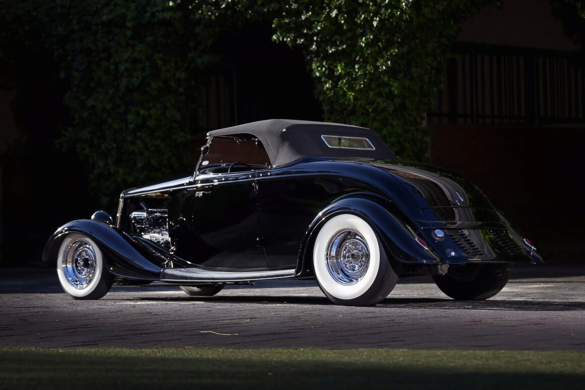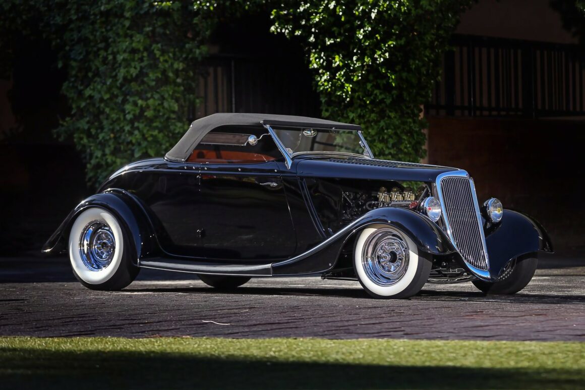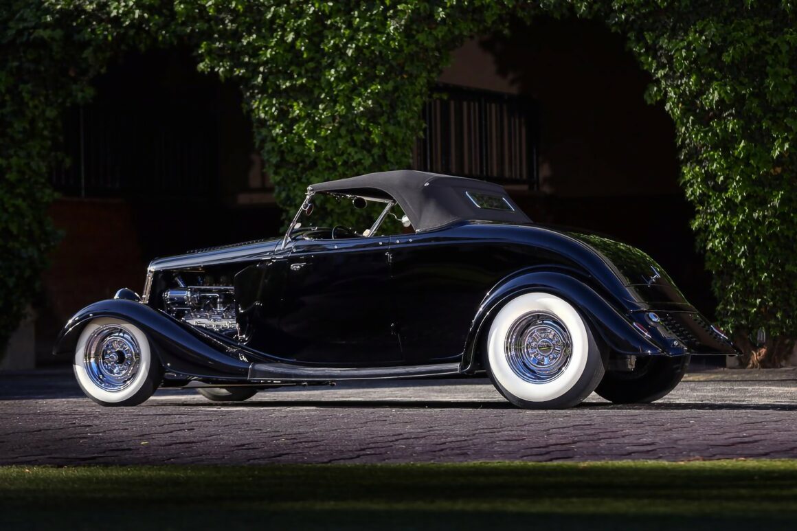 Certaines plus que certains, quoique d’entre nous, espèrent laisser une sorte d’héritage lorsque le temps sera arrivé à terme, terminé. L’oubli étant atténué par l’héritage, mais quel héritage donc découvrir dans les noirceurs déshumanisées ? Croyez-vous heureux qui hérite d’un terne et révolu Hot Rod, alors qu’imaginant des chromes brillants et un moteur flamboyant capable de retourner le monde ? C’est le croquis tapoté que j’en ai, déçu et désabusé… Si encore c’était spectral, avec du sexe débridé, des flashs Punk’s tarabiscotés et une musique d’Opéra, tel Wagner, la fin des temps… Plus approprié… Ce Roadster Ford’34 que Dale Withers avait commencé à construire il y a plus de trois décennies, qui a récemment été terminé en sa mémoire par Ramin et Karla Younessi et l’équipe de Ron Jones Garage, se confond avec un enterrement lugubre et fait craindre d’être aspiré dans le néant.