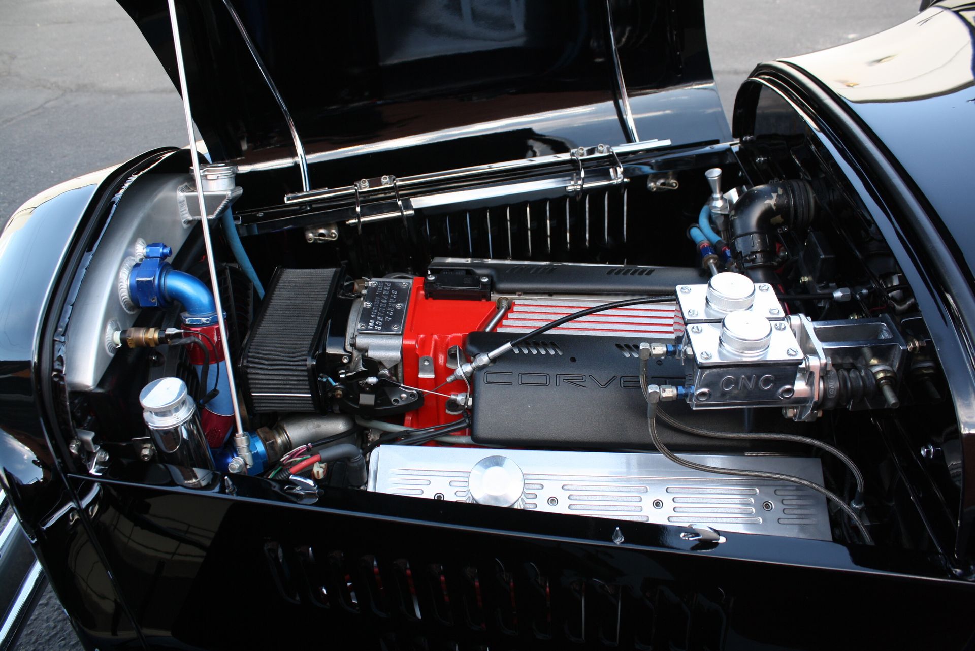 Le pare-feu a été déplacé vers l’avant pour plus d’espace pour les jambes. Le moteur est un V8 Chevy Corvette LT4 de 5,7 litres, construit par Street and Performance à Mena, Arkansas. La voiture est de qualité spectacle avec une excellente peinture entièrement poncée et polie avec une finition miroir. L’ancien est comme de l’or pour les vieux Hot Rodder’s, mais parfois, il est difficile de résister à l’attrait des nouvelles technologies. La climatisation, la suspension indépendante, la vectorisation du couple et les sièges chauffants sont bien meilleurs que la nostalgie.