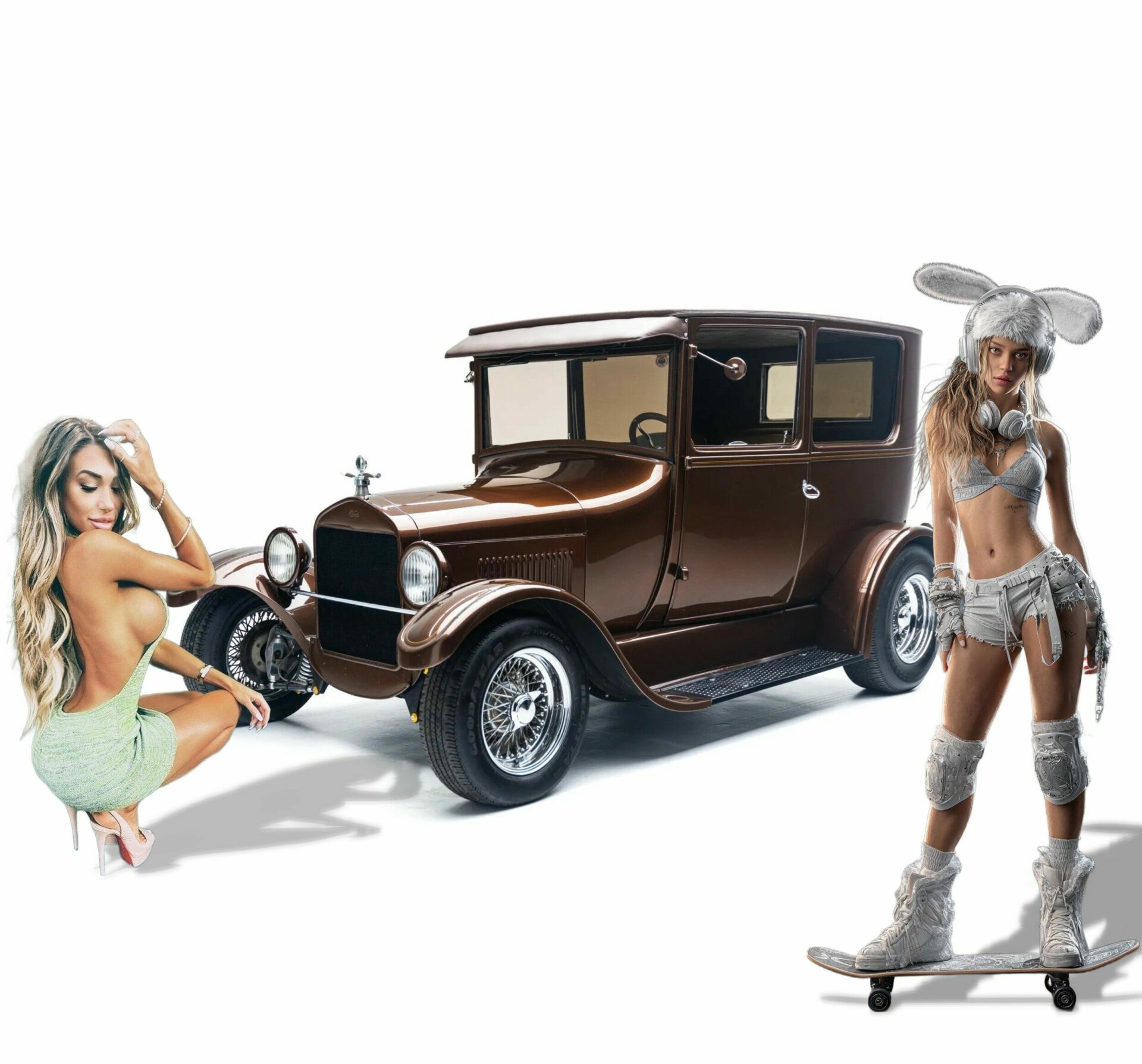 Un complément déjanté nommé : “Autos très différentes de valeur et d’usage”… Et si on poussait le délire jusqu’à imaginer une Bugatti Veyron qui ne démarre que si on lui récite l’intégrale de Nietzsche en morse ? Une voiture qui, à chaque démarrage, demande : “Etes-vous prêt à affronter l’inutilité transcendante de votre pitoyable existence à 400 km/h ?”... Pendant ce temps, ma Smart Brabus, elle, se prend pour une philosophe stoïcienne. Elle roule lentement, mais elle médite. Elle ne consomme presque rien, mais elle m’offre des réflexions profondes sur le sens du déplacement. Elle me dit : “Je suis petite, mais je suis libre. Je suis lente, mais je suis lucide”… Et le Hot Rod Ford Model T’26, lui ? C’est un totem roulant, un artefact sacré. Il ne roule pas, il flotte dans l’espace-temps. il est le fruit d’un rêve de John Buttera, un rêve où les pistons chantent du jazz et les suspensions dansent le tango. Il ne se conduit pas, il initie… Et maintenant, avec cet article, ça va être autre chose : vous allez entrer dans l’univers parallèle des véhicules absurdes !