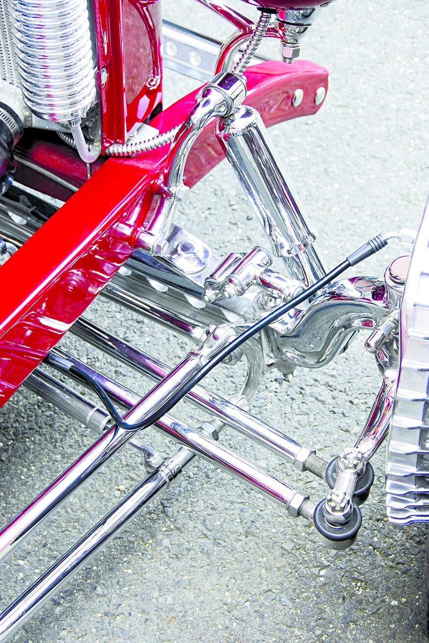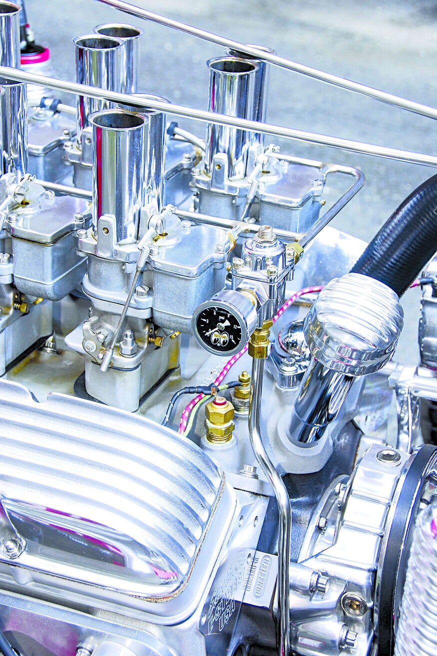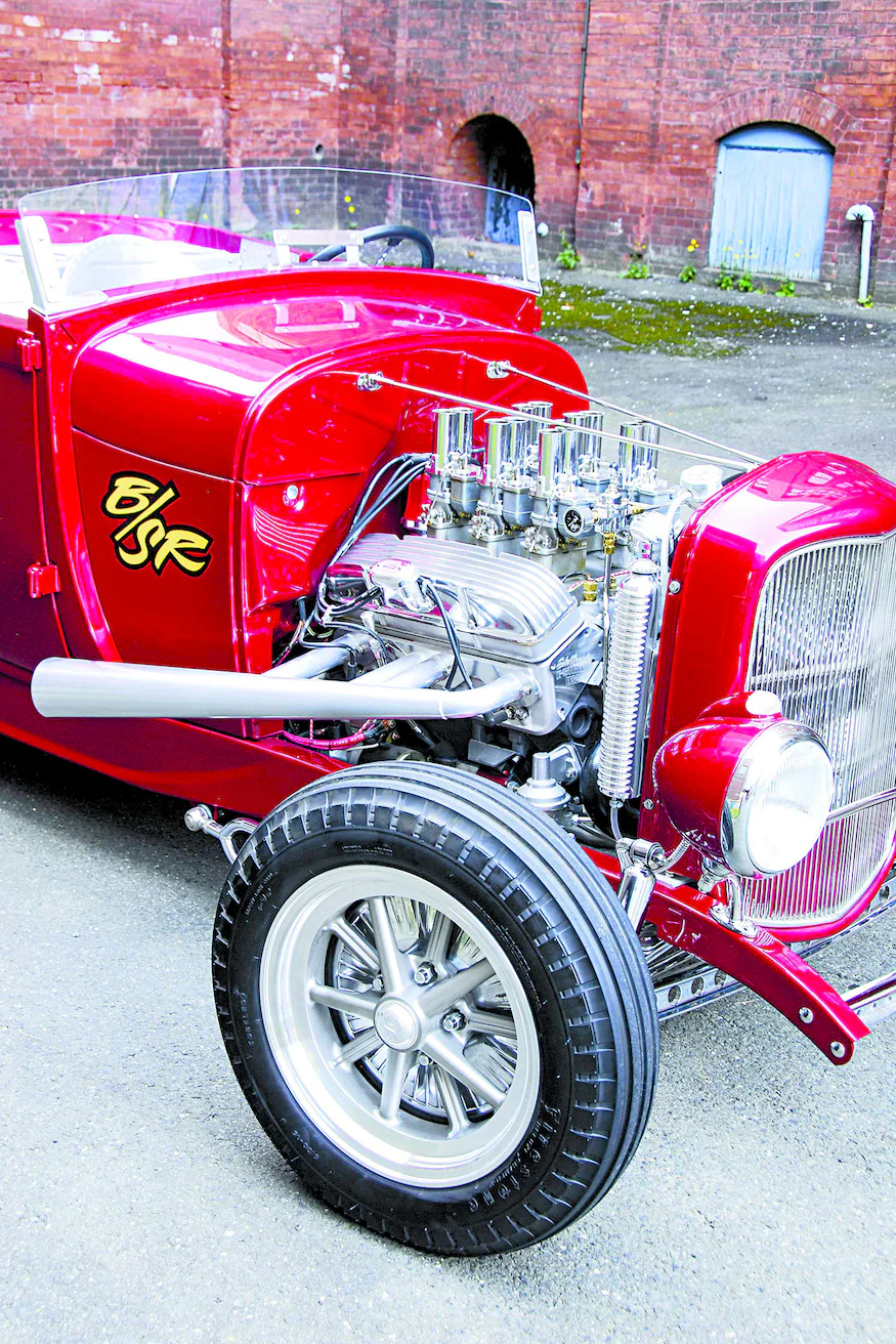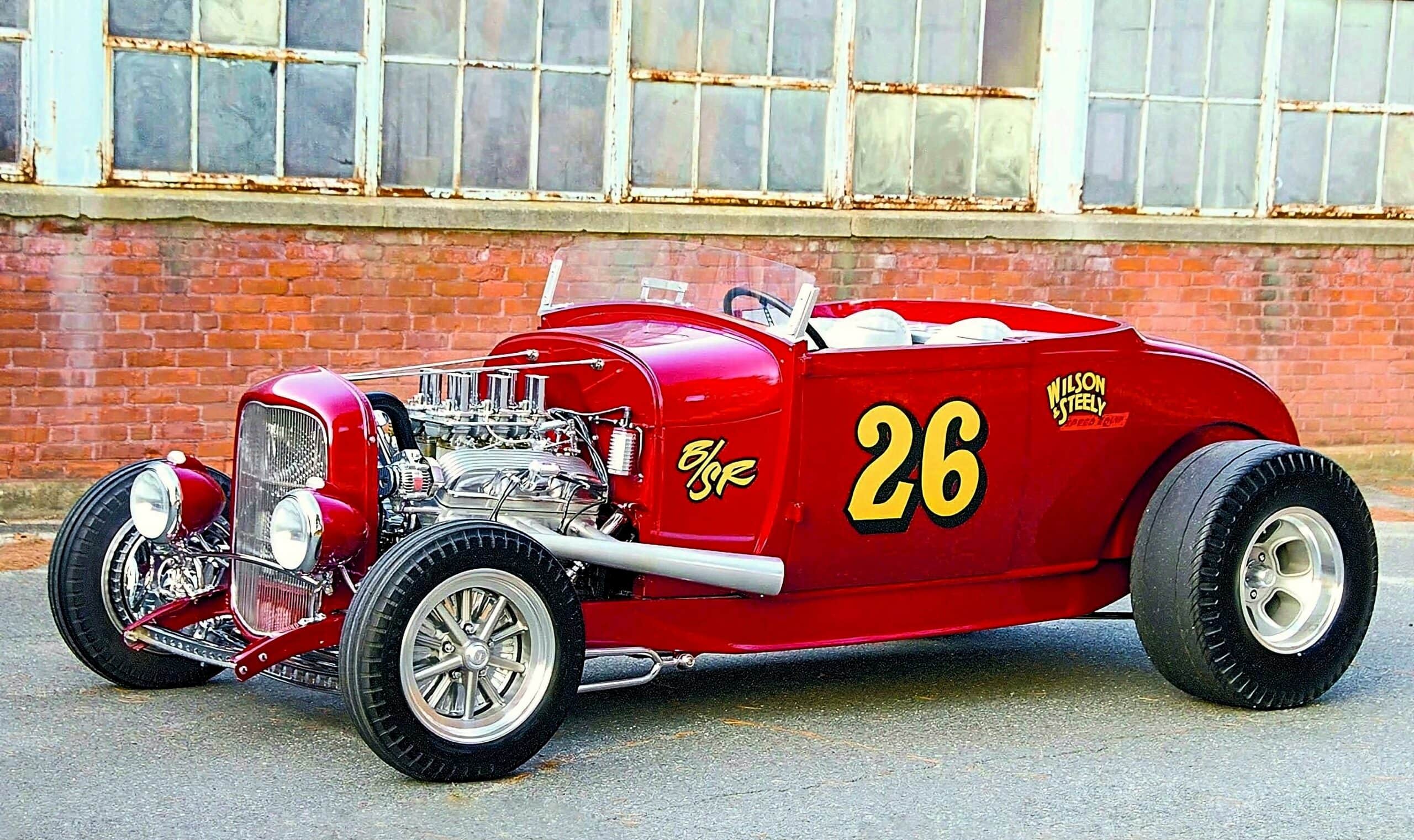 Il a finalement été conduit dans un garage voisin où une carrosserie de coupé sport Ford 1929 était cachée sous un kilomètre de poussière. Après un rapide essai, Steve a conclu un accord et a ramené la voiture à l’atelier. Steve a contacté Wheeler Power Products à Jacksonville, en Floride, pour leur acheter l’un de leurs robustes V8 à petit bloc Chevy. Il a ensuite travaillé avec Bob Mahoney de Nashua, New Hampshire, pour améliorer le moteur en ajoutant des culasses en aluminium Edelbrock, une prise d’air Offy à six points et un escadron de carburateurs Stromberg de la série 97/Scott. Pour déplacer la bête, une boîte automatique Turbo 350 modifiée par Performance Automotive de Frederick, dans le Maryland, mène à un arbre de transmission personnalisé. En ce qui concerne la carrosserie, Steve avait beaucoup d’idées.