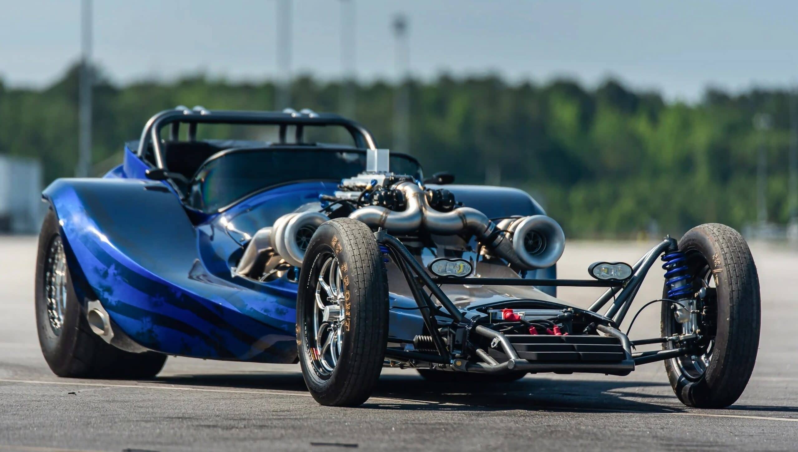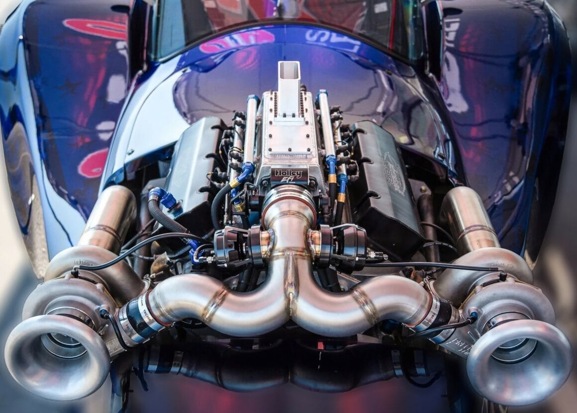 C’est ainsi qu’une paire de turbos surnommés “escargots”, ont été offerts et c’était la toute première paire de turbos en miroir produite et positionnes devant le moteur, aidant à produire les 2.600cv (estimés) si on le laisse chanter son répertoire au complet. “ProFab”, situé juste en bas de la route des studios cinéma “ToyMakerz”, a fabriqué le système des 2 turbos et les échappements latéraux qui sortent par la carrosserie. La voiture dispose de toute une gamme de technologies que l’on trouve dans les machines de course de dragsters hardcore, y compris un système de gestion de la vitesse “Davis Technologies Profiler”.