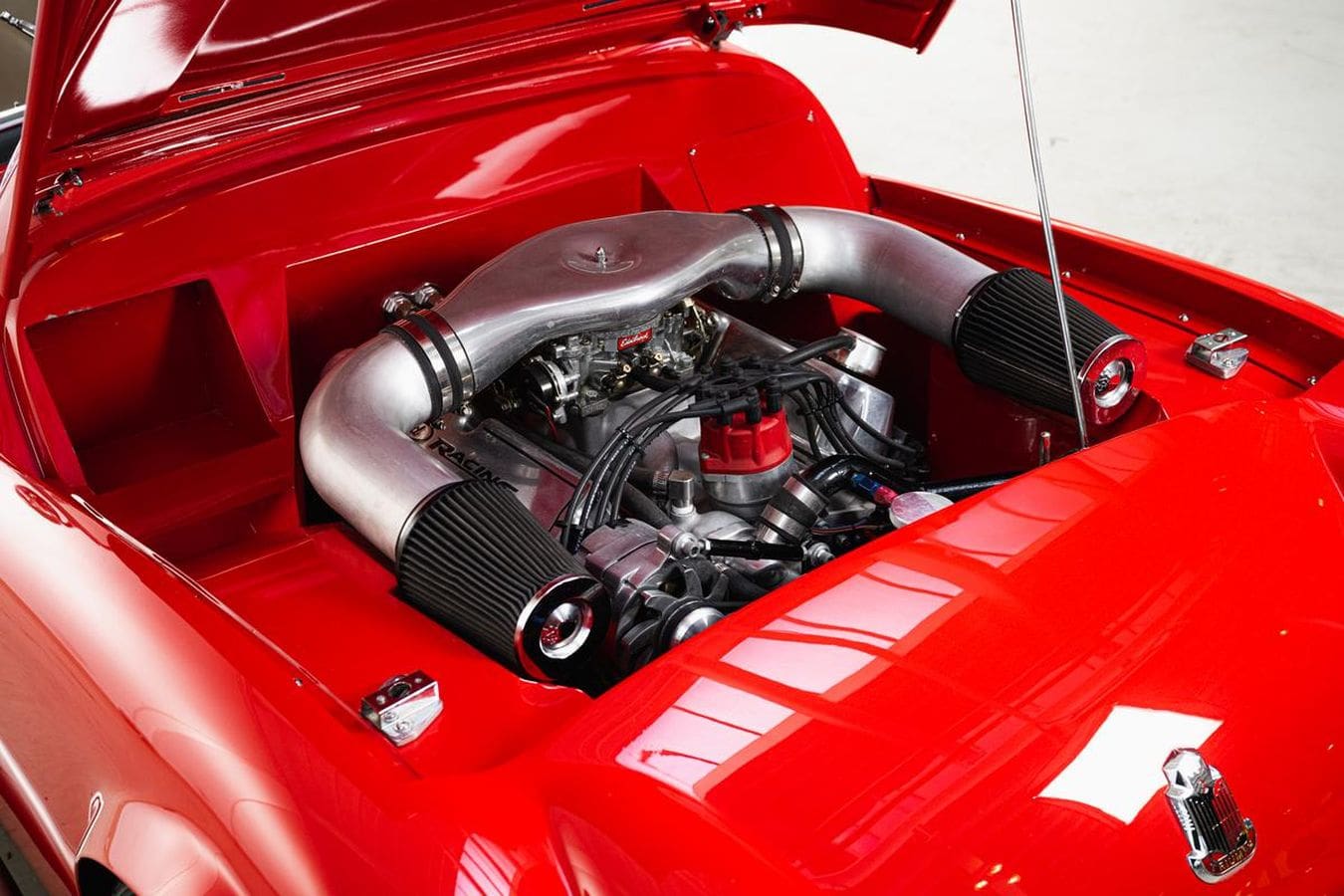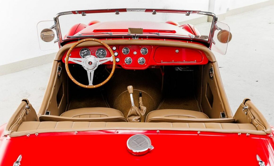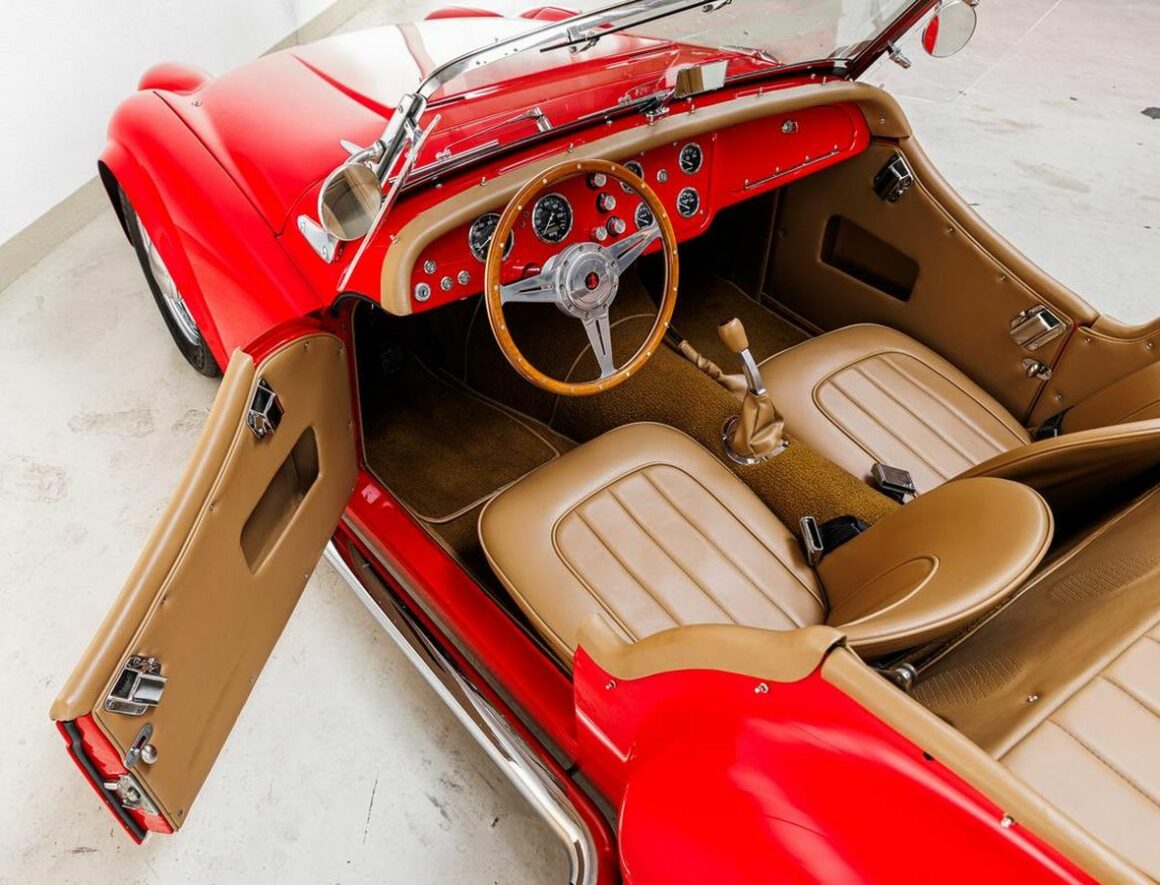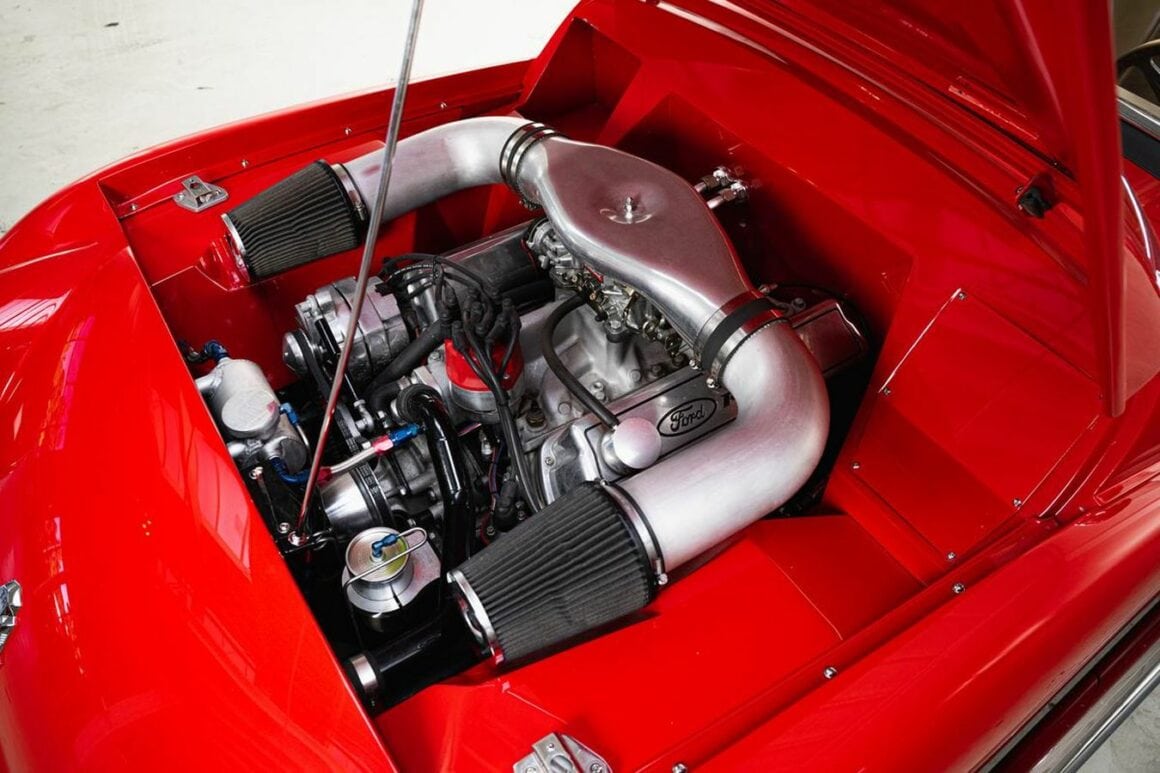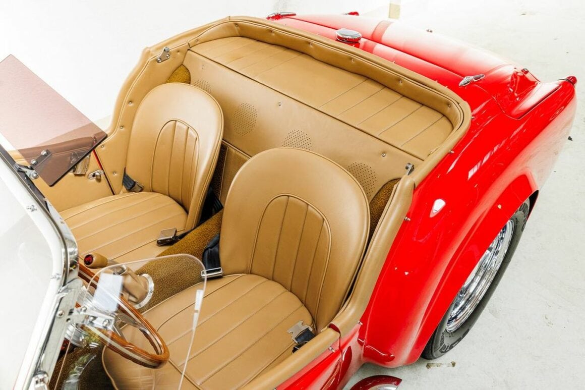 Devenu Hot Rod et n’étant plus une belle vieille petite salope anglaise, il sait comment se montrer. À l’intérieur, c’est comme un bar à cocktails, mais ce Hot Rod TR3 ajoute une touche Funny avec un système stéréo Pioneer et un volant Moto-Lita ainsi que des instruments numériques. Eh bien, cela m’a révélé qu’il n’a pas beaucoup bandé… Sous le capot se trouve un V8 Ford 347ci coiffé d’un carburateur Edelbrock à quatre corps disposant d’une admission personnalisée avec deux faux seins filtres coniques. Avec une boîte de vitesses manuelle très macho (mmmmmummm !) Tremec à cinq rapports et un essieu arrière Currie 9′, ce Hot Rod TR3 est prêt à gommer les pneus et assurer les fonctions érectiles de qui suit les tendances Elyséennes !