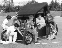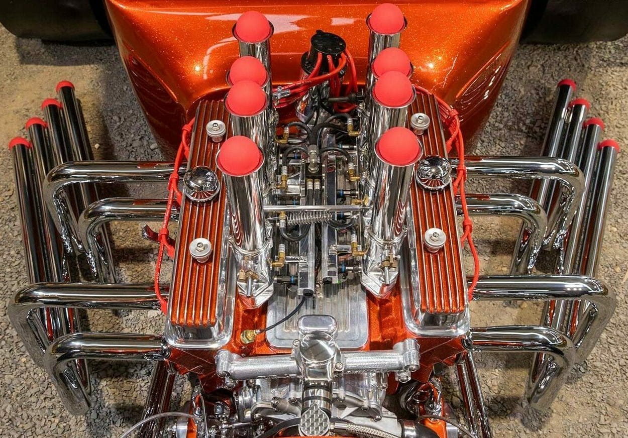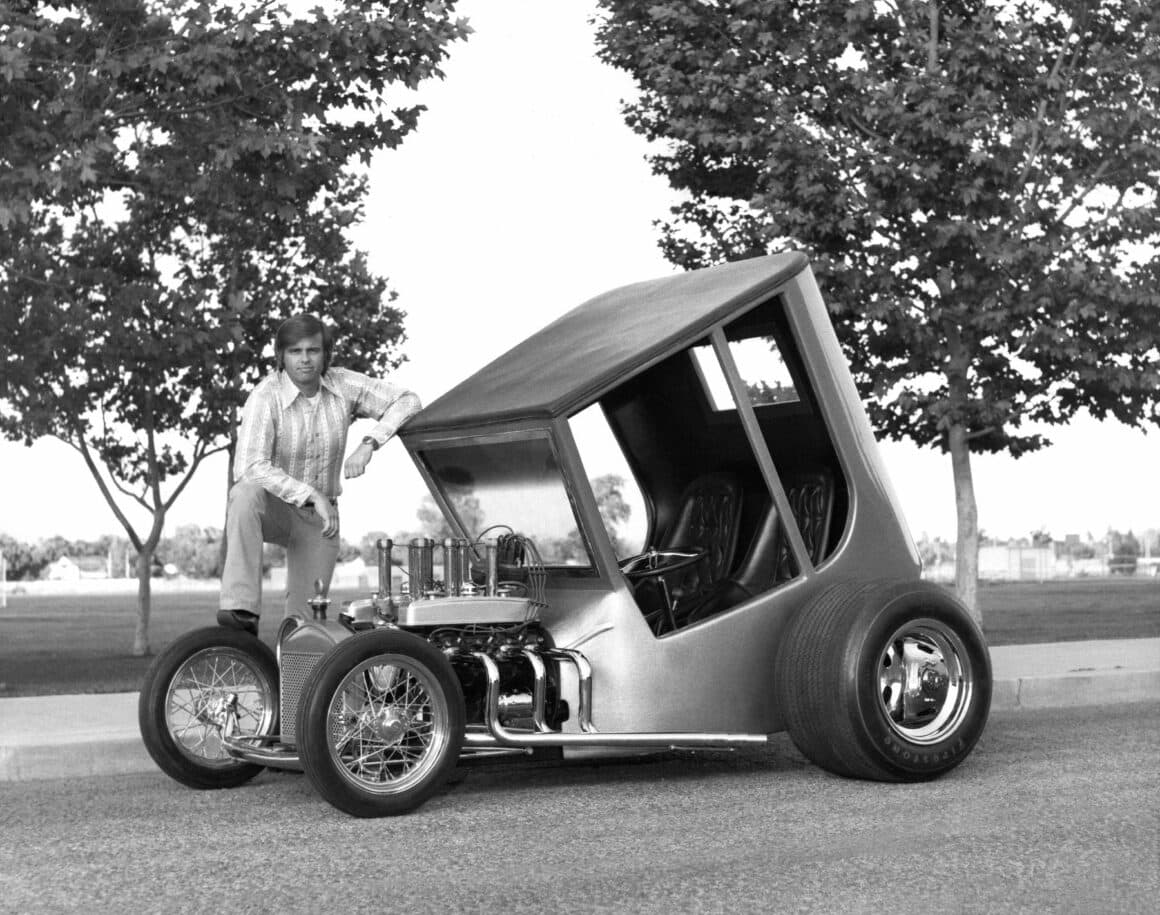 -Ce que j’ai immédiatement vu dans mon esprit, c’est similaire, mais très différent… J’allais à des salons d’automobiles depuis de nombreuses années, et j’étais abonné à plusieurs magazines de Hot-Rodding, et j’avais des idées très précises sur les fonctionnalités que j’aimais et que je n’aimais pas. Chaque fois que je voyais quelque chose qui ne me plaisait pas, je le redessinais dans mon esprit comme je pensais qu’il devrait être et pourrait être, pour être beaucoup mieux. Quand j’ai vu le dessin, et que tout le monde dans notre classe de physique expérimentale avancée a dit que quelque chose comme ça ne pouvait pas être construit, j’ai dit que si on pouvait le penser, on pouvait le créer, j’ai réalisé que c’était une opportunité pour moi d’améliorer de nombreuses fonctionnalités de la plupart des Hot-Rods que je pensais pouvoir, et devrait être beaucoup mieux ; et de construire un Hot-Rod pas comme les autres ! Comme le dit le proverbe : “Le reste appartient à l’histoire”.