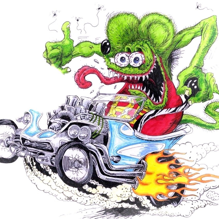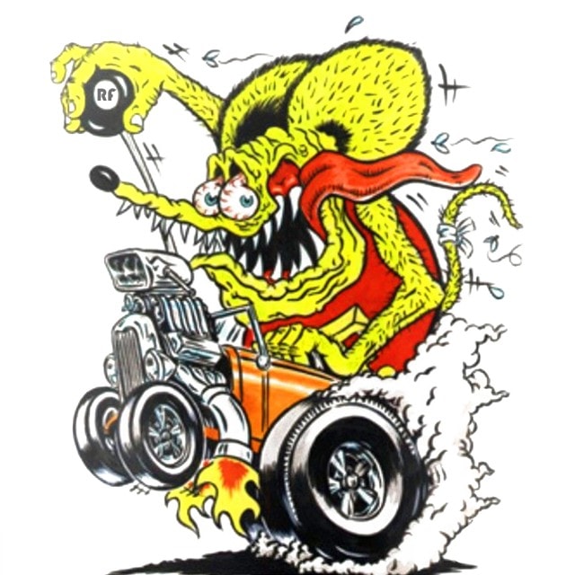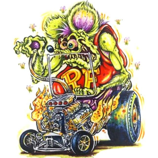 -Ed Roth a réalisé ce dessin nommé “Born Bad” quand j’ai porté plainte contre George Barris après qu’il m’ait giflé à la fin du Winternationals Car Show 1965 dans l’ancien Pan Pacific Auditorium, dans l’ouest de Los Angeles ! Voici les faits ! George Barris était bien connu pour avoir provoqué des situations ubuesques, pompé les créations d’autres, puis poursuivi ces autres en affirmant mensongèrement qu’ils l’avaient copié ! C’était un escroc ! Il avait toujours un ou plusieurs faux-témoins qui venaient appuyer tout ce que Barris disait au tribunal. avec moi ça s’est passé en 1965, mais c’est toujours vivant dans mon esprit. Je peux même voir en tête quels vêtements George Barris portait. Le Winternationals Car Show 1965 venait de se terminer. Je ramenais “The Uncertain’T” qui avait gagné le premier prix. On devait sortir après le show en se conformant aux règles du service d’incendie. George Barris, deux de ses sbires et sa famille d’amis qui avaient payé beaucoup d’argent à George pour reconstruire leur célèbre pick-up à perles blanches nommé “The Ala Kart”, se sont tous approchés et m’ont confronté en groupe dans l’allée latérale. George a commencé à affirmer avec colère que j’avais “embrassé les juges” pour gagner la catégorie Sweepstakes Hot Rod, au lieu de son « “The Ala Kart”. J’ai répondu que c’était ridicule et que je ne savais même pas qui étaient les juges. La propriétaire de ce Pick-Up a alors laissé entendre que George Barris leur avait promis qu’ils gagneraient ! George Barris m’a alors giflé, espérant évidemment que j’étais assez stupide pour riposter! Je l’ai juste regardé fixement et j’ai ri. George n’était pas très intelligent du tout, parce qu’il était très chanceux que je ne sois pas assez stupide pour le laisser me duper en représailles ! Quelqu’un d’autre avec moins de retenue que moi aurait pu lui casser la gueule ! De plus, de l’autre côté de l’allée latérale, à environ 20 mètres, il y avait le bureau du spectacle avec une grande fenêtre face à nous et plusieurs personnes à l’intérieur qui ont tout vu ! Andy Anderson avait été témoin de tout cela à quelques mètres à côté de moi. Andy est toujours un ami aujourd’hui. Gene Obtenez un officier de la police de Los Angeles m’a dit que sa (magnifique) berline Ford 2 portes’34 noire était dans l’espace d’exposition juste à côté de l’endroit où tout s’était passé! Non seulement il était témoin de tout cela, mais plusieurs de ses copains policiers également qui n’étaient pas en service et qui étaient là avec lui. Le nombre total de témoins enregistrés était de 7 policiers de Los Angeles, 8 responsables du salon, et Andy Anderson ! Gene, m’a conseillé quoi faire. Il m’a dit d’aller immédiatement au bureau du spectacle et d’appeler la police pour déposer une plainte, en s’assurant que tout le monde dans le bureau écoutait. Il a déclaré que la police refuserait de porter plainte, affirmant que si personne n’était blessé, il s’agissait d’une affaire civile. Gene a dit que je devais m’assurer que la police enregistrait mon appel pour le compte rendu. Il a dit d’appeler le tribunal de Los Angeles dans la matinée et d’y déposer une plainte officielle et de le faire convoquer (Gene) comme témoin au tribunal. Il m’a donné sa carte de visite. Quand je suis allé au palais de justice, j’ai rapidement été conduit dans un le bureau du juge, pas une salle d’audience. Dans la pièce se trouvaient George et l’un de ses témoins. Le juge m’a fait asseoir sur le côté droit de son bureau et George ainsi que son témoin devant son bureau. Le juge a lu la plainte, puis m’a demandé de raconter ma version de l’histoire. Avant que j’aie fini, George a commencé hurler que je mentais. PLEURAGE! C’était tout ! Affaire classée! Le juge a alors déclaré qu’il m’accordait une ordonnance restrictive permanente contre George, et que si jamais George s’approchait de moi (je ne me souviens pas de la distance), ou me dérangeait à nouveau de quelque manière que ce soit, et que je le signalais, George irait en prison pour m’avoir giflé! Tout cela n’a duré que quelques minutes, car les papiers étaient déjà faits.