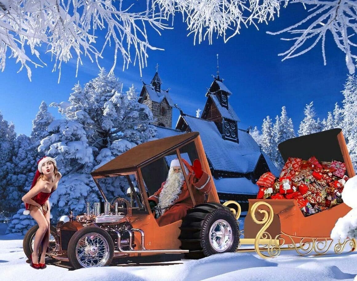 -Que pensez-vous des clones de “The Uncertain’T” ? A ce sujet, voici une photo qui démontre que “Uncertain’T” est peint en couleur or/gold métal, mais aussi qu’existe un kit, car le traineau du pépère -Noël est manifestement une carrosserie “Uncertain’T” !