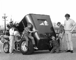 -Malheureusement, il n’y a pas de vidéo à ma connaissance. Quelqu’un m’a dit qu’ils l’avaient vu dans une vidéo de course de dragsters des championnats de Bakersfield en 1965 lorsque j’ai couru sur la piste pour récupérer Don Garlits après qu’il ait remporté la série Top-Fuel, mais personne ne pouvait me dire de quelle vidéo il s’agissait, ni comment l’obtenir. Un ami l’a finalement trouvé et me l’a envoyé, mais ce n’est qu’un clip de 3 secondes !