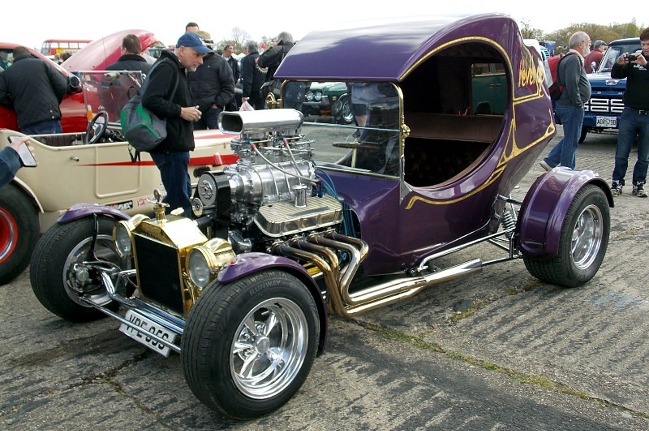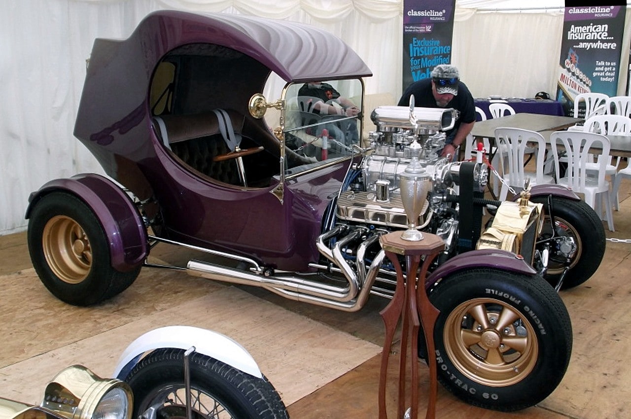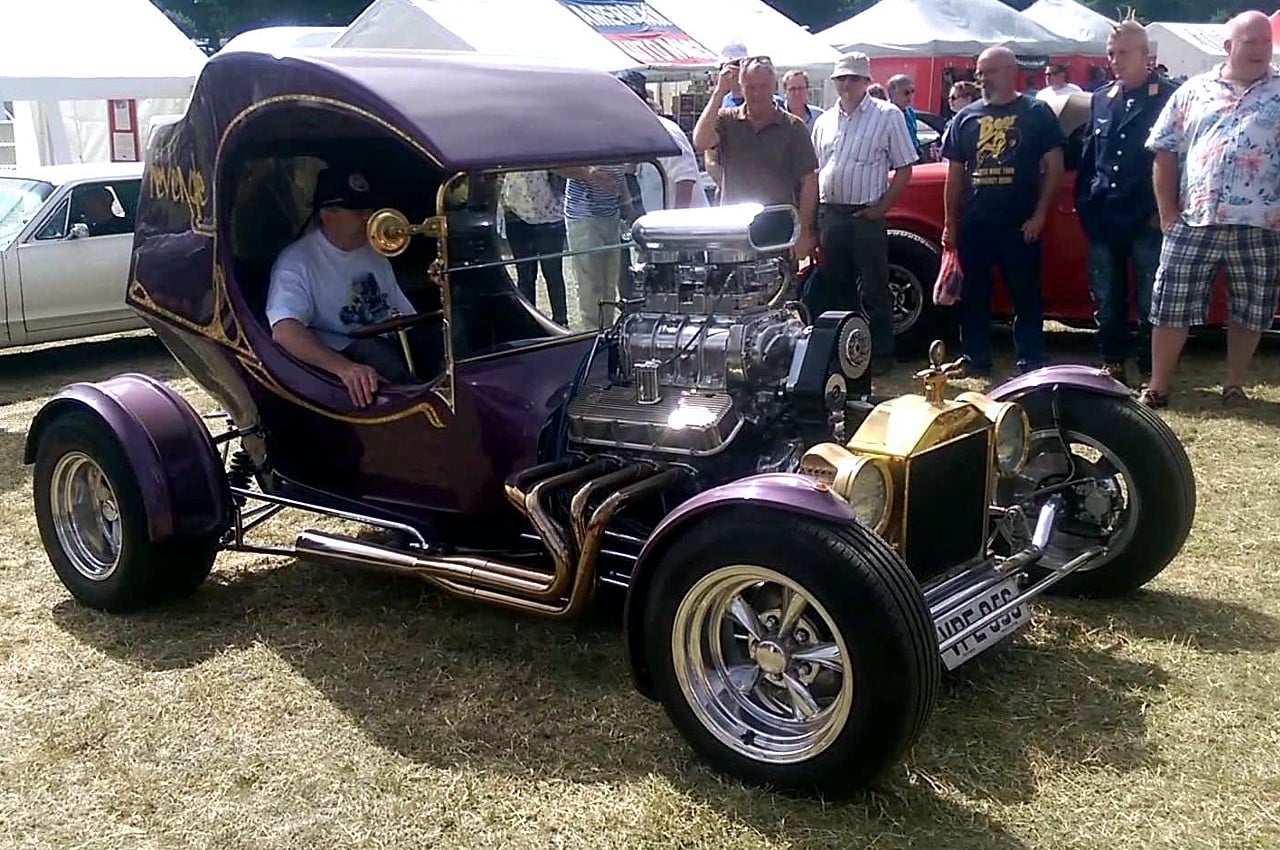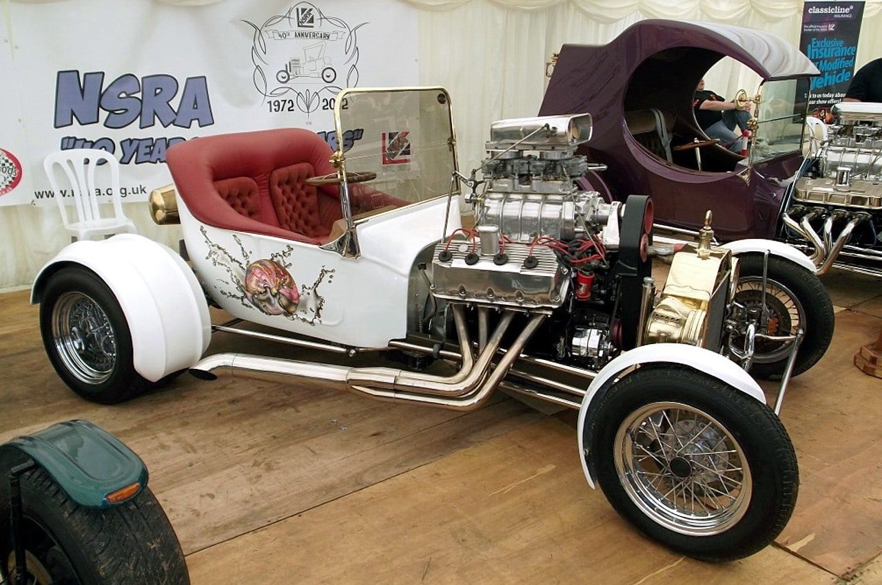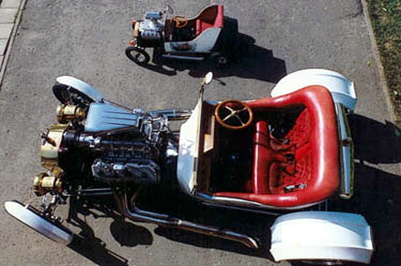 Ce Hot-Rod a été construit en 1980 en Angleterre par Phil Owen. Je l’ai acquis en 1982 et utilisé très souvent à cette époque, surtout les week-end, mais son plus grand périple fut un tour de France complet de mai à septembre 1983 ou il circulait par ses moyens propres sur la route (pas de remorque porte-voiture) et a été présenté dans la quasi-totalité des shows-et réunions-Customs (qu’on appelait aussi “Concentrations-Kustom“)… et cela pour présenter “de-visu” un vrai Hot-Rod à tous les “customizeurs-franchouillards” qui lisaient Chromes&Flammes et d’autres magazines du style dont j’ai oublié le nom…