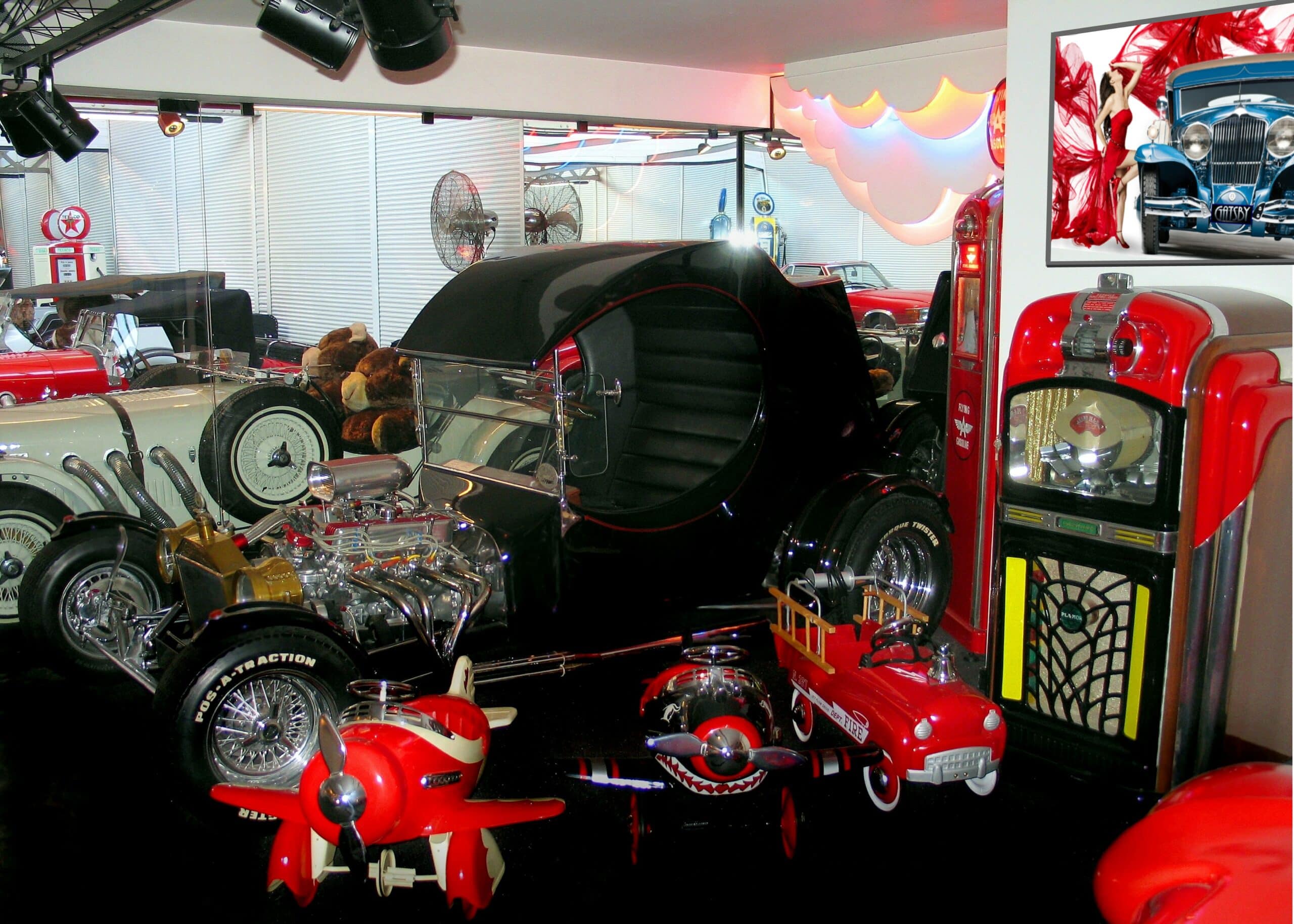 En 1989, j’ai envoyé ce Hot-Rod en Angleterre pour le faire totalement restaurer et le remettre au Top des nouvelles tendances en Hot-Rodding. En 1990 il m’est revenu avec le premier prix du plus beau Hot-Rod d’Europe, le carrossier restaurateur l’ayant présenté au plus grand show du genre avant de me le ramener. J’ai fait une dernière fois le tour du “paté de maison” où se trouve mon “Garage-Loft“, puis je l’ai installé dans mon bureau ou il y est depuis lors, comme une sorte de Juke-Box sur roues, une relique du joyeux temps passé.