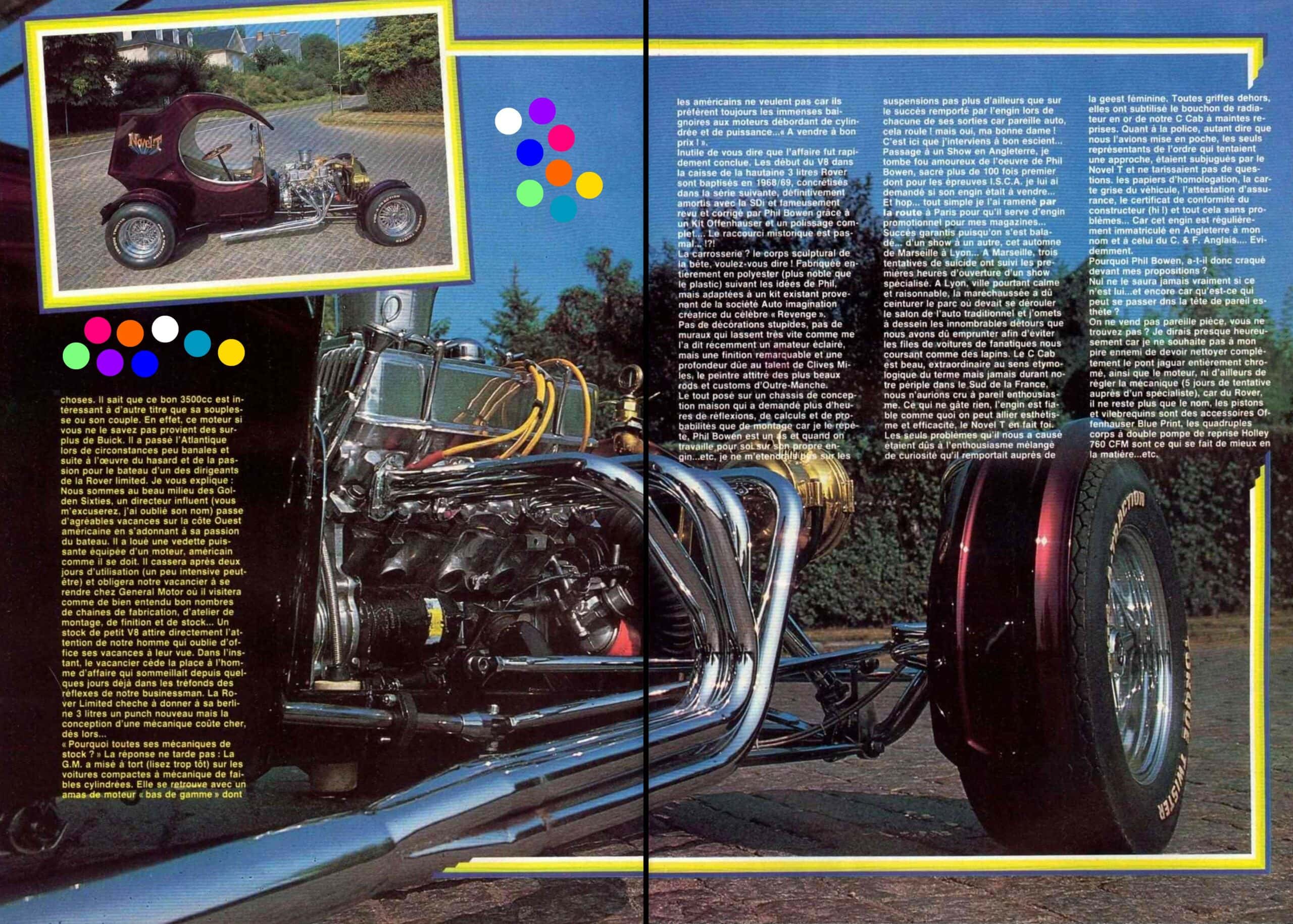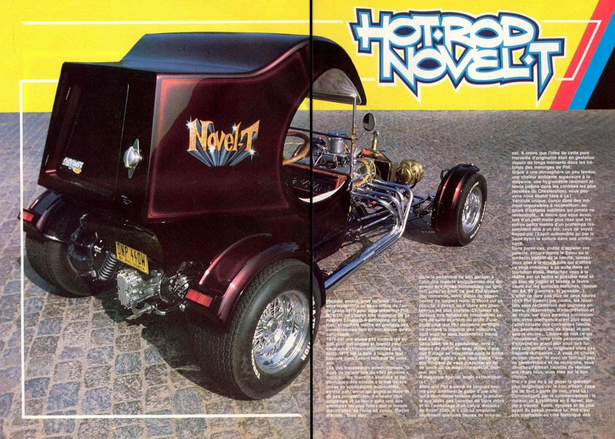 En janvier 1984, j’ai publié un article de 8 pages dans mon magazine Chromes&Flammes concernant mon Hot-Rod C’Cab “Novel’T“… Le but était de promouvoir la “Kulture” du “Kustom” et du “Hot-Rodding” en France et dans tous les pays d’Europe continentale ou étaient diffusés mes magazines (500.000 exemplaires mensuels en 5 langues/éditions). Maintenant, revenu de tout, “je ne me range pas pour autant des voitures” comme on dit dans les vieux films de gansters en noir et blanc, je publie une page illimitée dans GatsbyOnline section Chromes&Flammes comme si c’était un album de voyage pour l’au-delà !