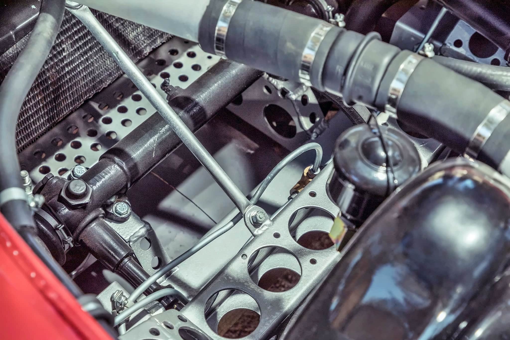 La Hughes-Kircher Special apparaît en 1953, ce n’est en réalité qu’un châssis roulant “allégé” selon des normes empiriques, mais les trains roulants sont assez élaborés : roues indépendantes à l’avant provenant d’une XK120 accidentée… et pont de Dion avec freins inbord à l’arrière… la direction provenant d’une MG TC… pour le moteur les deux compères ont pioché également du côté de la XK120, c’est son moteur 3L8 6cyl en ligne qui est gavé par six carburateurs SU, lui permettant d’espérer de sortir 250 chevaux au lieu des 160 de base !
