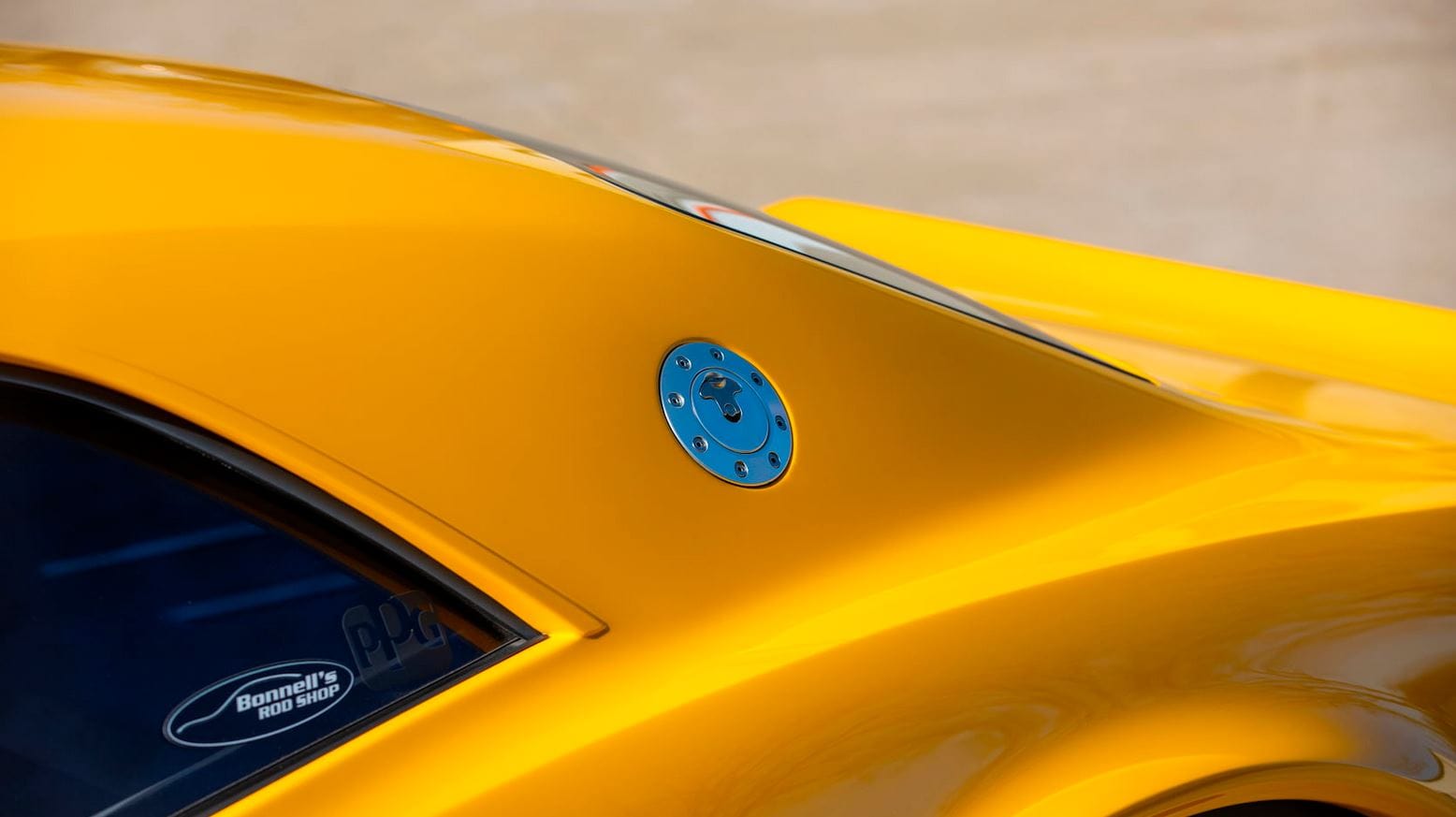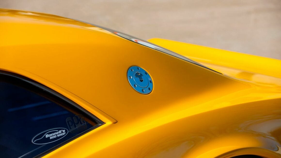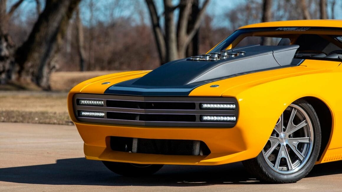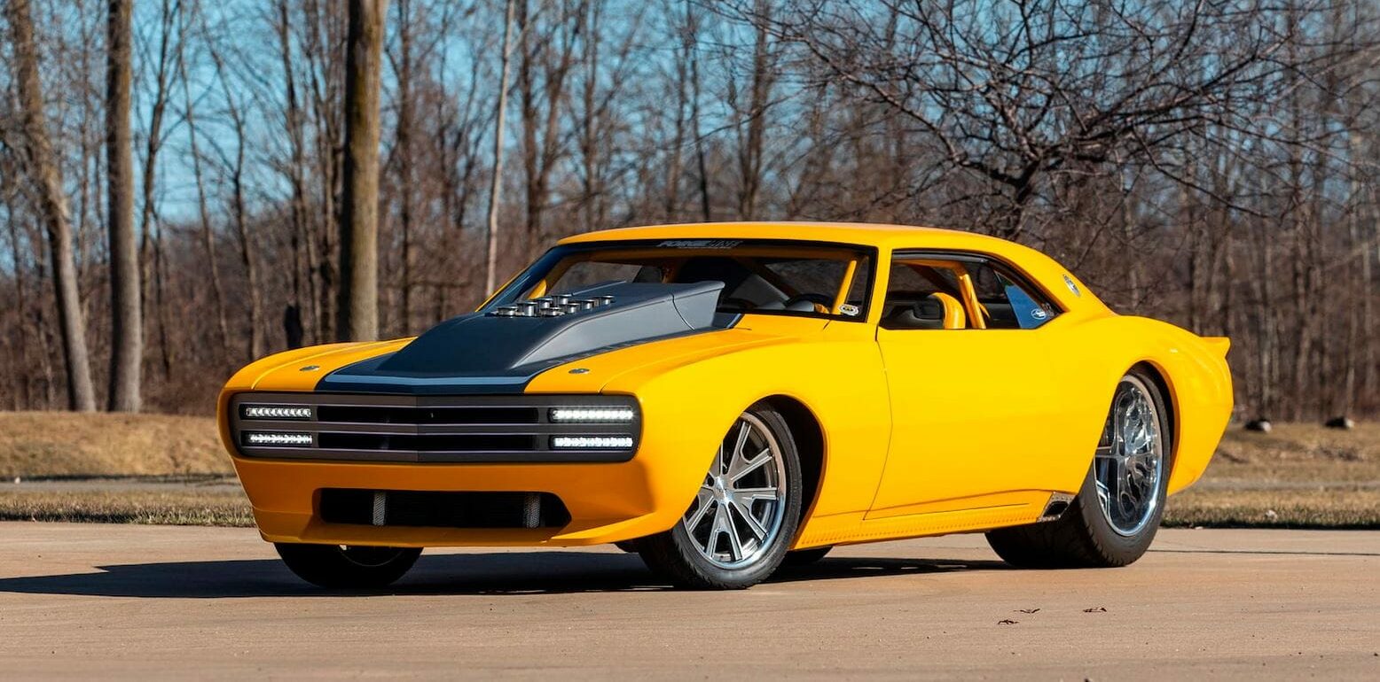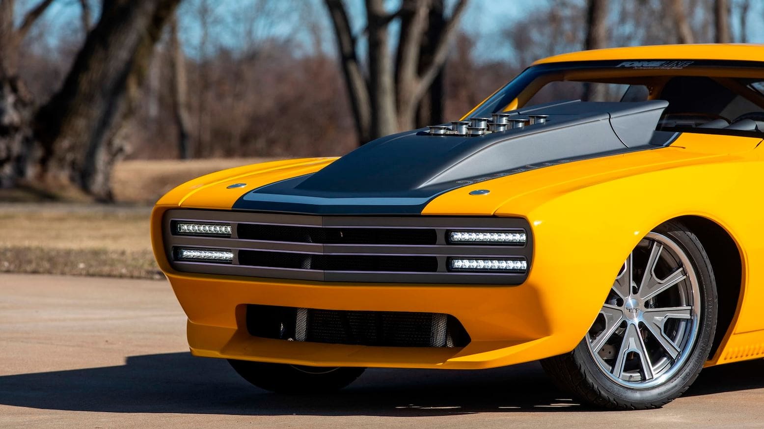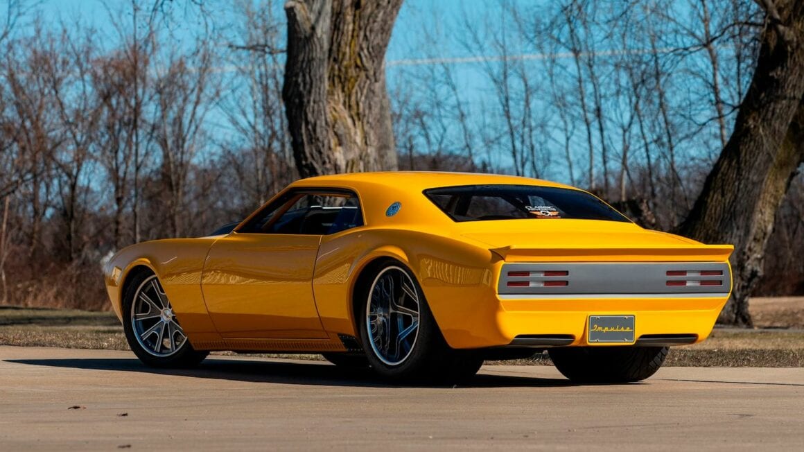 “Impulse” est le nom de cette “Chevrolet Camaro Custom 1968” hautement personnalisée. Construite par “Bonnell’s Rod Shop” en Pennsylvanie, la voiture a été sponsorisée par la société de peinture “PPG” qui l’a exposée dans son stand au SEMA Show. La carrosserie classique “f-body” a été radicalement changée, surbaissement du toit, allongement de la carrosserie. Une fois tout le travail en métal terminé, “Bonnell’s Rod Shop” a peint la Camaro d’un “Envirobase Impulse Yellow” de “PPG” avec un verni “New Vibrance” pour vraiment faire ressortir l’éclat général.