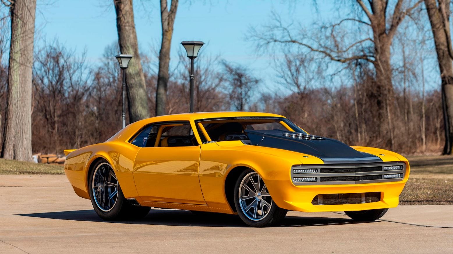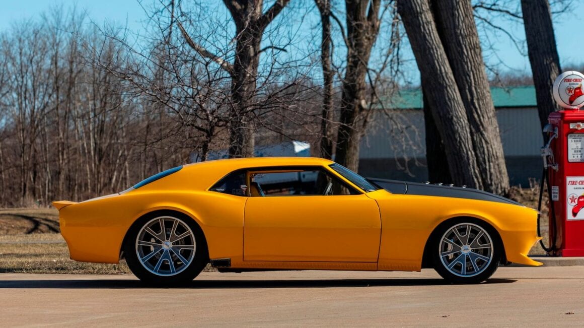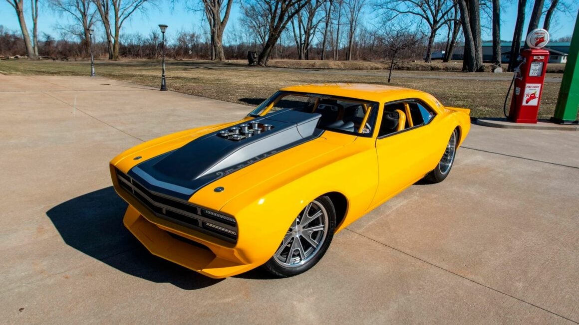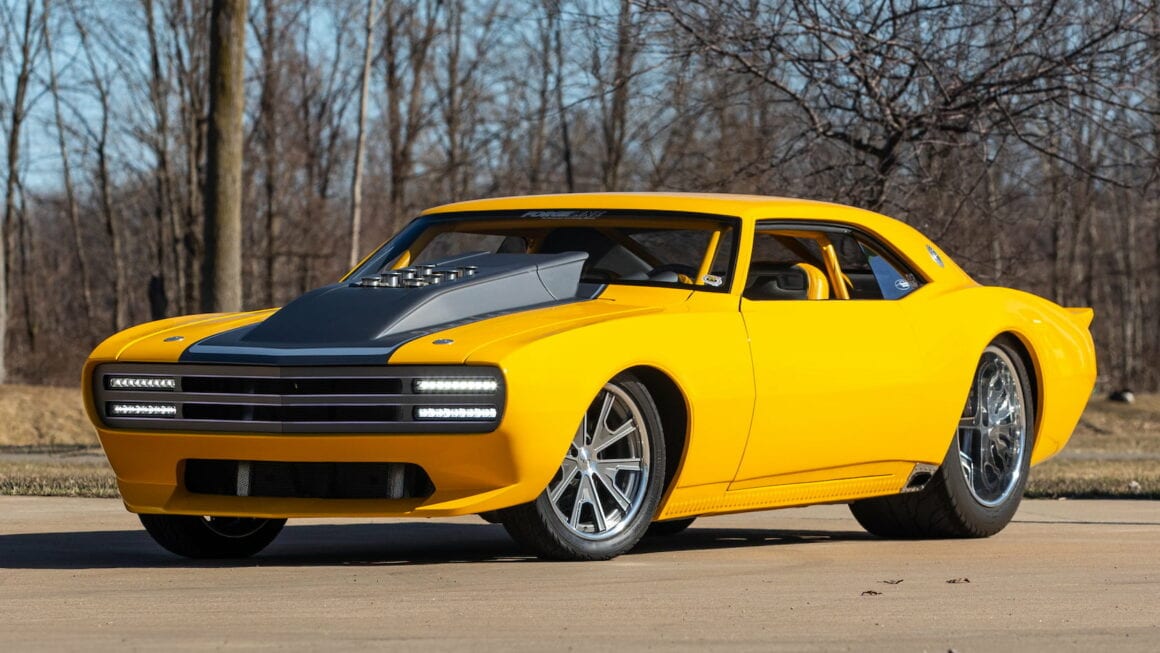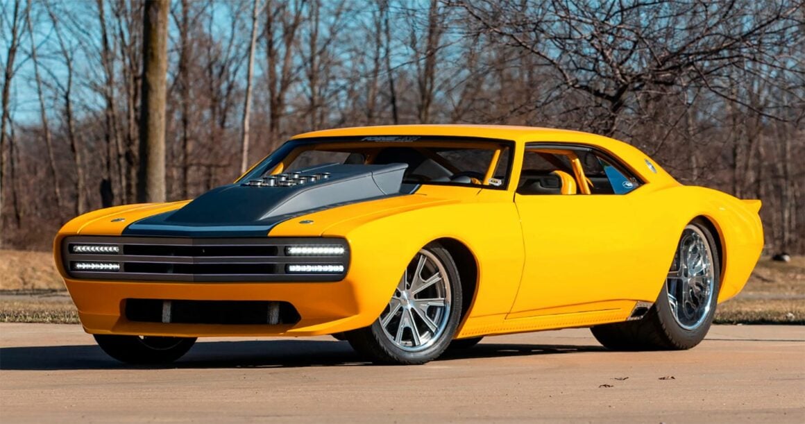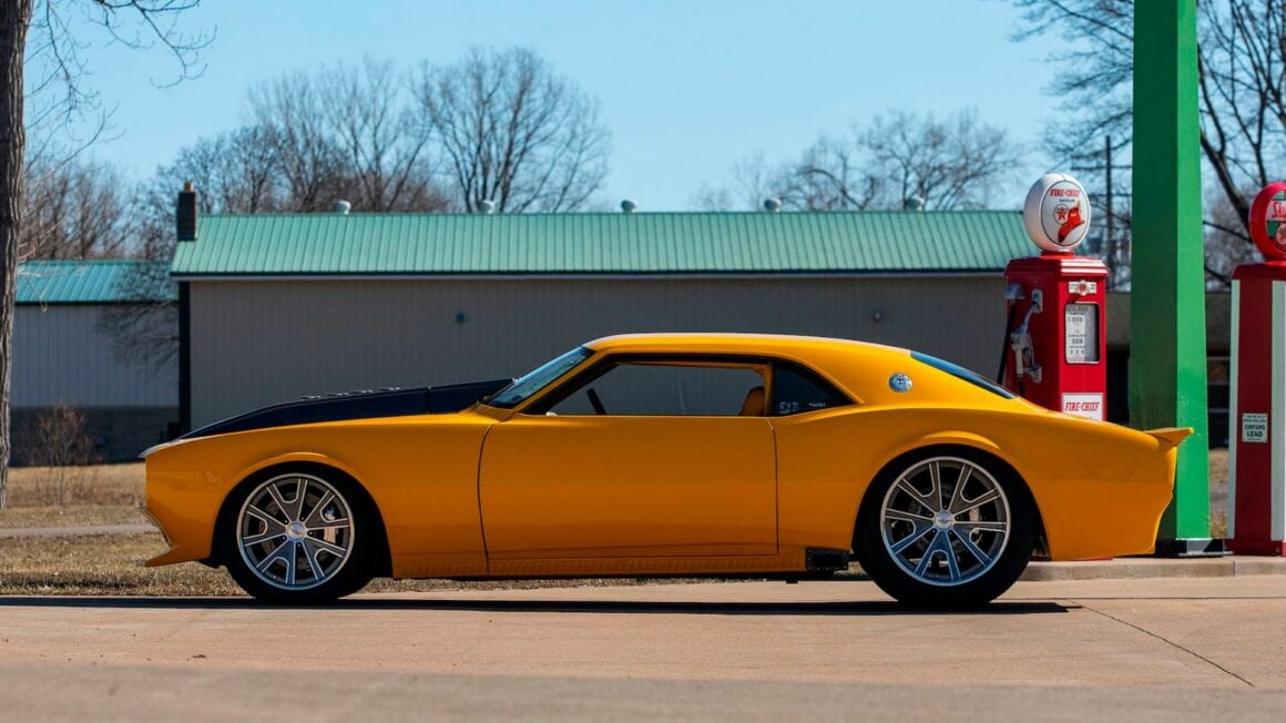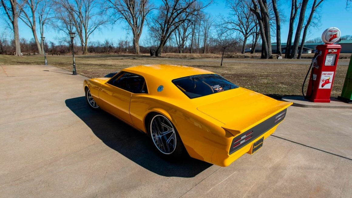 “Impulse” est le nom de cette “Chevrolet Camaro Custom 1968” hautement personnalisée. Construite par “Bonnell’s Rod Shop” en Pennsylvanie, la voiture a été sponsorisée par la société de peinture “PPG” qui l’a exposée dans son stand au SEMA Show. La carrosserie classique “f-body” a été radicalement changée, surbaissement du toit, allongement de la carrosserie. Une fois tout le travail en métal terminé, “Bonnell’s Rod Shop” a peint la Camaro d’un “Envirobase Impulse Yellow” de “PPG” avec un verni “New Vibrance” pour vraiment faire ressortir l’éclat général.