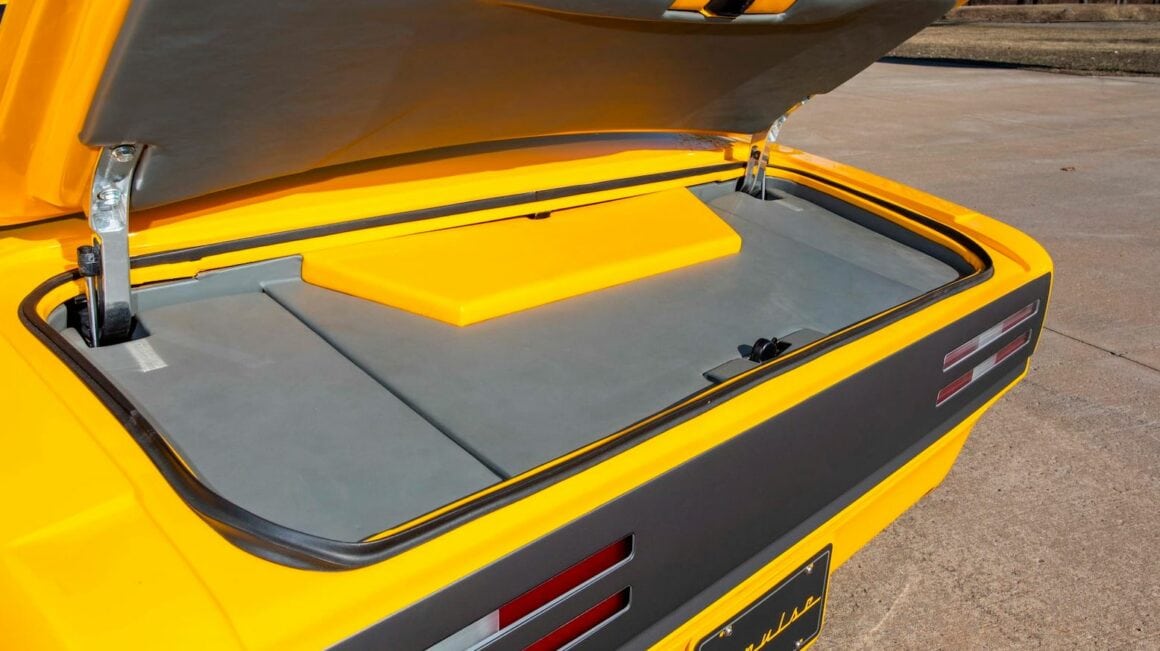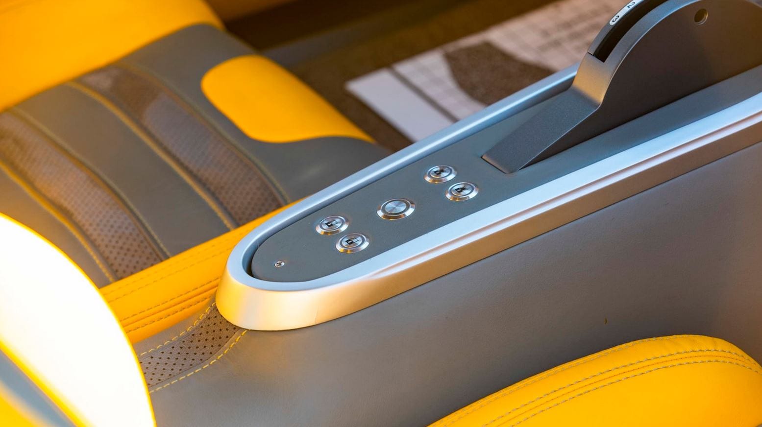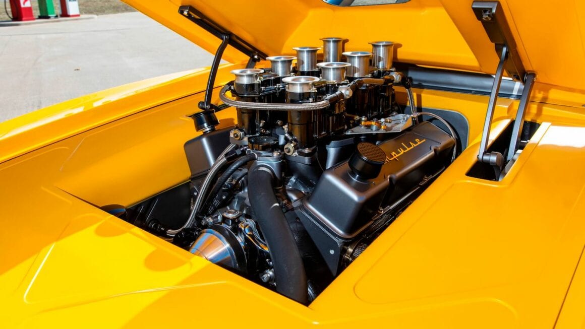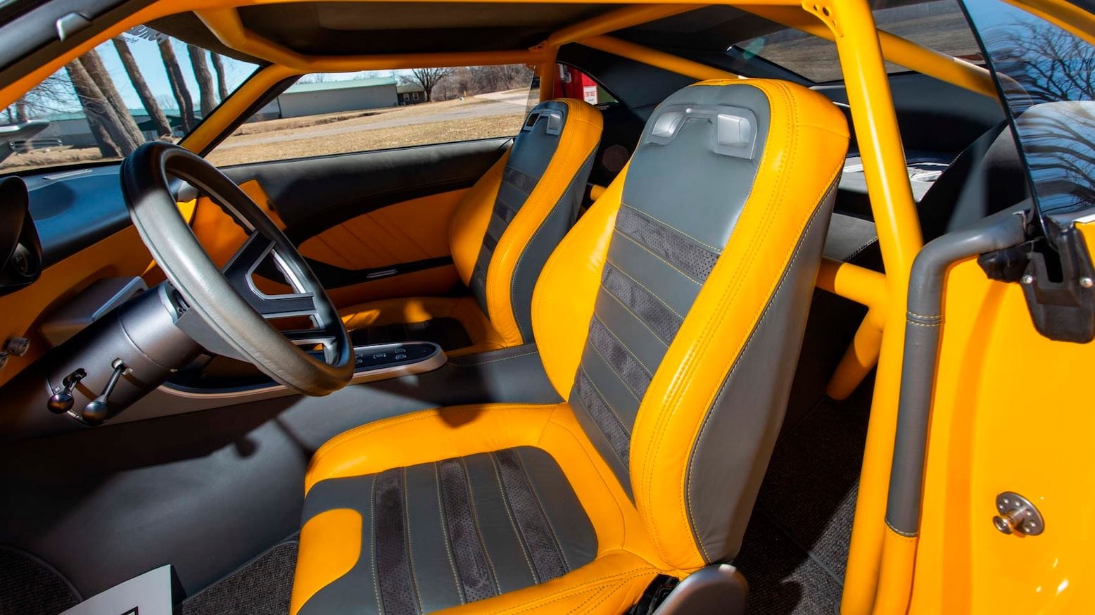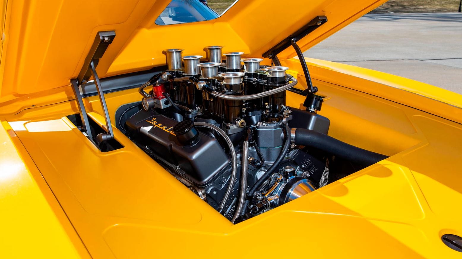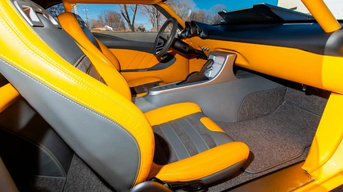 “Impulse” est le nom de cette “Chevrolet Camaro Custom 1968” hautement personnalisée. Construite par “Bonnell’s Rod Shop” en Pennsylvanie, la voiture a été sponsorisée par la société de peinture “PPG” qui l’a exposée dans son stand au SEMA Show. La carrosserie classique “f-body” a été radicalement changée, surbaissement du toit, allongement de la carrosserie. Une fois tout le travail en métal terminé, “Bonnell’s Rod Shop” a peint la Camaro d’un “Envirobase Impulse Yellow” de “PPG” avec un verni “New Vibrance” pour vraiment faire ressortir l’éclat général.