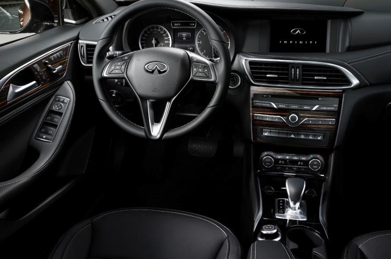 On vous l’a déjà dit, l’Infiniti Q30 partage ses dessous et de nombreux éléments techniques avec la classe A ou plus précisément avec la GLA, plutôt orientée vers le style Crossover… et de découvrir qu’au centimètre près, les mensurations de cette Q 30 reprennent celles de la GLA : longueur de 4,43 m, hauteur de 1,50 m ainsi qu’un empattement de 2,70 m…Et ce n’est pas tout, car cette traction avant, également livrable en version quatre roues motrices (ici on parle d’AWD ou non de 4Matic) et reprend bon nombre de motorisations, dont deux diesel, l’un d’origine Renault (le petit 1500 cm3 de 109 chevaux), l’autre d’origine Mercedes (le 2,2 D de 170 chevaux). Et pour ceux qui préfèrent carburer au sans plomb, Mercedes fournit trois blocs turbo : le 1600 de 122 ou 156 chevaux et le deux litres délivrant 211 chevaux. Côté transmissions, les versions les moins puissantes ont droit à la boîte mécanique 6 vitesses, les modèles les plus huppés se voient entraînées par la boite robotisée à double embrayage 7 rapports, 7DCT, du constructeur à l’étoile.