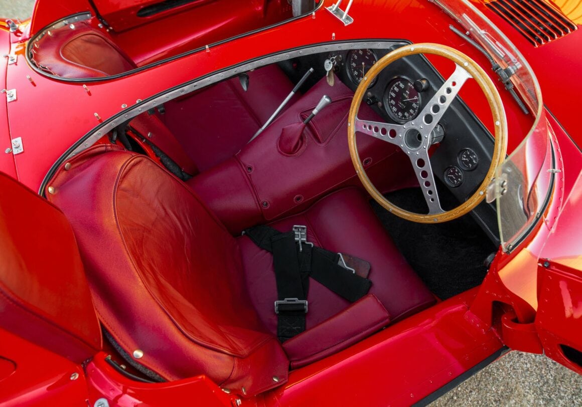 L’odeur et le toucher de l’histoire sont partout dans cette voiture. Les coussins en cuir fissurés et noueux sur lesquels vous vous asseyez. Les années de brillance sur le “gearknob” en aluminium et le volant en bois. L’odeur des huiles d’époque. La peinture ébréchée du cockpit riveté en aluminium et magnésium, c’est comme un avion de la Seconde Guerre mondiale. Littéralement, comme on me l’a expliqué : “La type-C précédente était constitué d’un ensemble mécanique solide. Son groupe motopropulseur était durable, et les freins étaient un avantage (disques) que les rivaux n’avaient toujours pas (tambours). Pour que la nouvelle type-D déplace les choses à l’étape suivante, elle disposait d’une forme et d’une construction de type avion ! Malcolm Sayer, qui était arrivé de la Bristol Aircraft Company, l’a fabriquée selon les principes de l’aviation en soufflerie. La type-C avait une construction en tubes d’acier. Pas la type-D qui a été construite comme une monocoque rivetée sur un châssis-poutre central”…