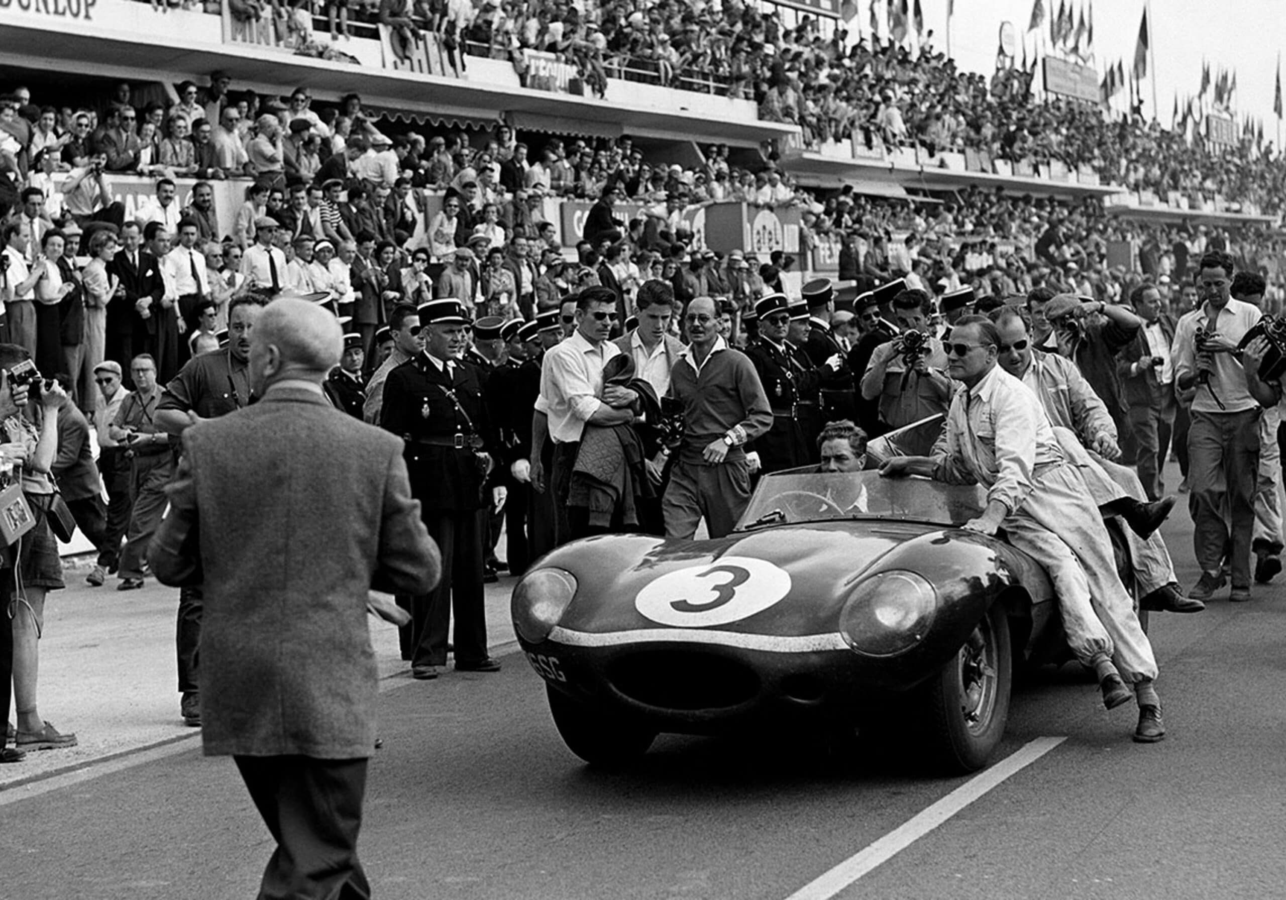 Jaguar s’est retiré du sport automobile à la fin de la saison 1956, laissant un certain nombre de D-Types “sur les carreaux de l’usine”... La décision a été prise de convertir beaucoup d’entre-elles en spécifications Jaguar-XKSS; c’était donc essentiellement transformer des voitures de course gagnantes du Mans en des voitures de sport pour routes ouvertes…, le propriétaire le plus célèbre a été l’acteur américain Steve McQueen. Tragiquement, en 1957, un incendie s’est déclaré à l’usine Browns-Lane de Jaguar, détruisant de nombreuses types-D en attente de conversion aux spécifications XKSS. En conséquence, seulement 16 exemplaires ont été construits/modifiés et ils sont maintenant parmi les voitures les plus “collectibles” sur terre et dans l’univers.