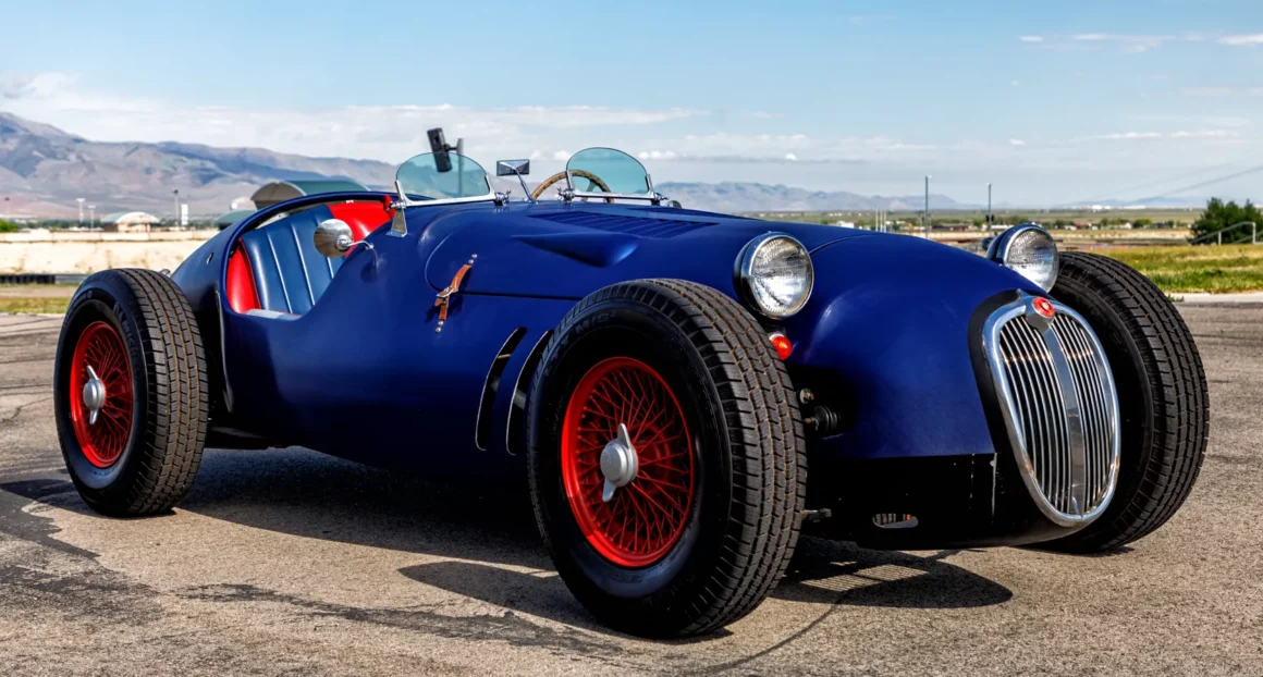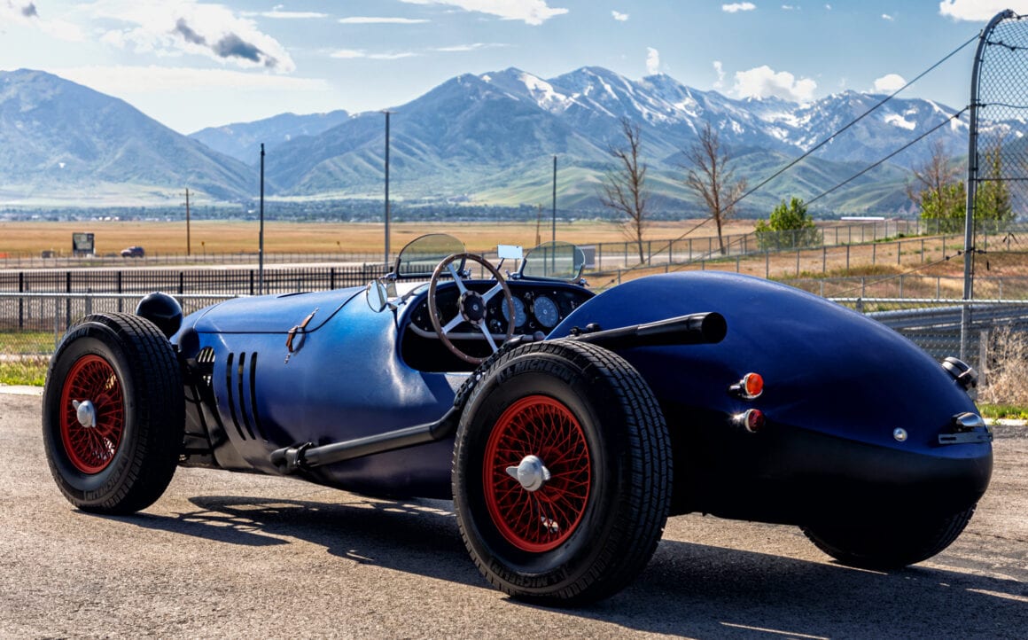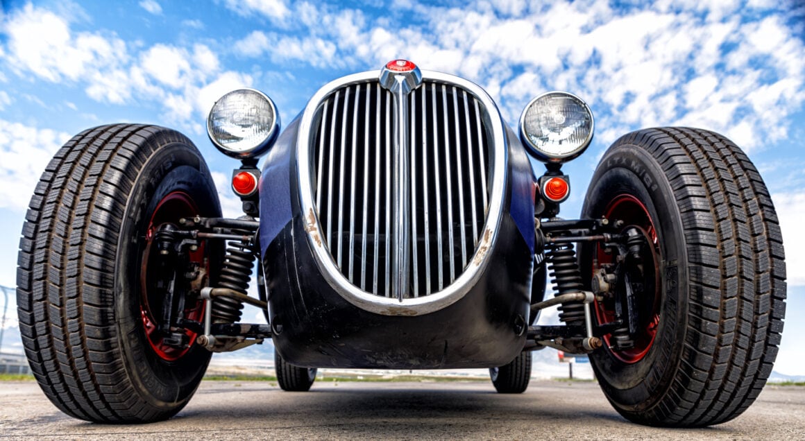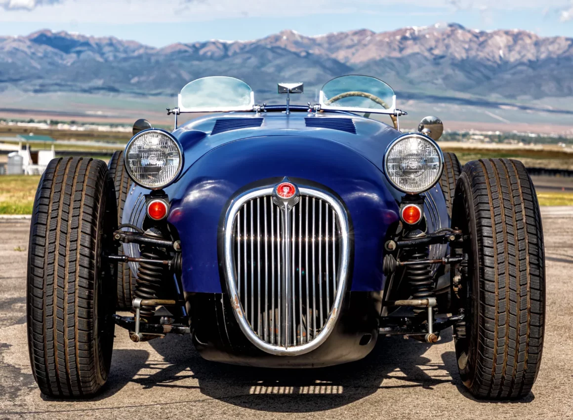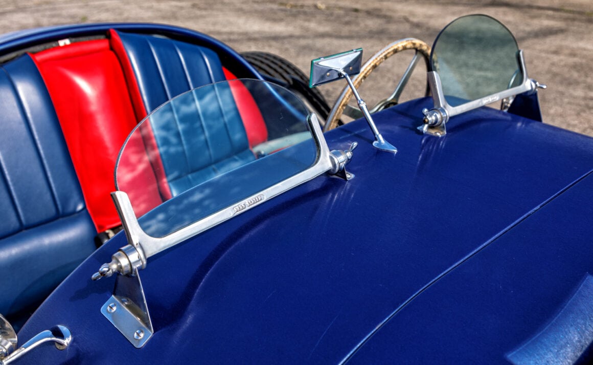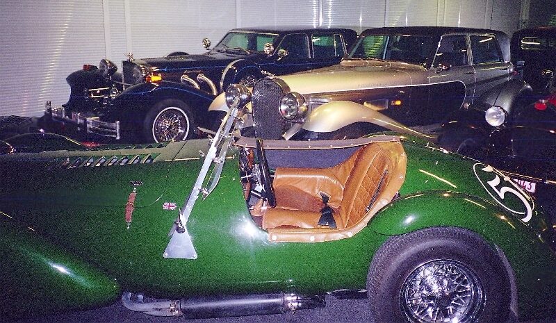 Les jantes à rayons sont peintes en rouges, des freins à disque sont montés aux quatre roues, et une suspension indépendante XJ6, un échappement à sortie latérale, deux minis- pare-brise de style Brooklands, des ceintures sous-abdominales, forment le minima vital pour conduite au loin… Publiée dans GatsbyOnline/ChromesFlammes, son heure de gloire était arrivée, toute l’équipe a sabré le champagne en fanfare, l’ambiance fut aux félicitations mutuelles et réciproques. Je me souviens très bien de ce que l’on ressent dans ces moment-là, cela m’était déjà arrivé il y a plusieurs années, avec une Kougar British Racing Green avec des numéros fantaisistes de course. Je me casse la tête pour me souvenir à qui et quand je l’ai vendue et où sont les photos. Ayant fait le tour des spécifications techniques, on se retrouve en fait avec une voiture à deux places, sans toiture, sans portières, sans vrai pare-brise…
